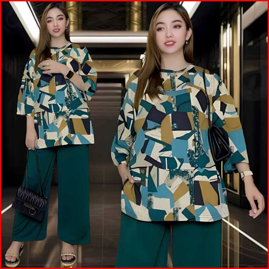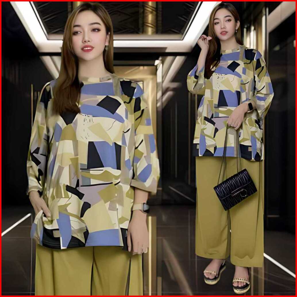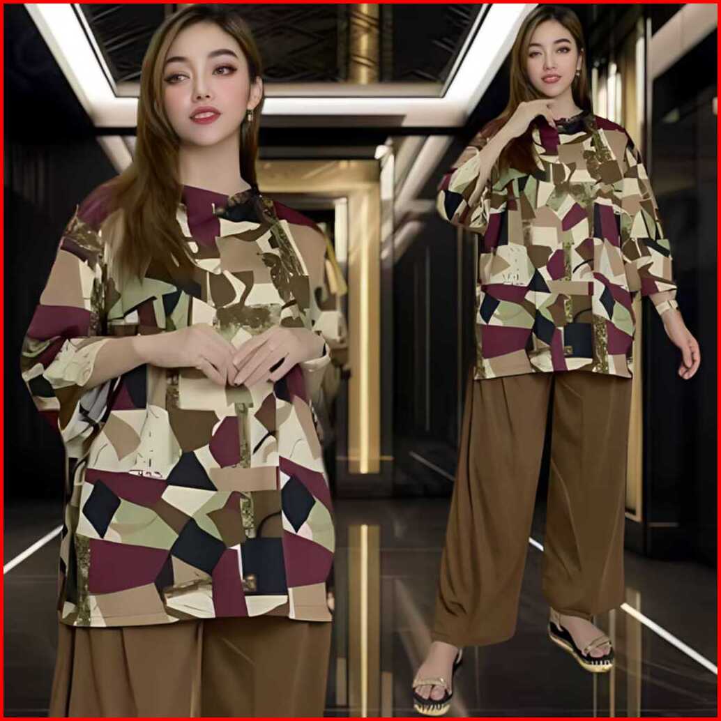 Ragdha Setelan Wanita Jumbo Ld 130 Atasan Oval Wanita Dan Celana Lurus Wanita Baju Oversize Dewasa Motif Celana Panjang