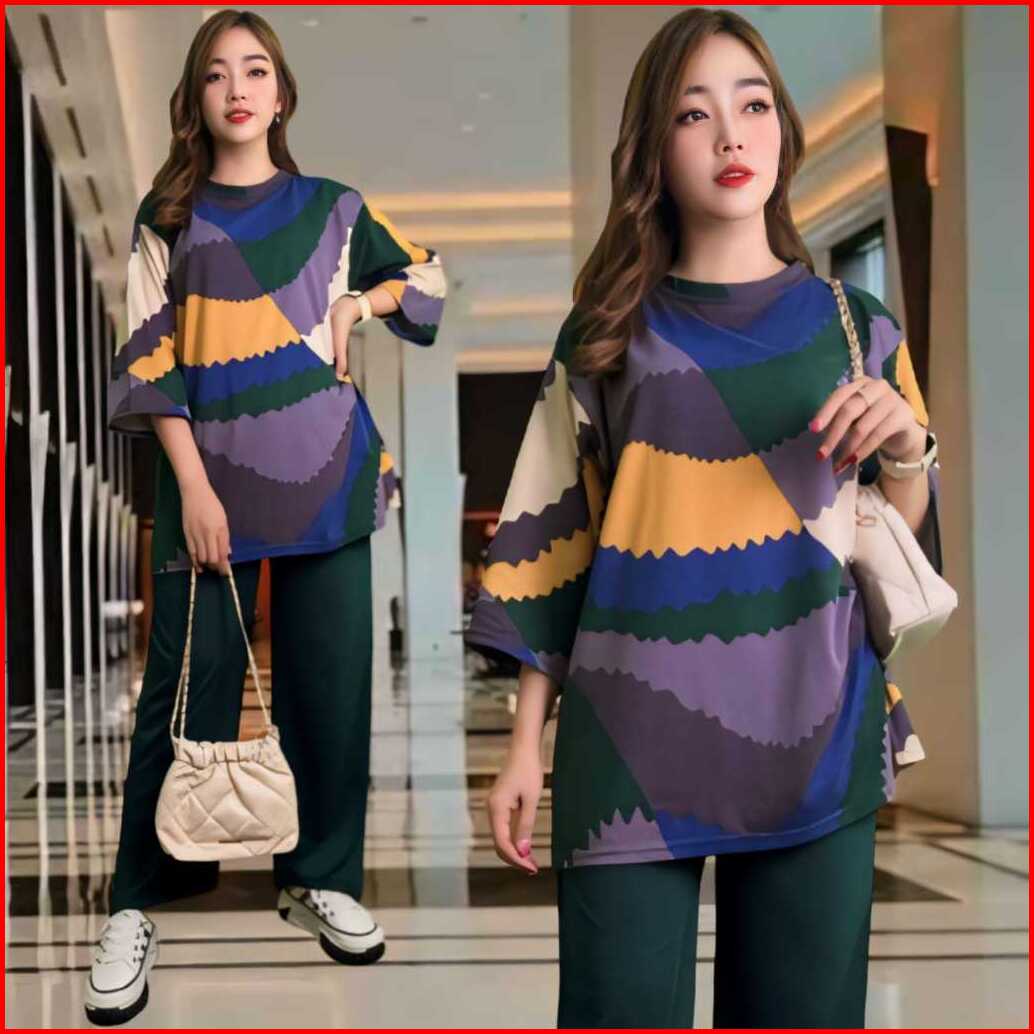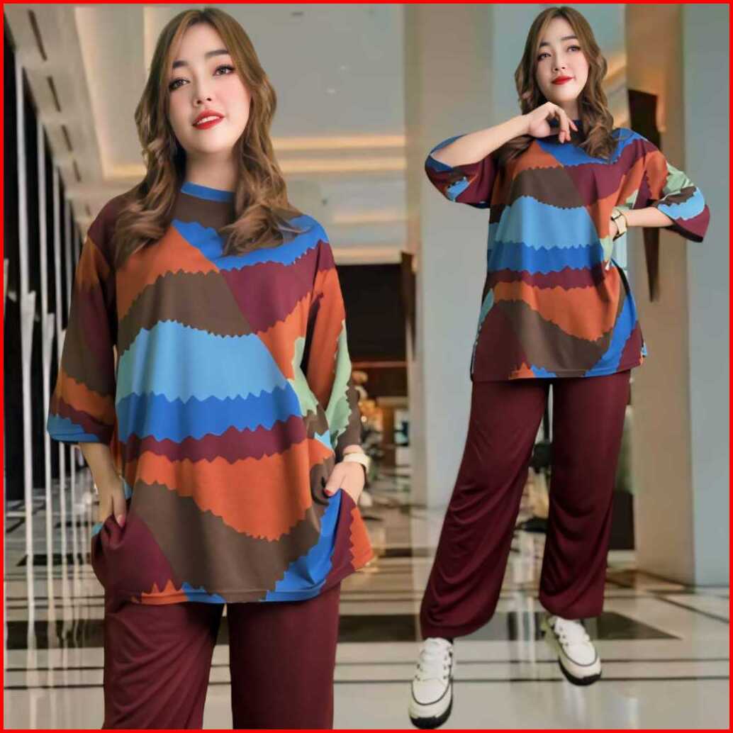 Saadia Ld 120 Setelan Wanita Celana Dan Atasan Oversize Wanita Baju Kantong Karet Kaos Dewasa Motif Panjang