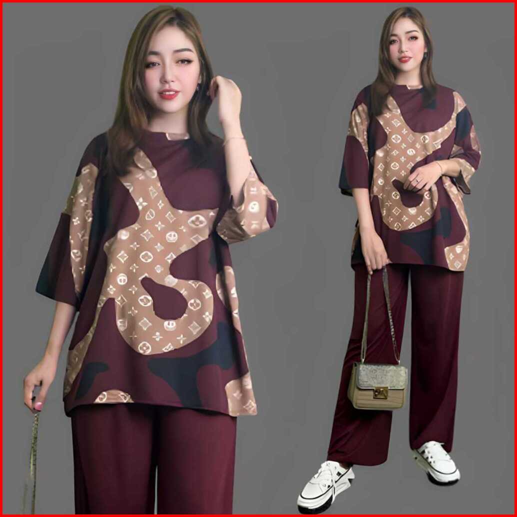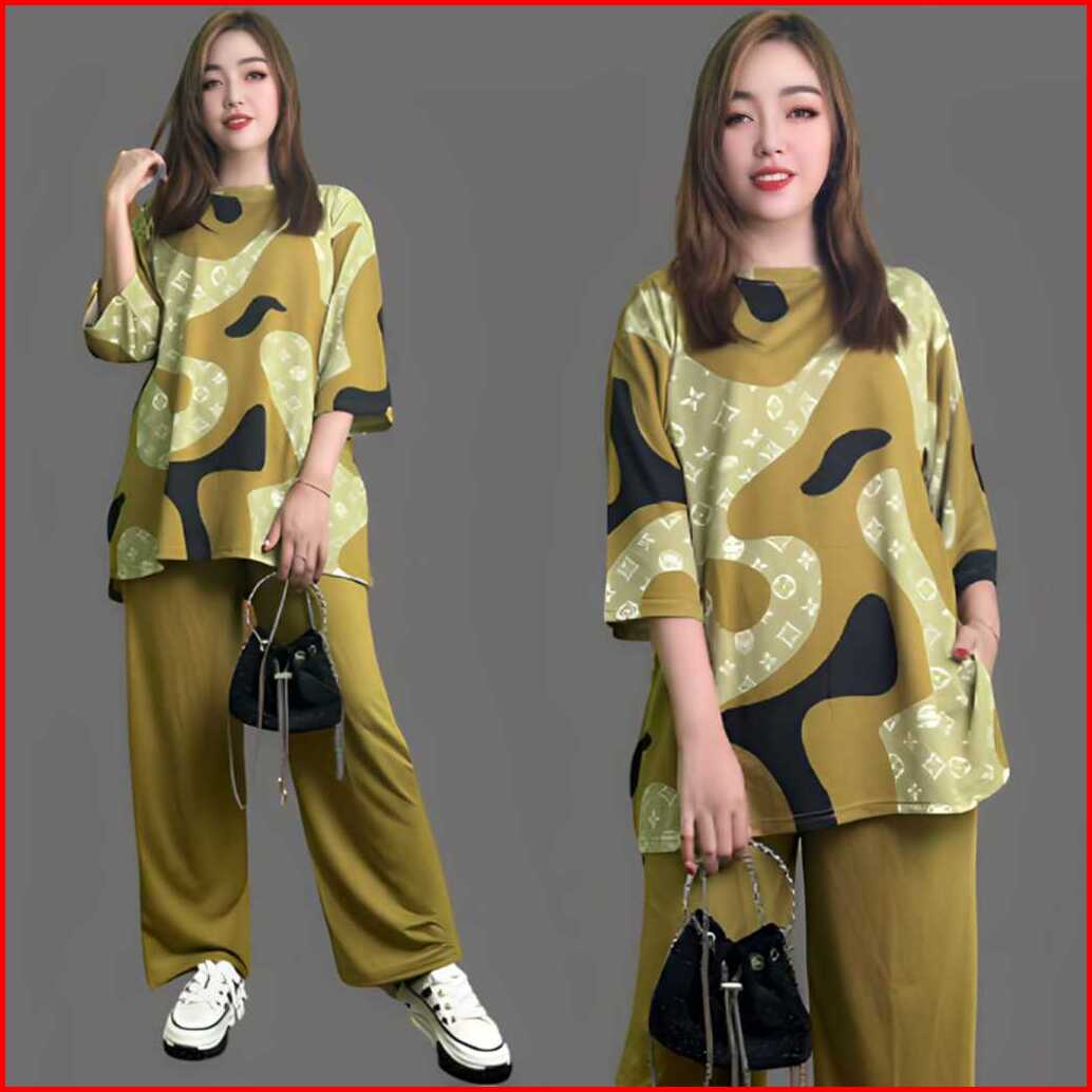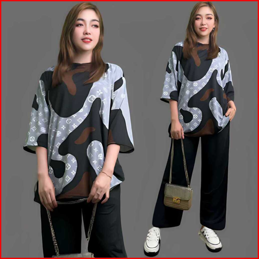 Catalina Ld 120 Setelan Wanita Celana Dan Atasan Oversize Wanita Baju Kantong Karet Kaos Dewasa Motif Panjang