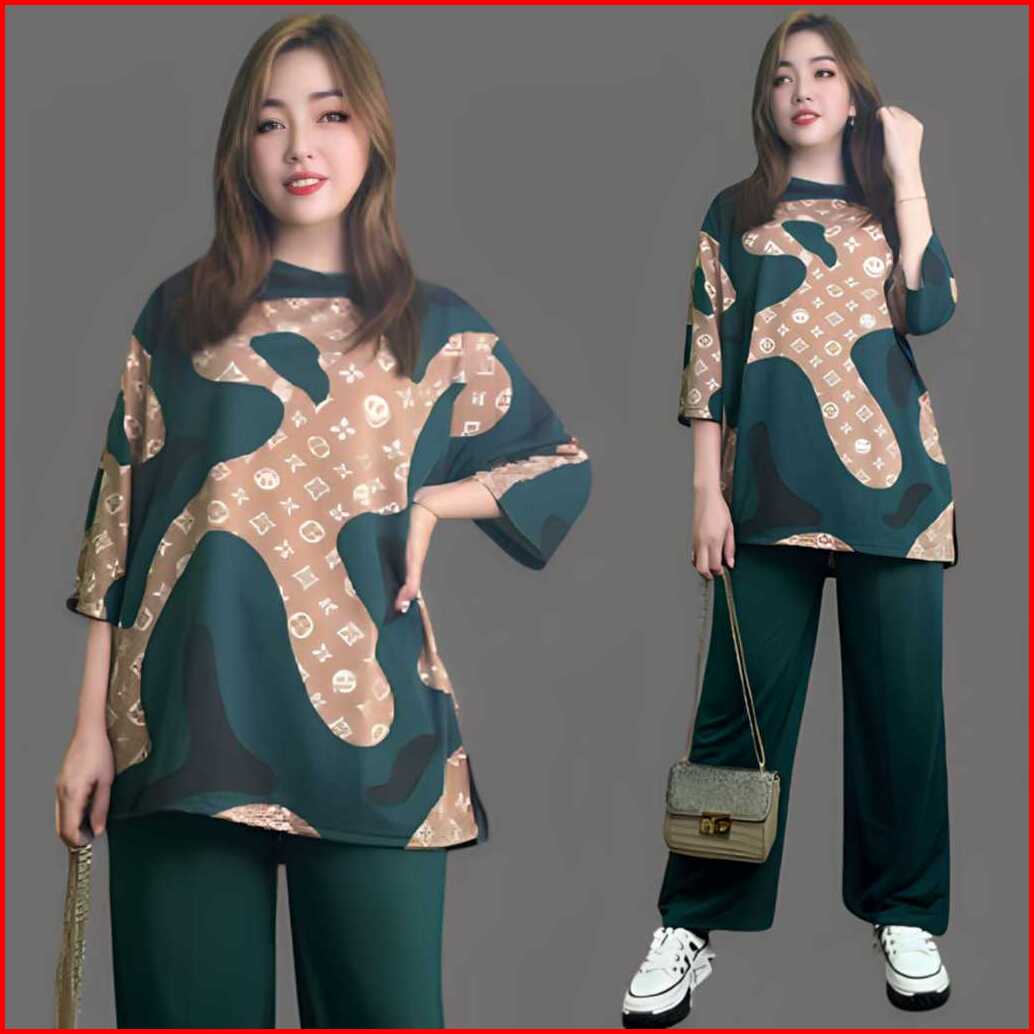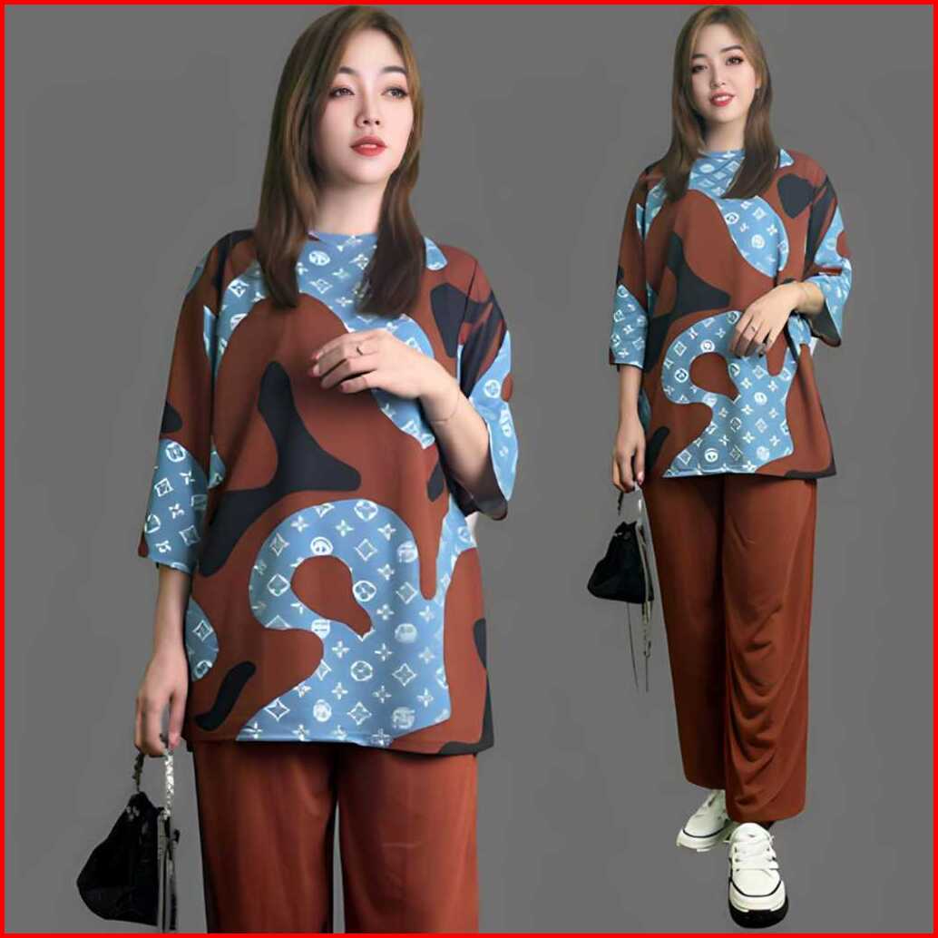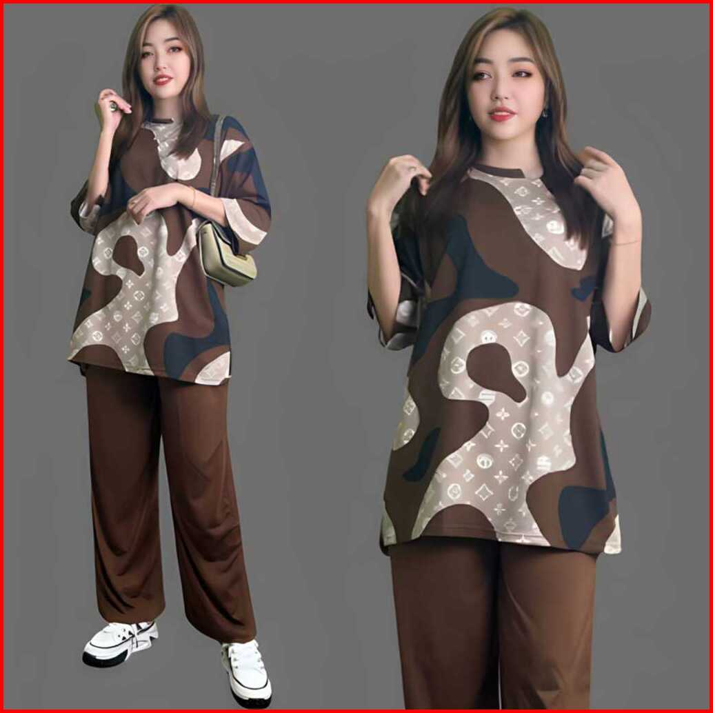 Catalina Ld 120 Setelan Wanita Celana Dan Atasan Oversize Wanita Baju Kantong Karet Kaos Dewasa Motif Panjang