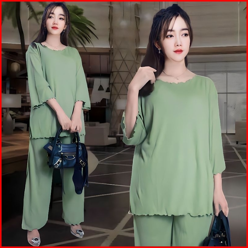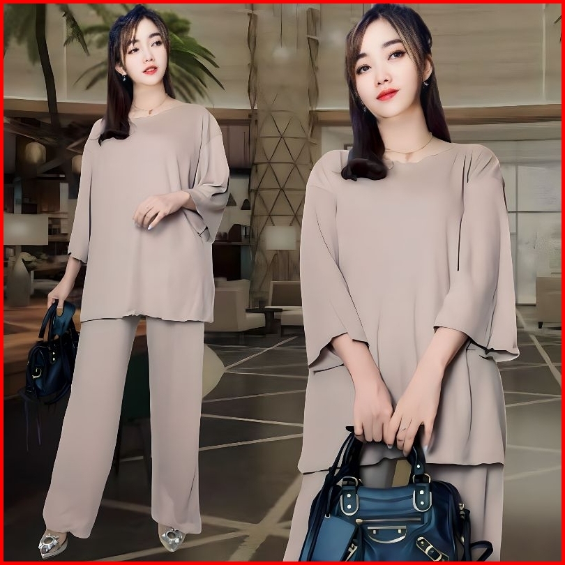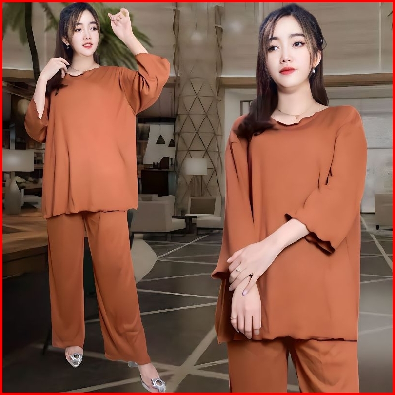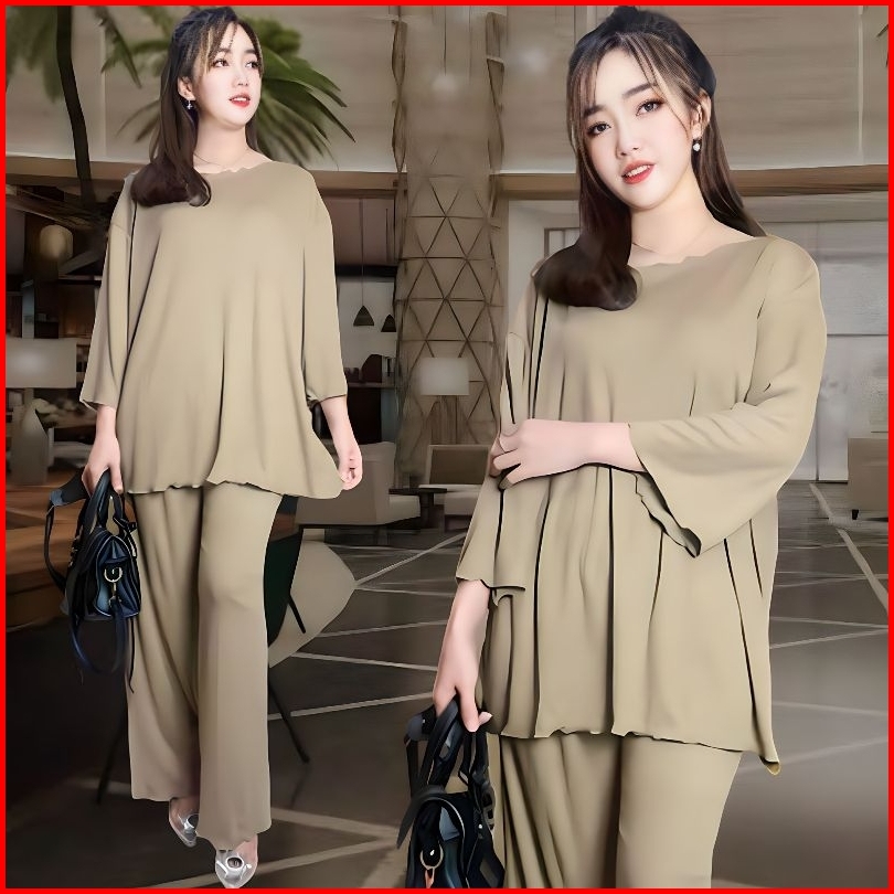 Ld 130 Setelan Knit Atasan Wanita Dan Celana Wanita Hijab Friendly