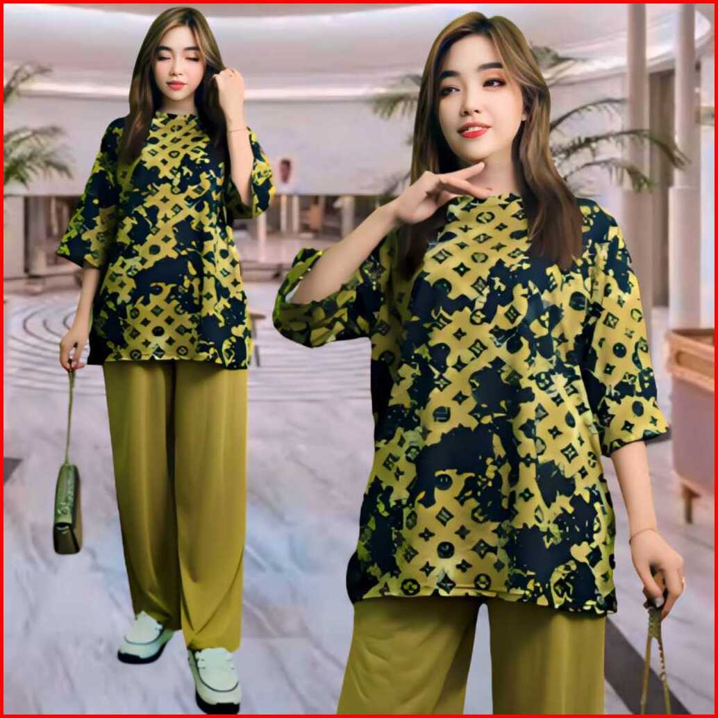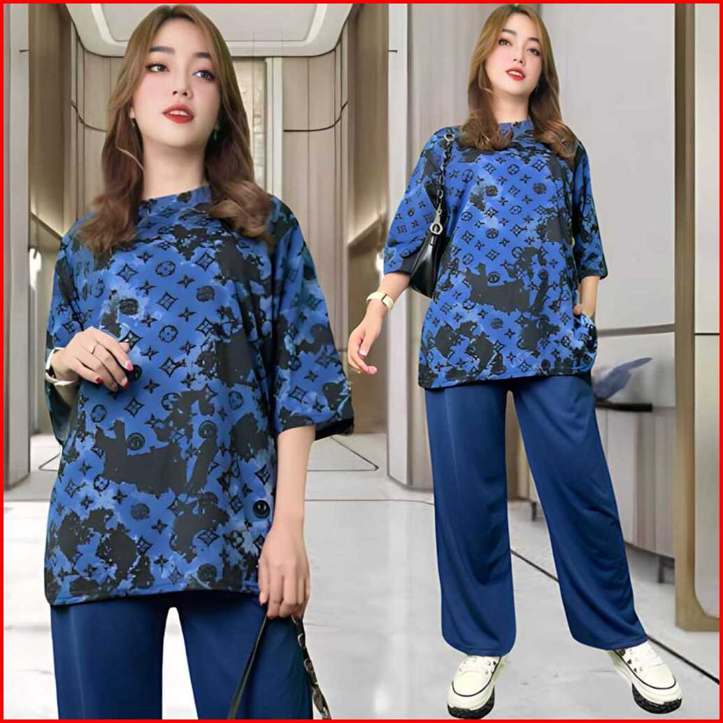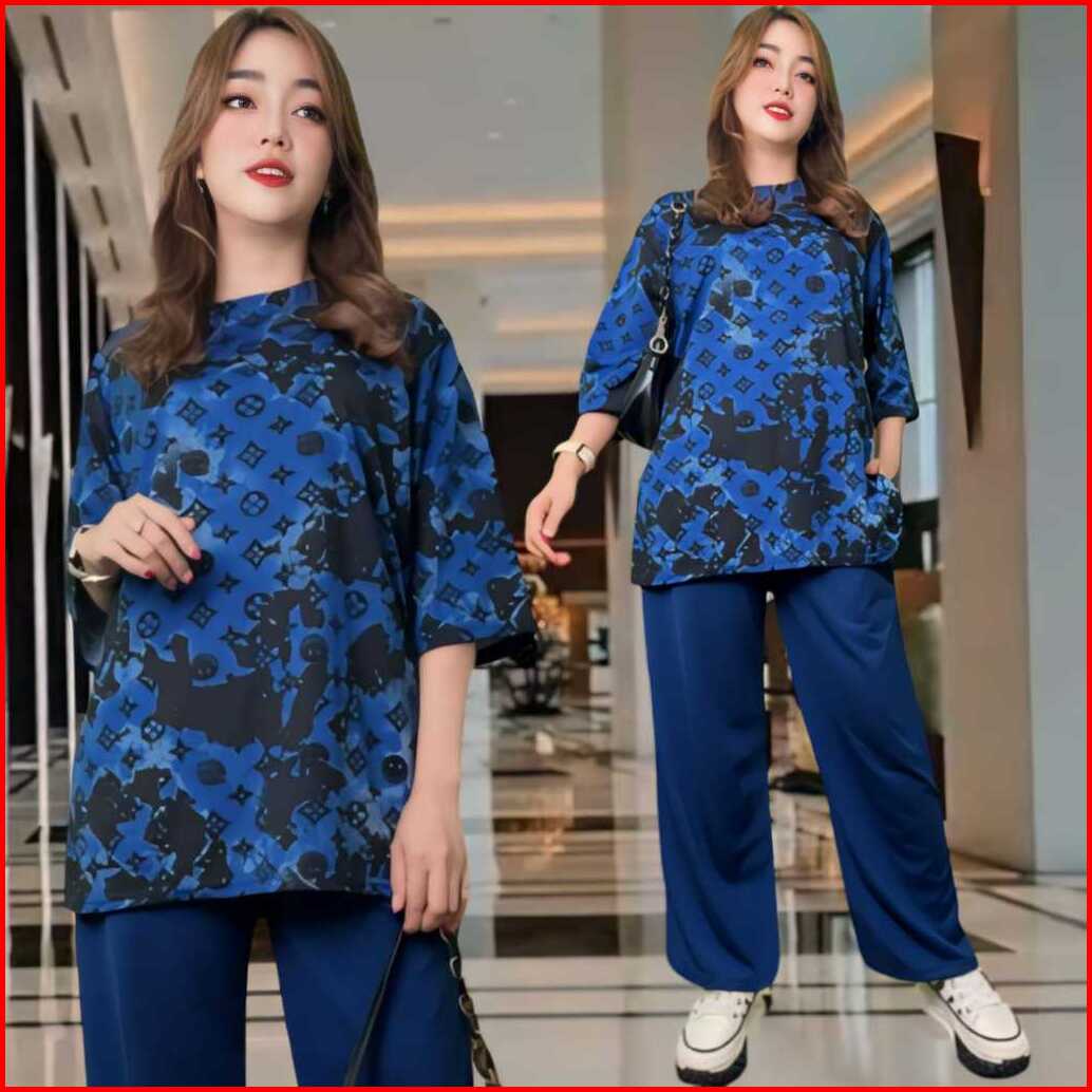 Laksmi Ld 120 Setelan Wanita Celana Dan Atasan Oversize Wanita Baju Kantong Karet Kaos Dewasa Motif Panjang
