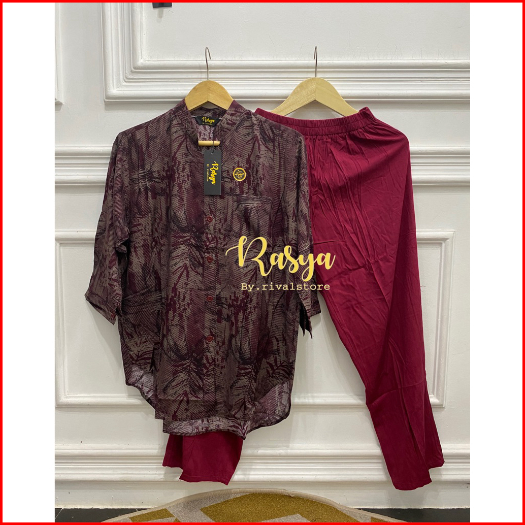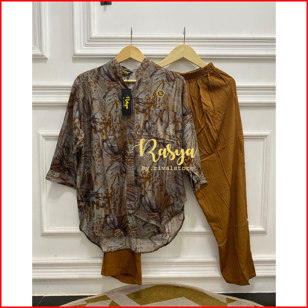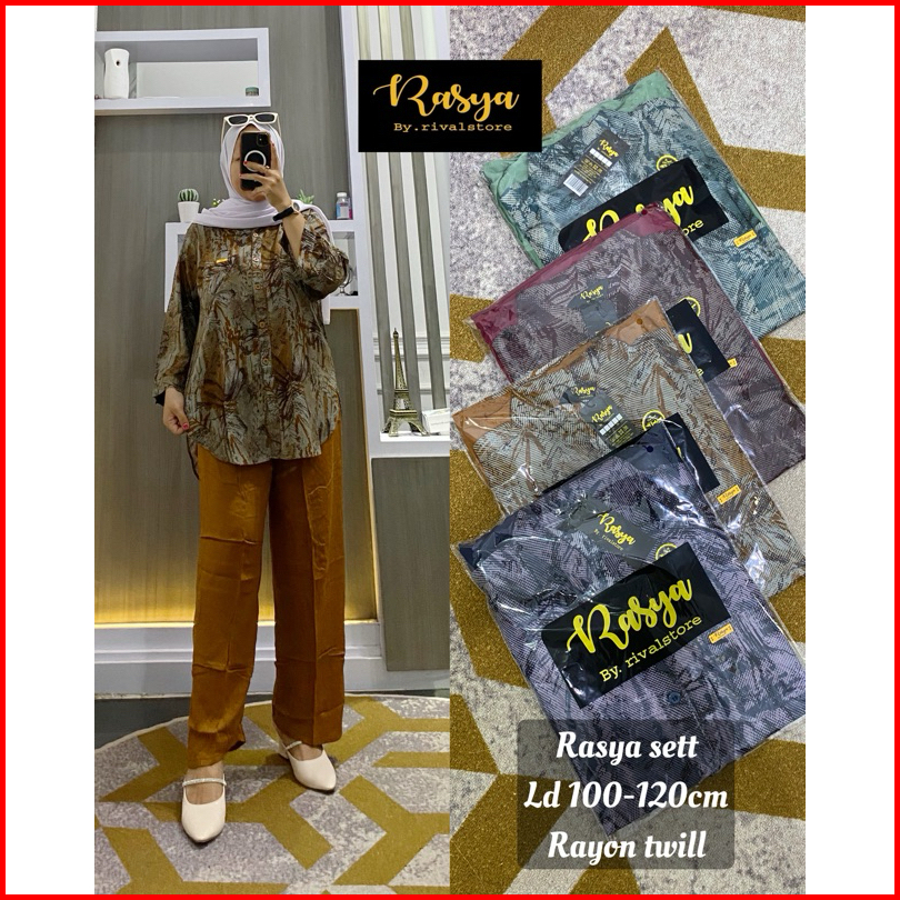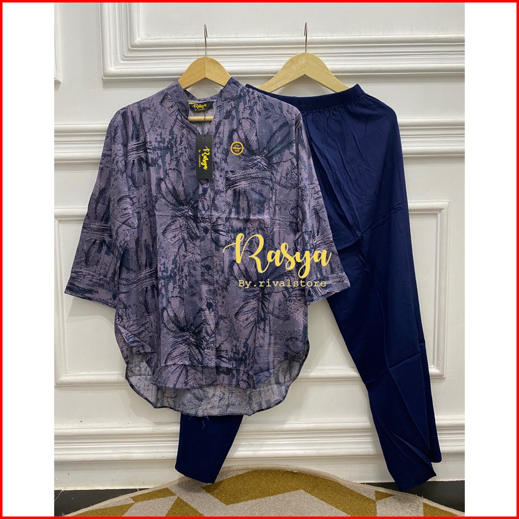 Setelan Wanita Kombinasi Motif Bunga Jumbo Terbaru 2023 Oneset Rasya