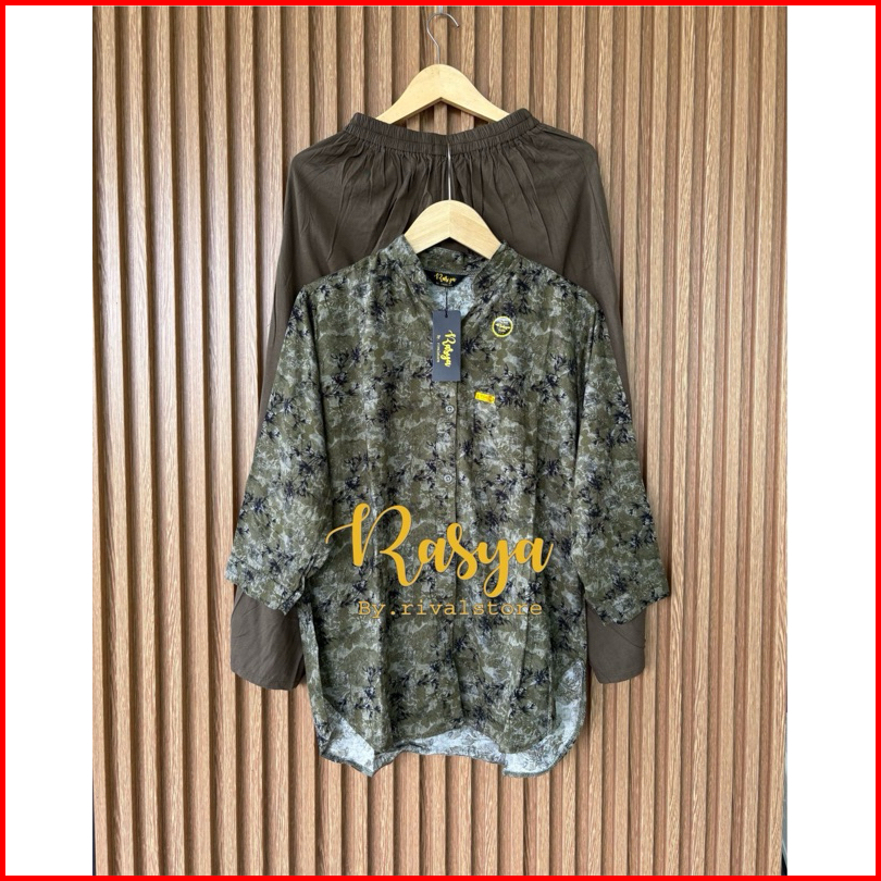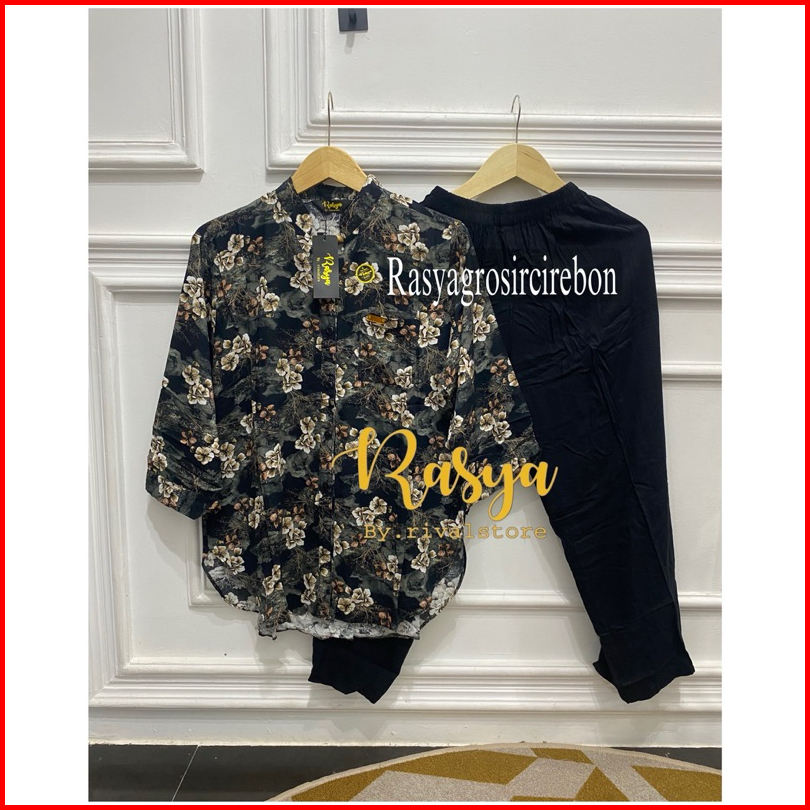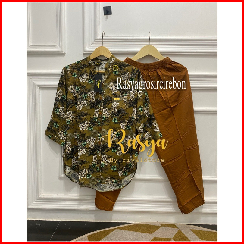 Setelan Wanita Kombinasi Motif Bunga Daun Oneset Rasya Ld 120 Terbaru 2023