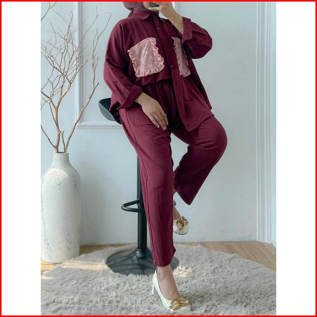 One Set Wanita Terbaru Oversize Linen Nezuko