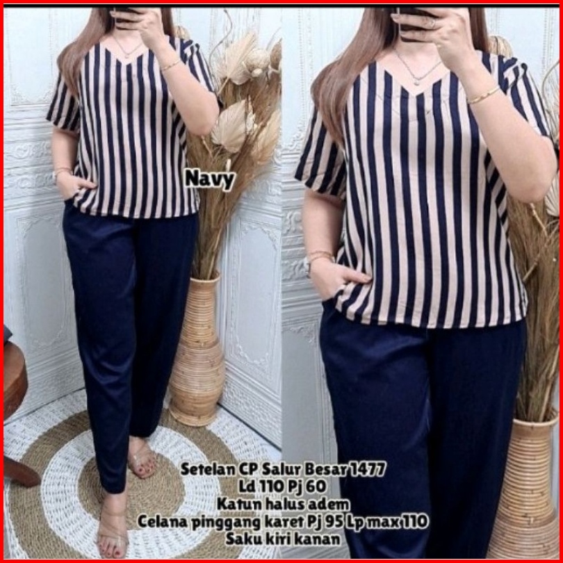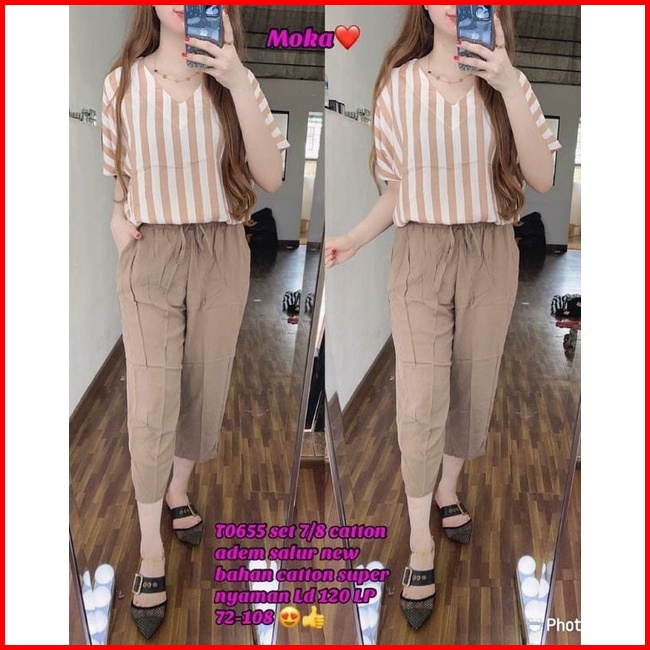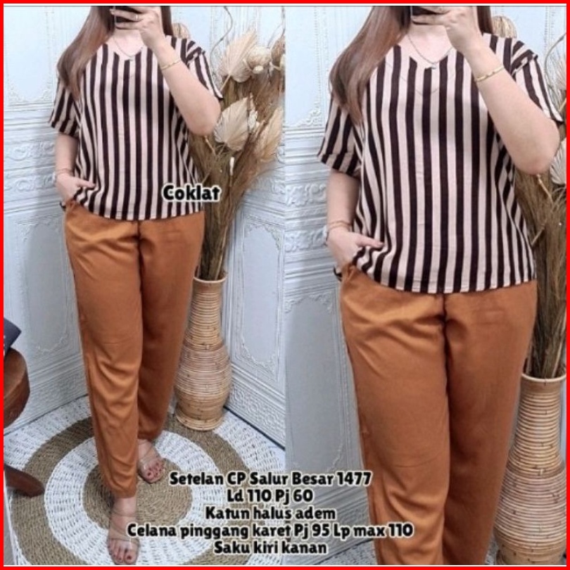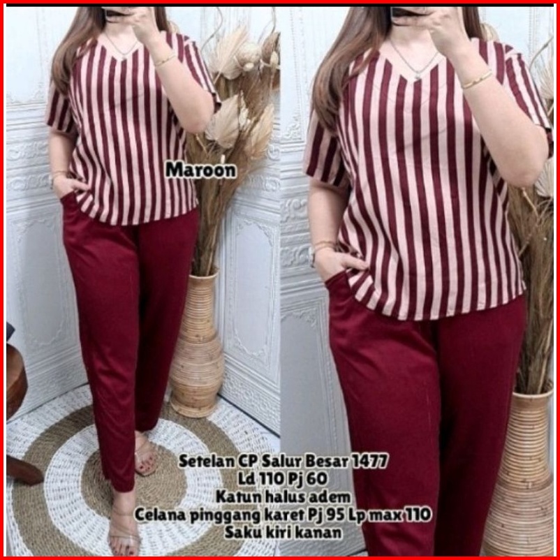 Setelan Wanita Terbaru Setcel Wanita Dewasa One Set Wanita Setelan Combinasi Salur Cp
