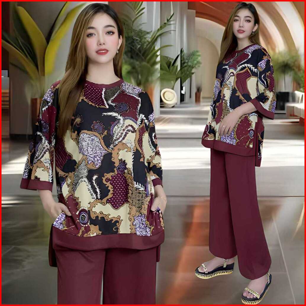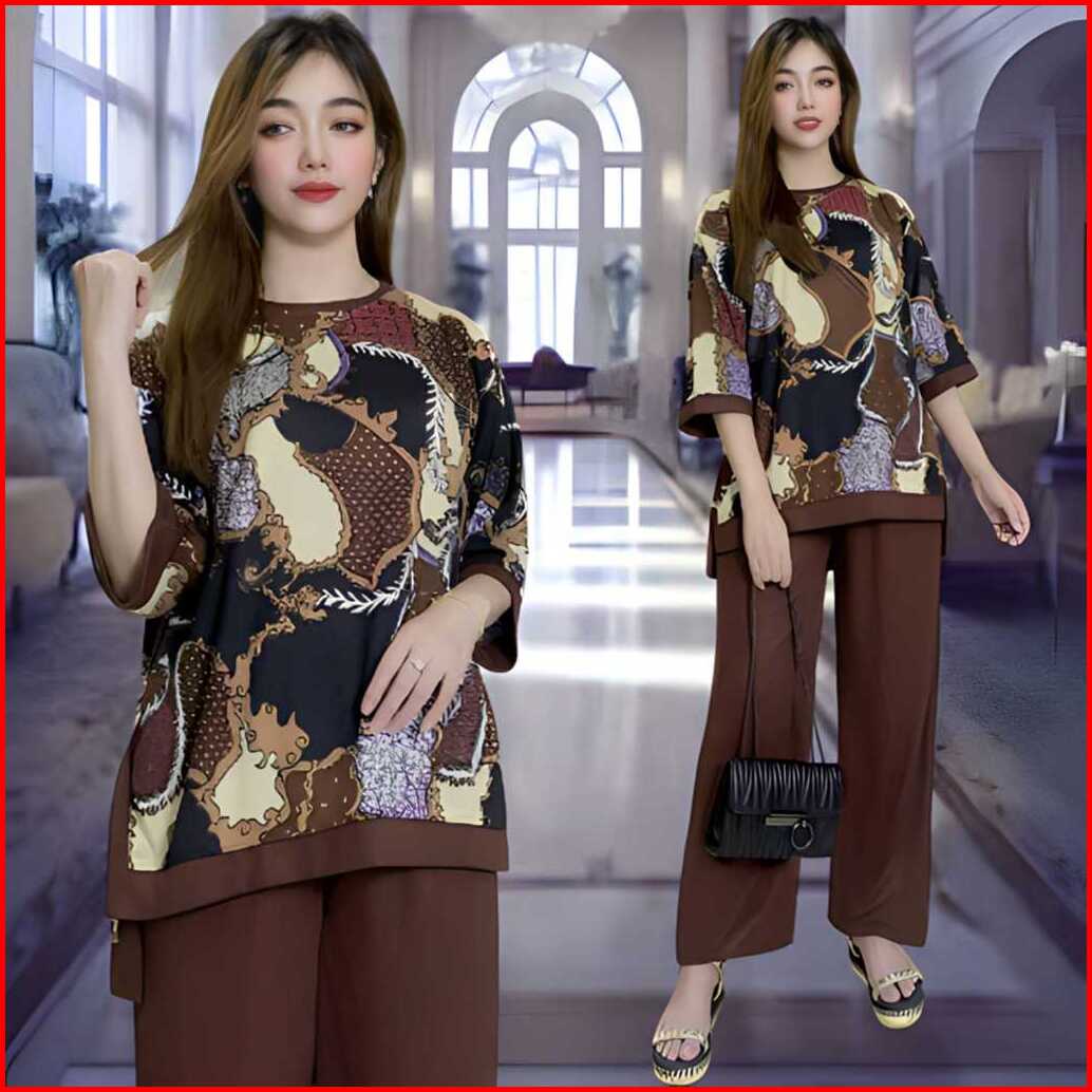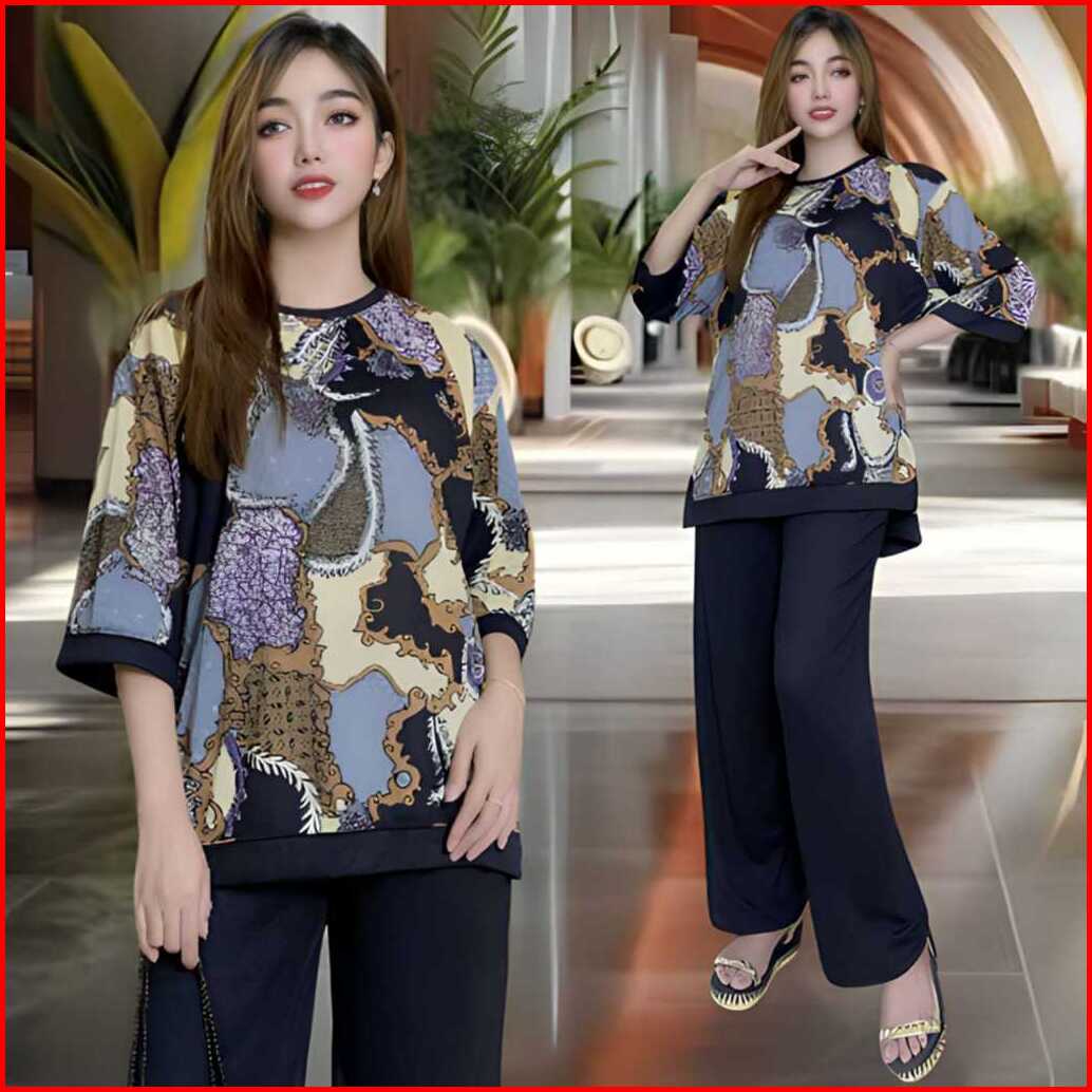 Caria Ld 120 Setelan Wanita Celana Dan Atasan Pinguin Oversize Wanita Baju Kantong Karet Kaos Dewasa Motif