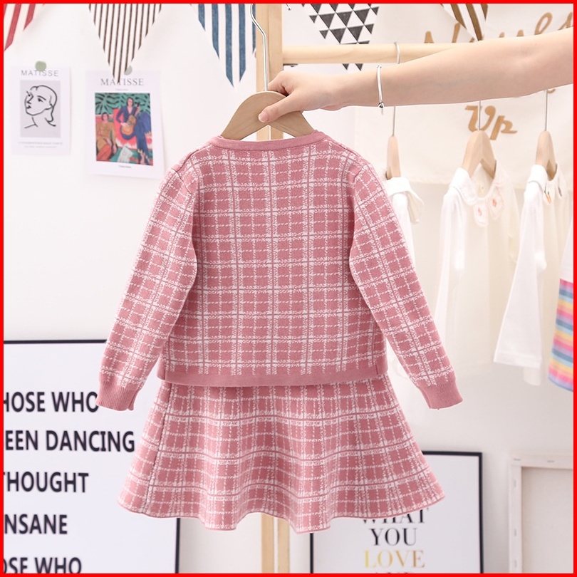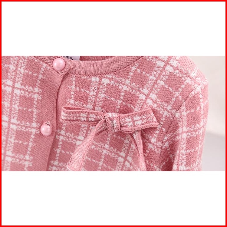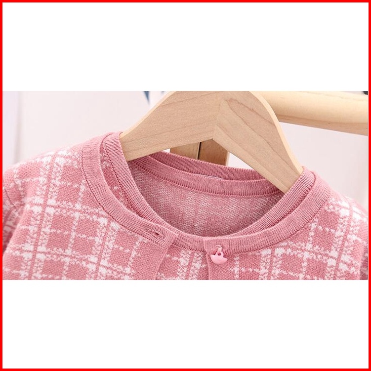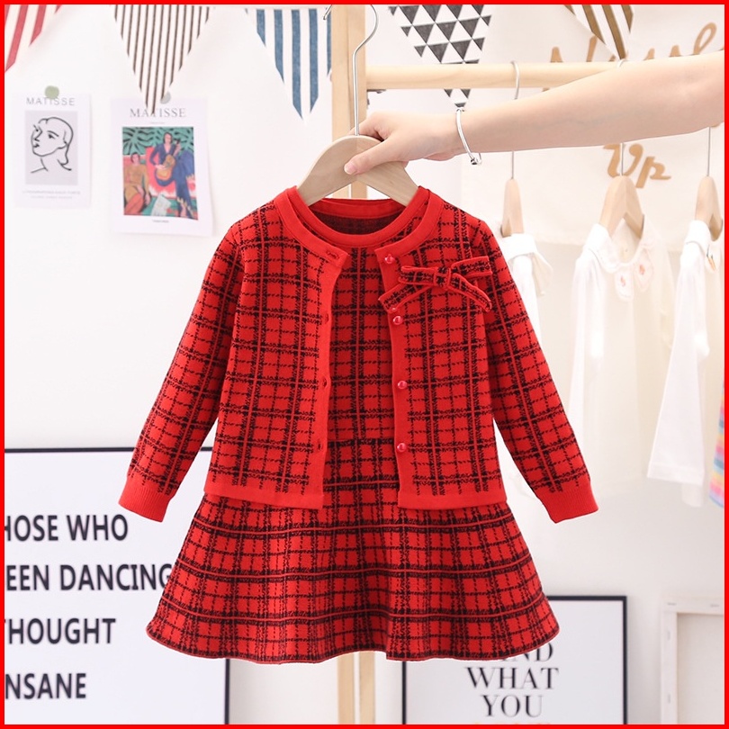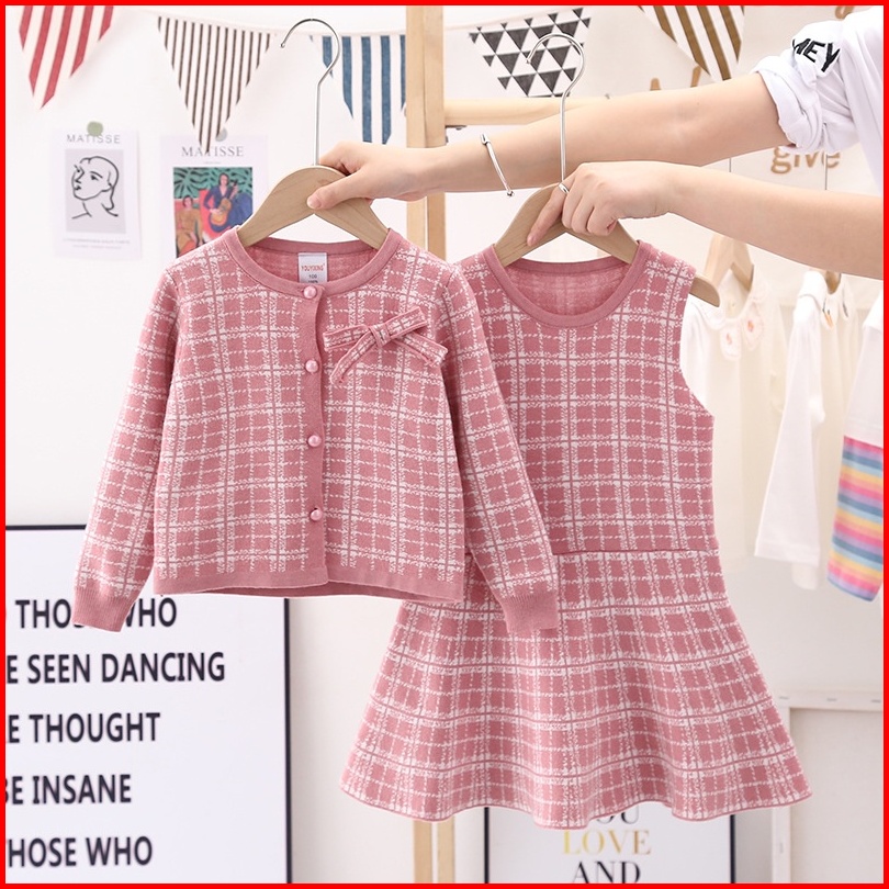 Zahra Setelan Baju Anak Perempuan Tartan Kids Cardigan Dress One Set Anak Rajut Premium Umur 1 - 6 Tahun