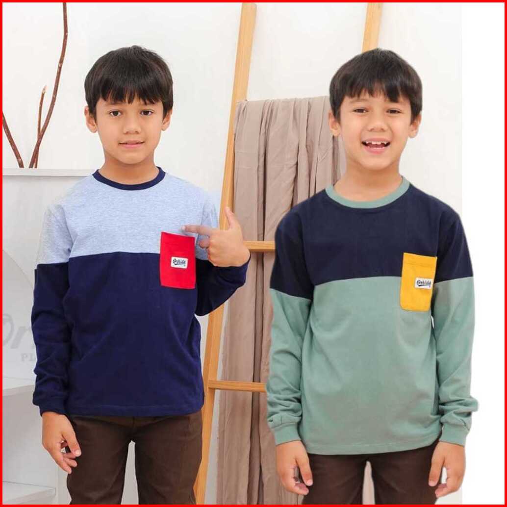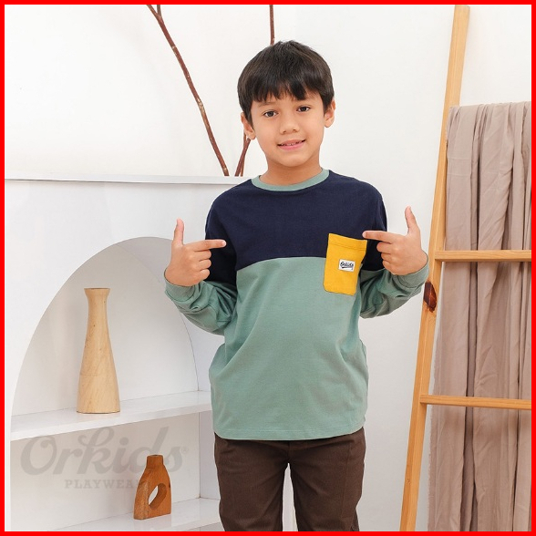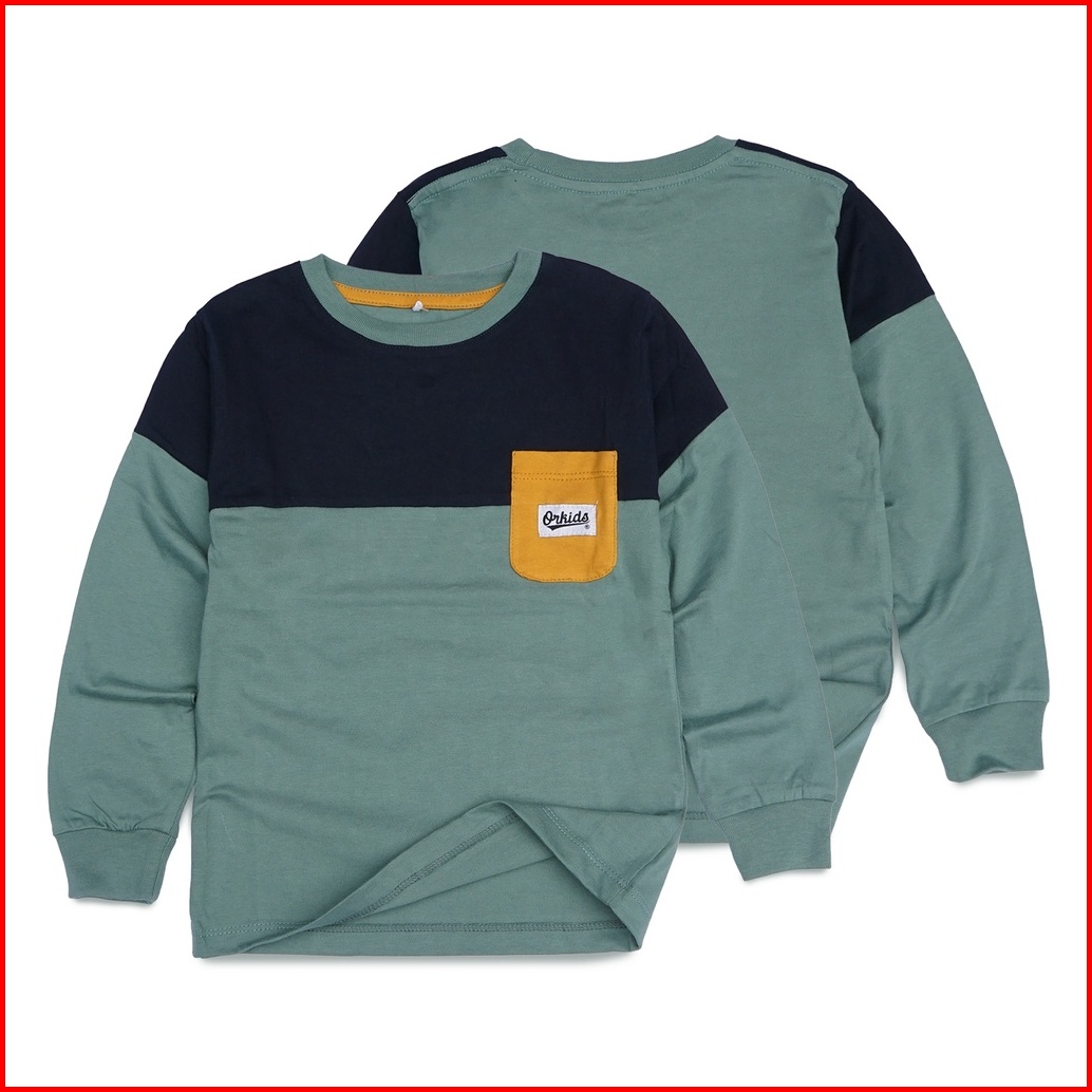 Kaos Panjang Anak Laki-laki Umur 1 - 12 Tahun Orkids Bahan Katun 24s Tones Green