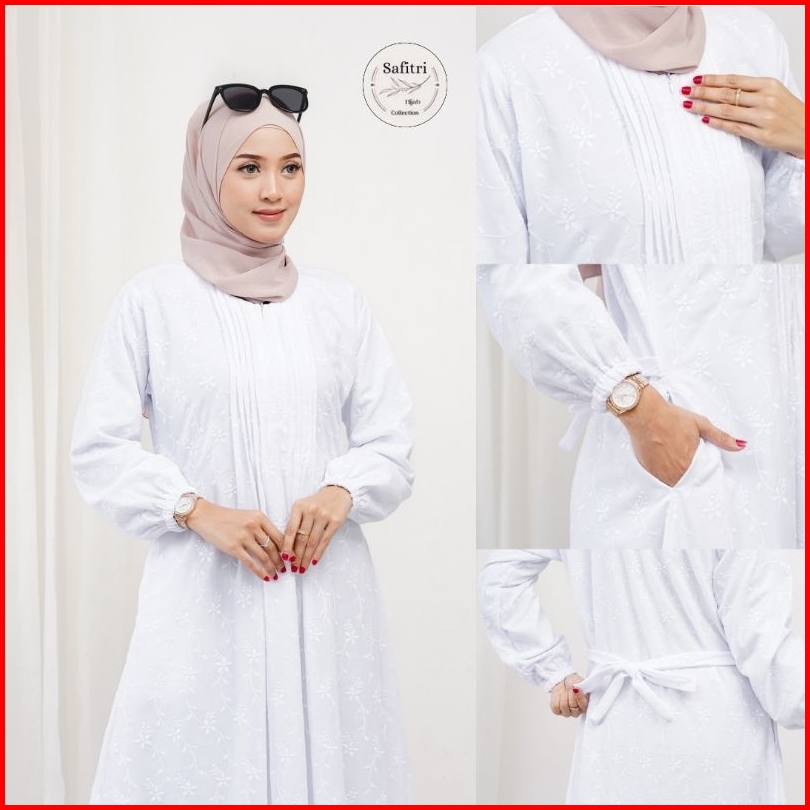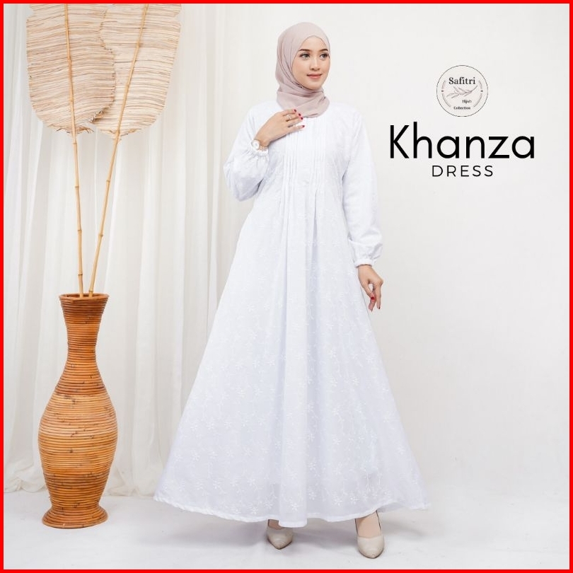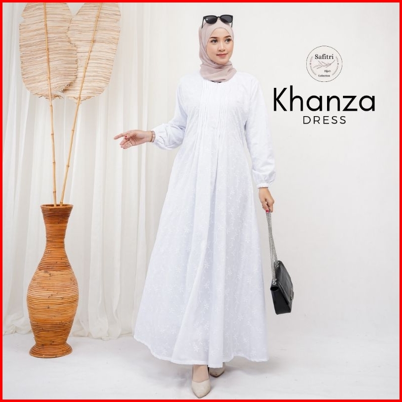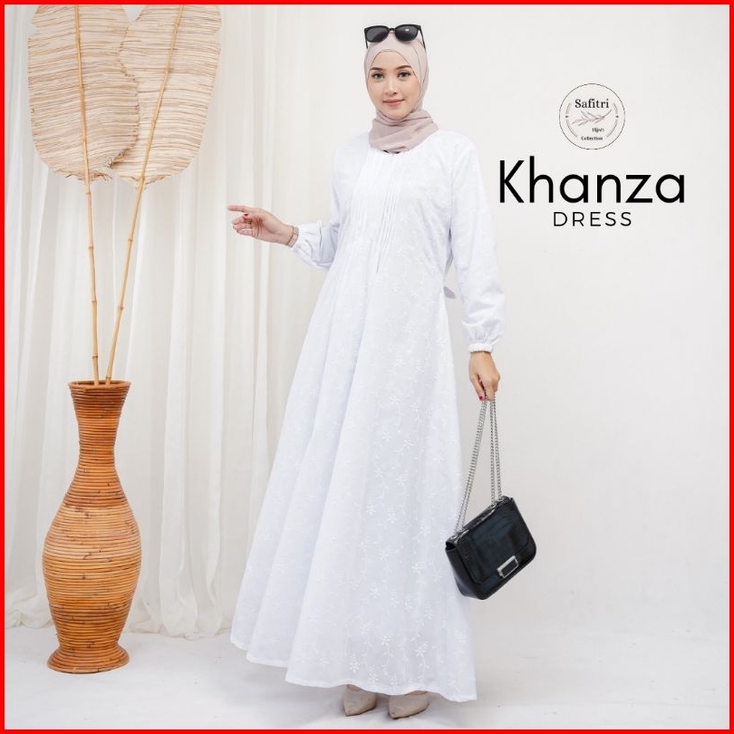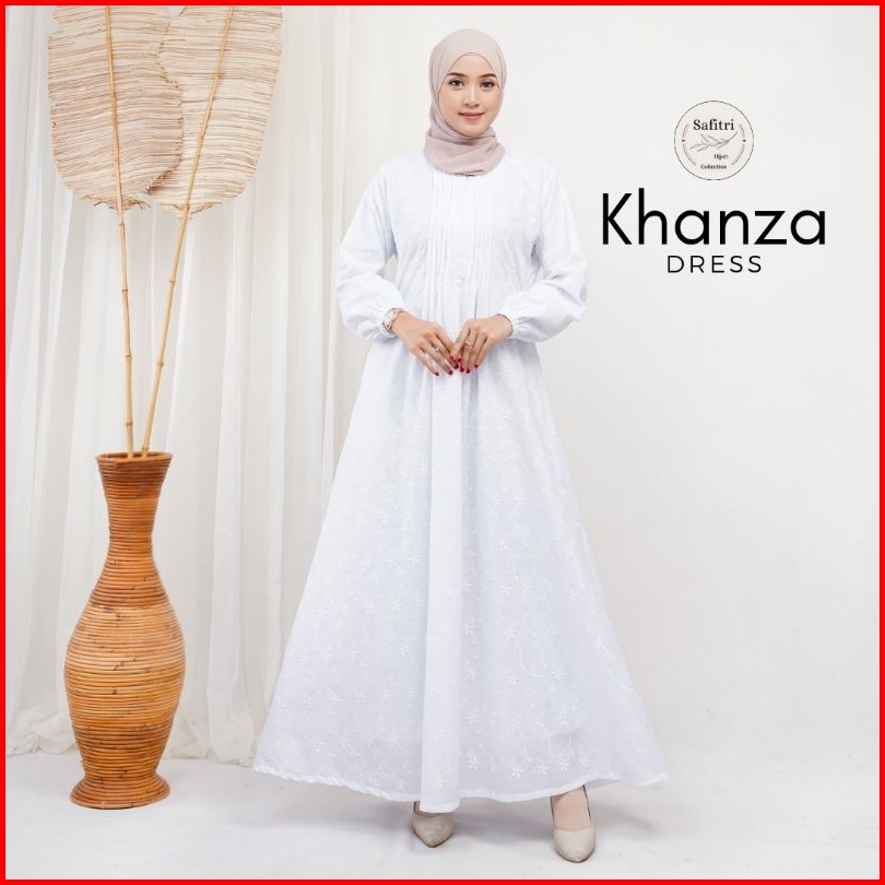 Khanza Dress Gamis Bahan Katun Adem Menyerap Keringat Busui Bordir Full Furing Sebadan By Safitri Fashion