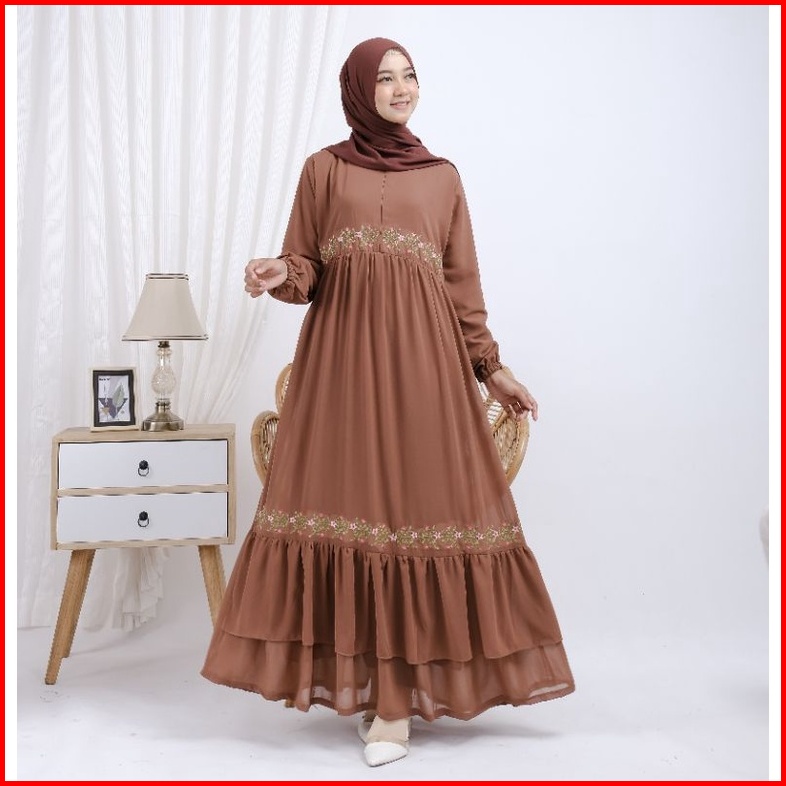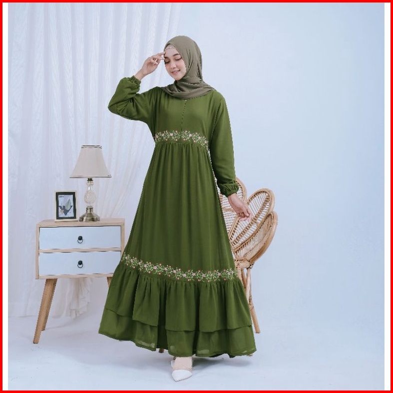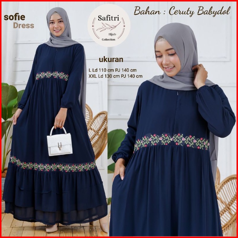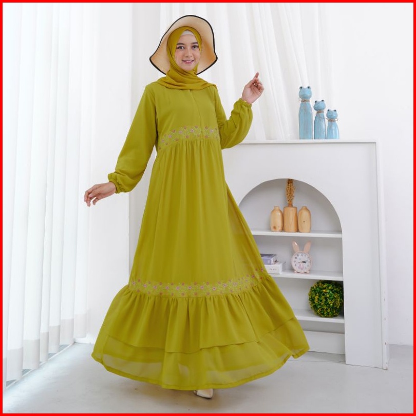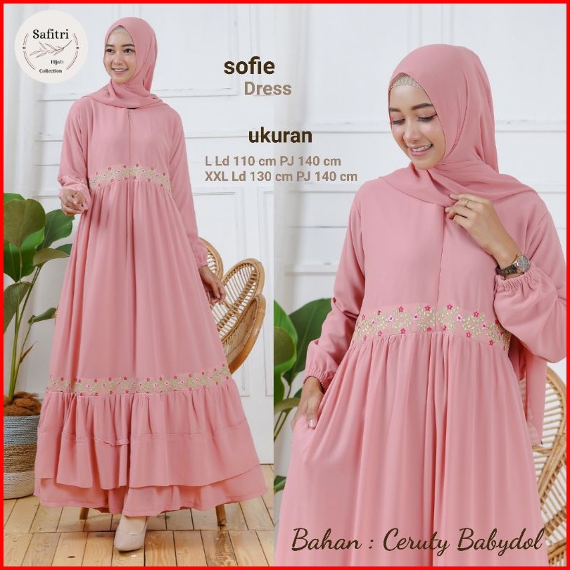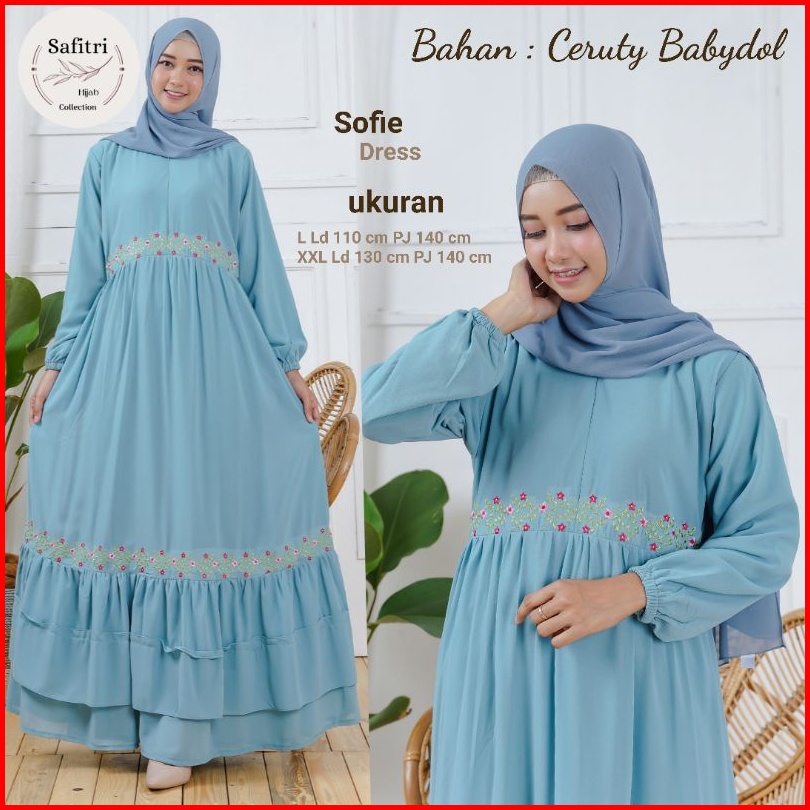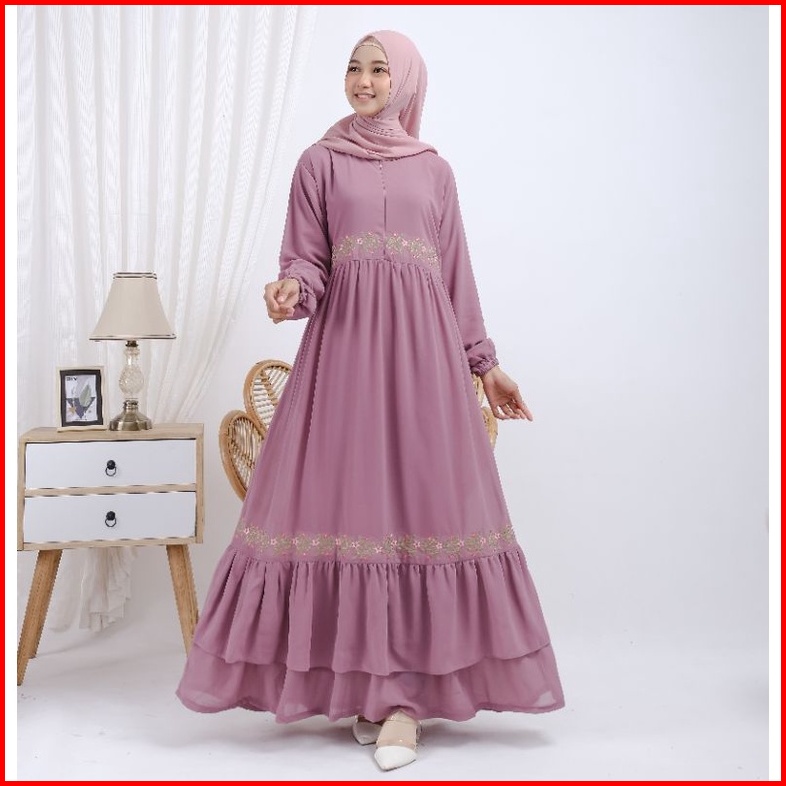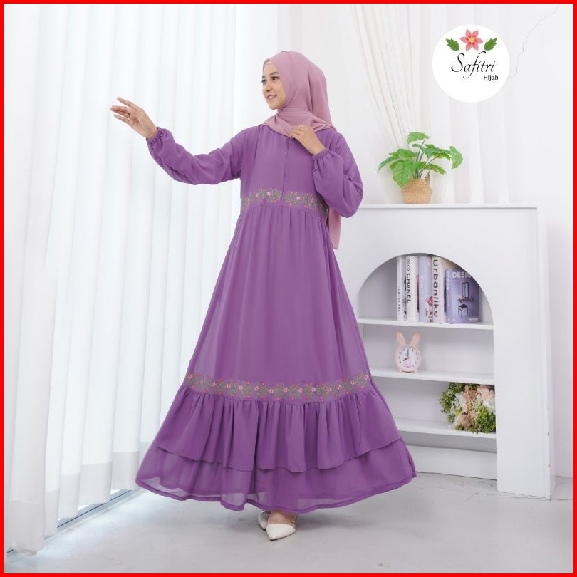 Khadija Dress 3 Gamis Bahan Ceruty Babydol Aplikasi Bordir Seragam By Safitri Fashion