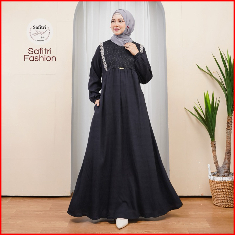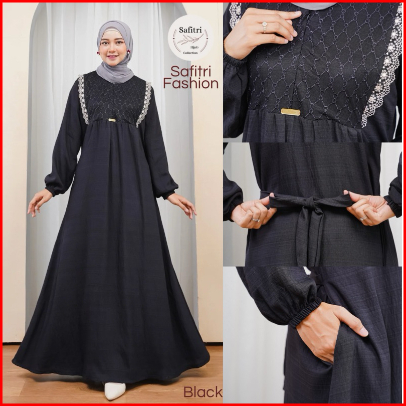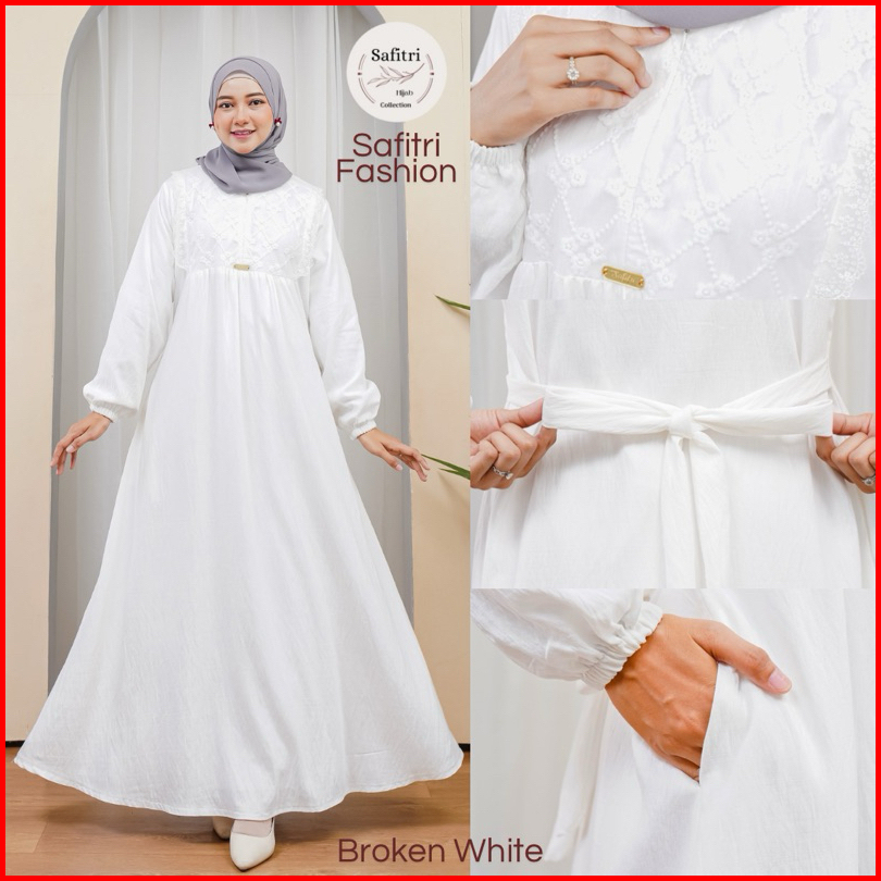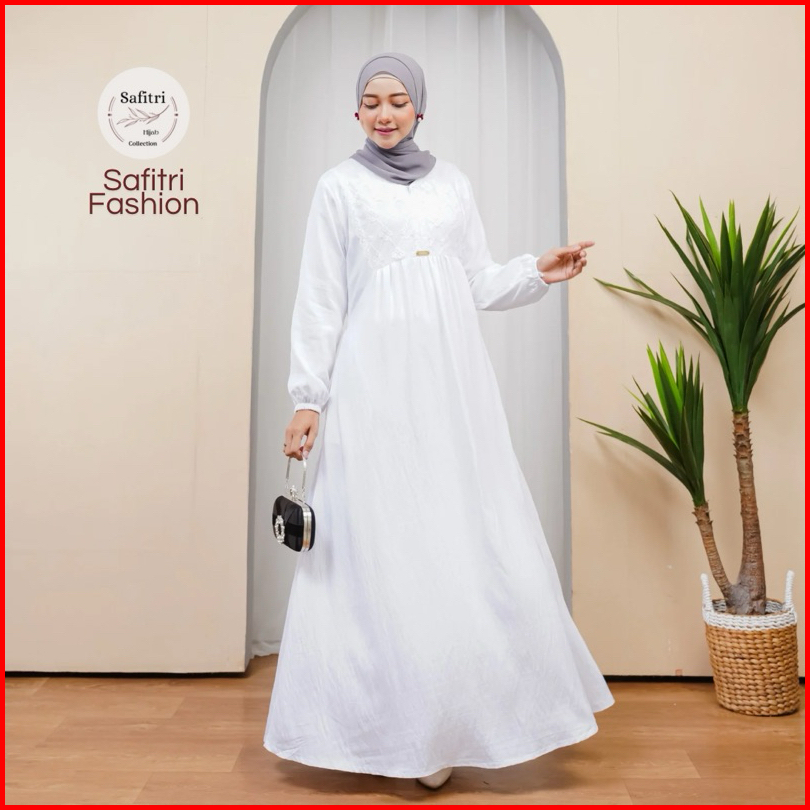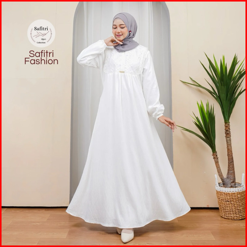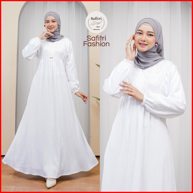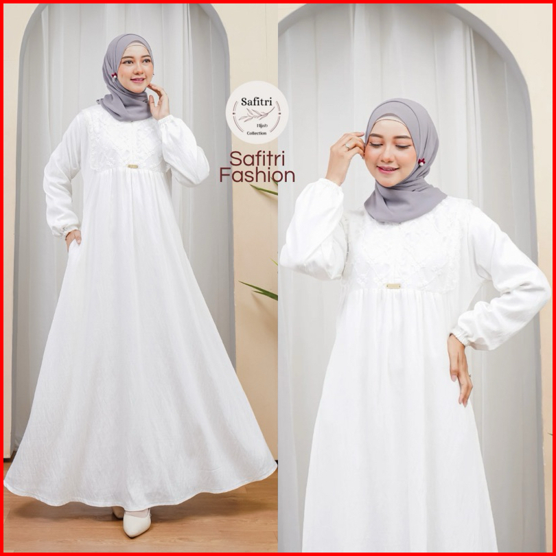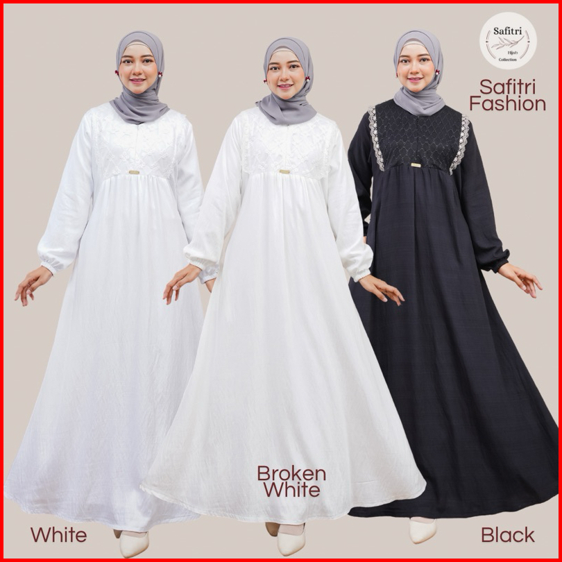 Hayfa Dress Bahan Polo Linen Putih Hitam Manasik Haji Umroh Thawaf Aplikasi Brokat Dan Renda By Safitri Fashion