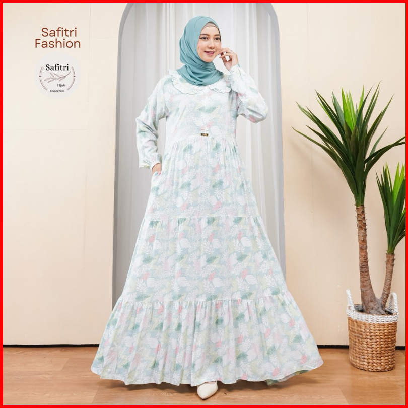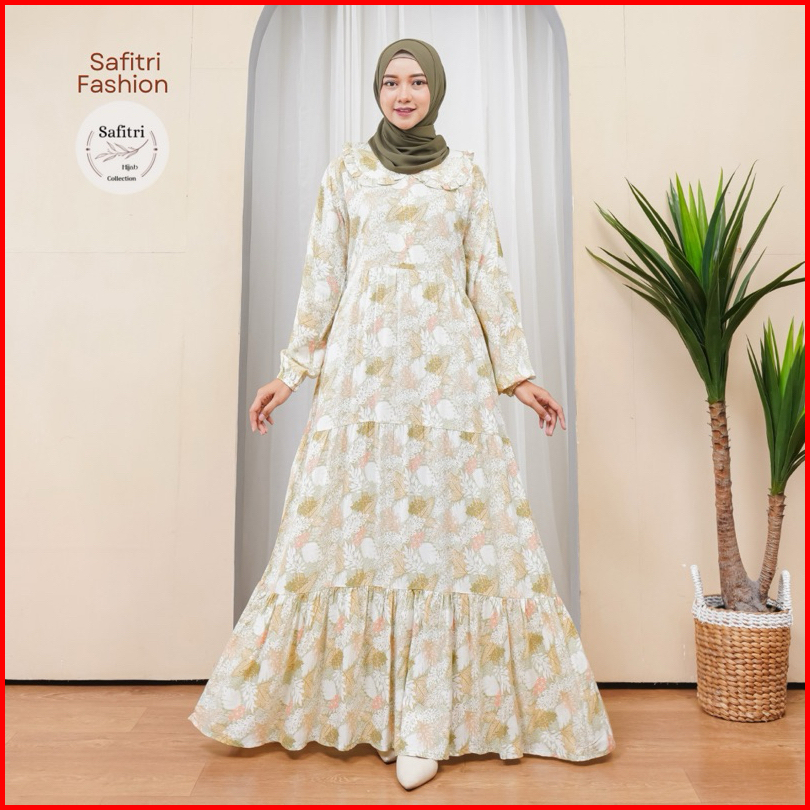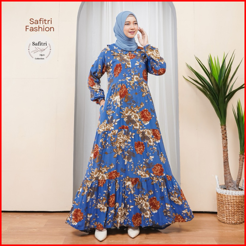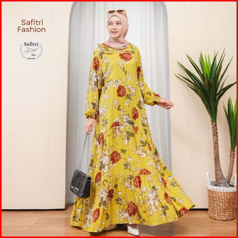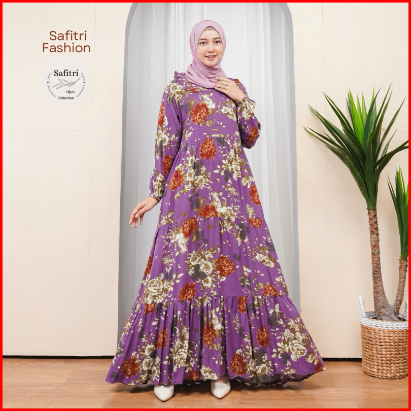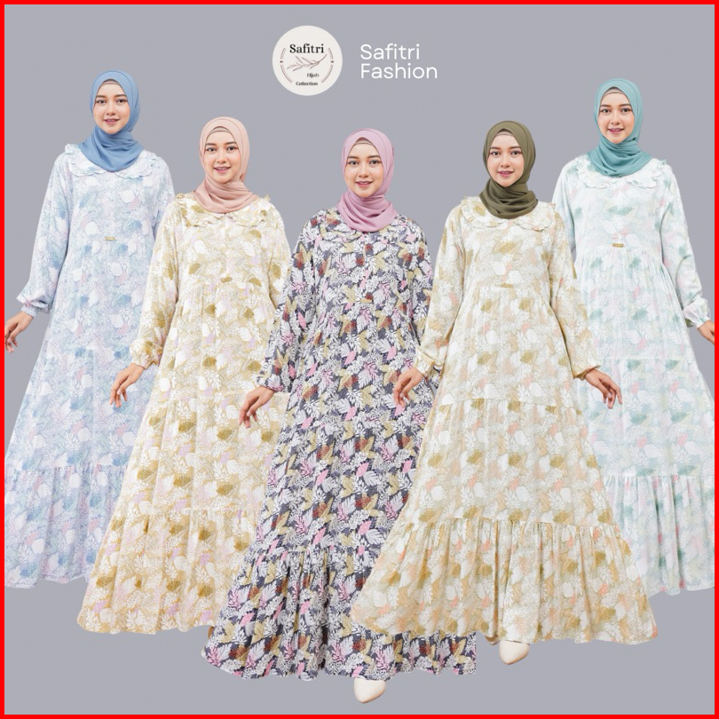 Alesha Dress Gamis Rayon Premium Grade A Motif Bunga By Safitri Fashion