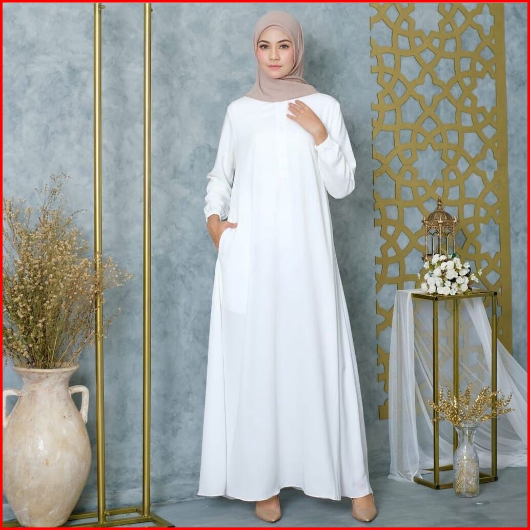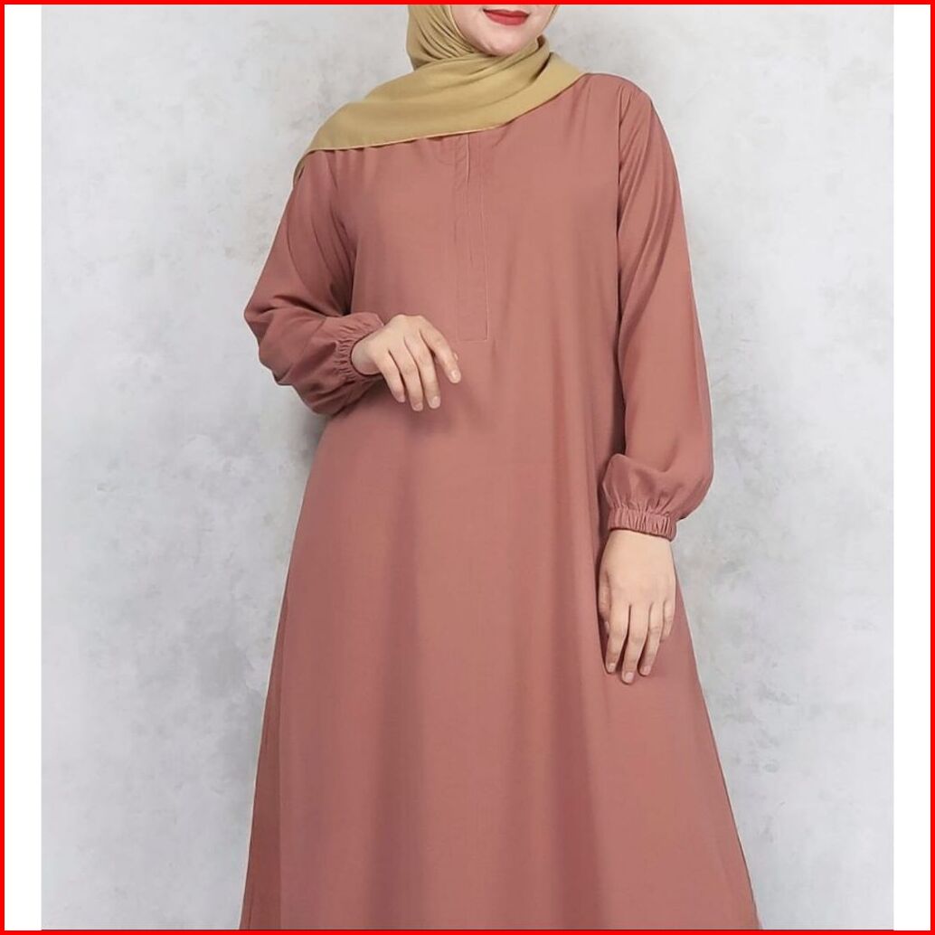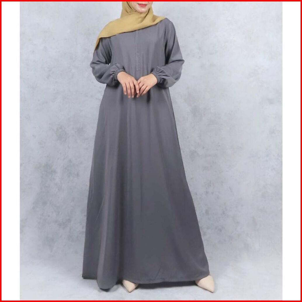 Gamis Abaya Wolfis Lengan Karet Resleting Depan Bobok