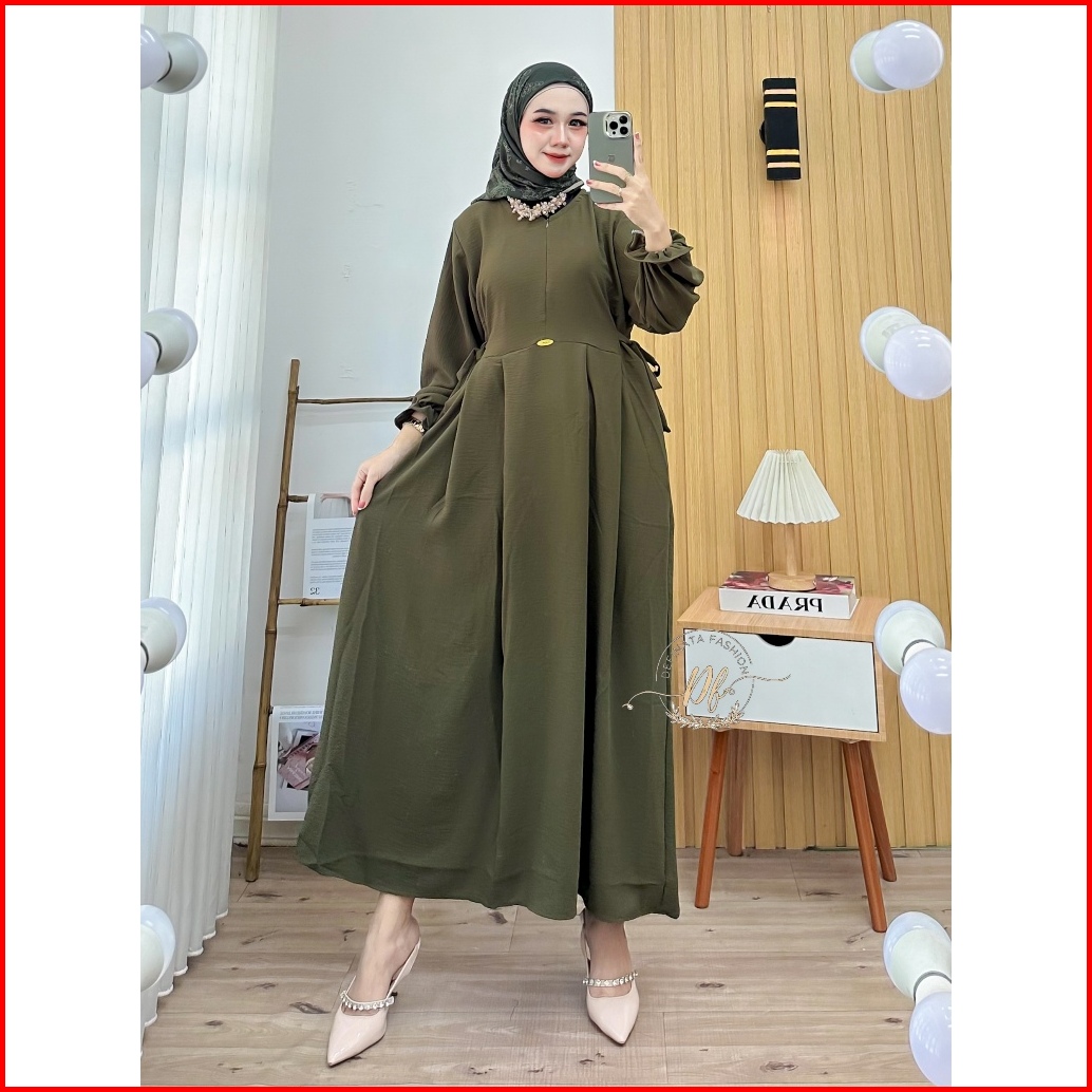 Gamis Nikita Dress Set Hijab Crinkle Airflow Lengan Berkaret