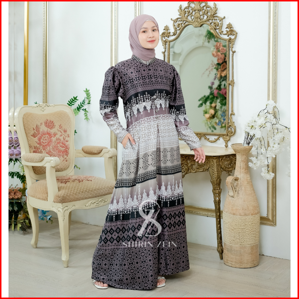Shirinzein - Baju Gamis Dress Annisa Size S-3xl Bahan Slik Jumbo Pesta Mewah Elegan
