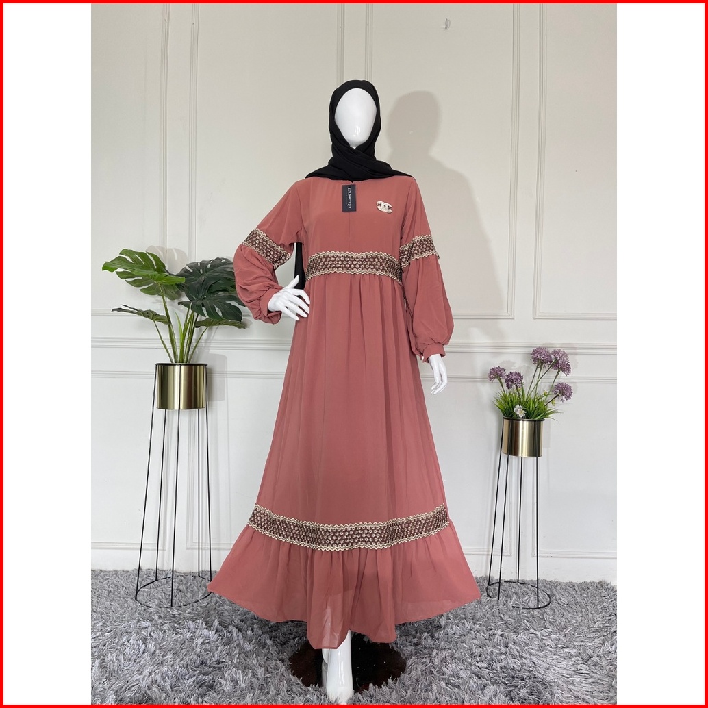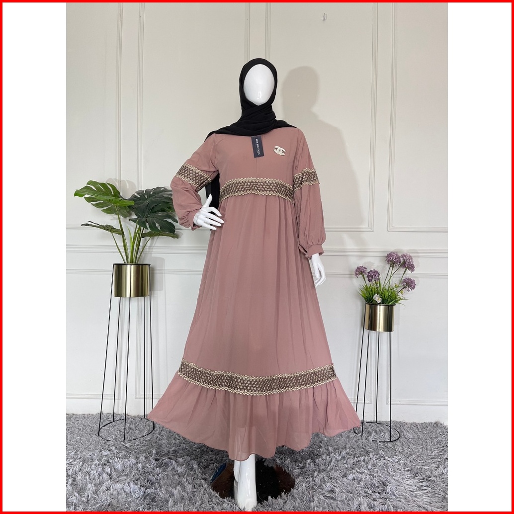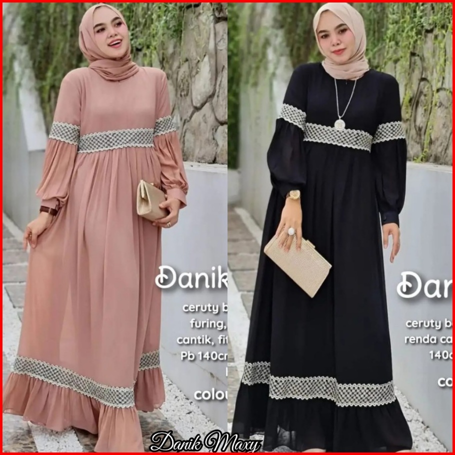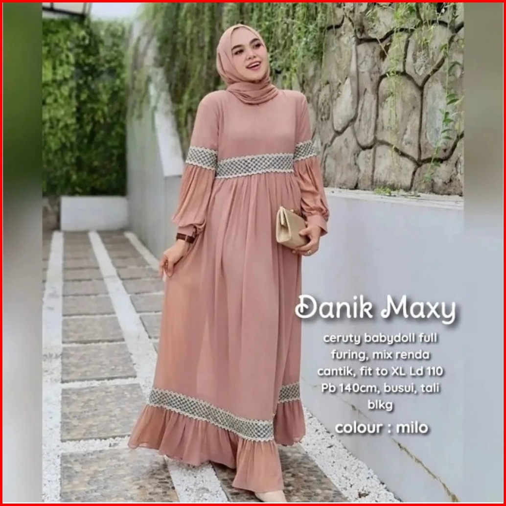 Gamis Ceruty Babydoll Polos Terbaru Full Furing Gamis Muslim Wanita Danik Maxy Dress