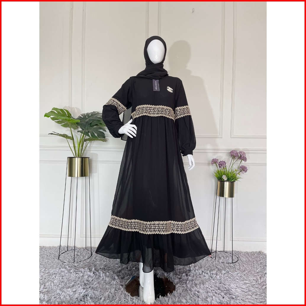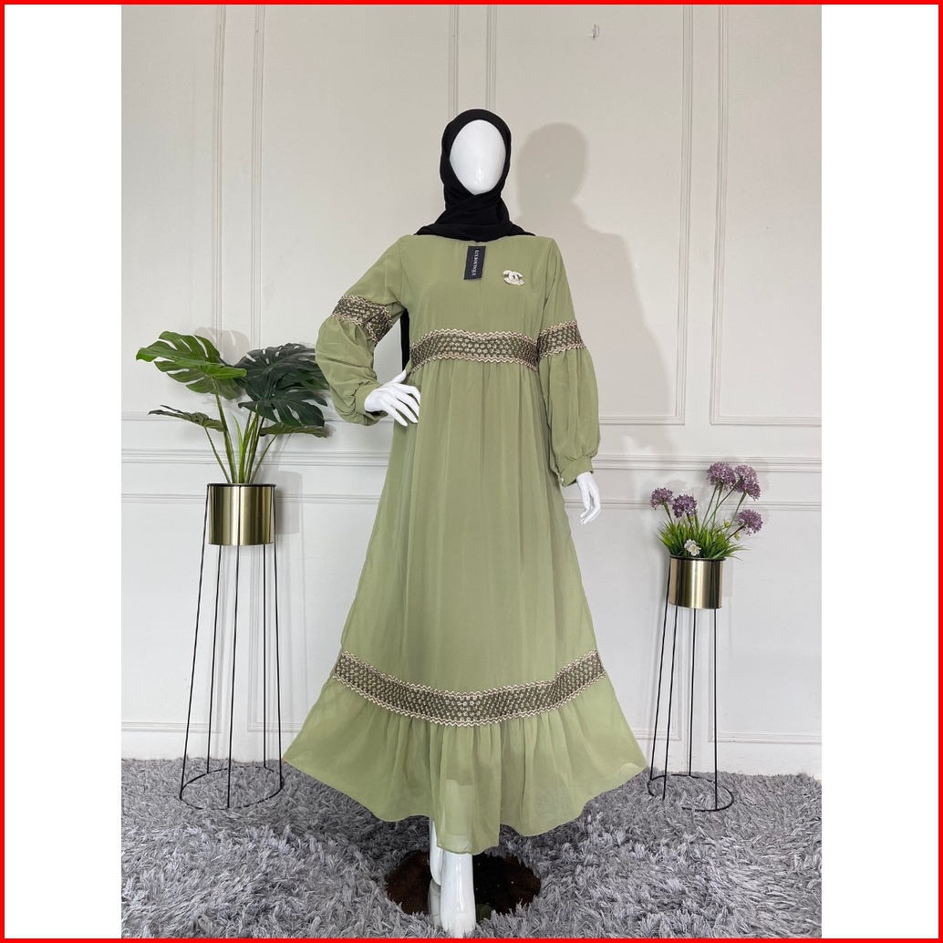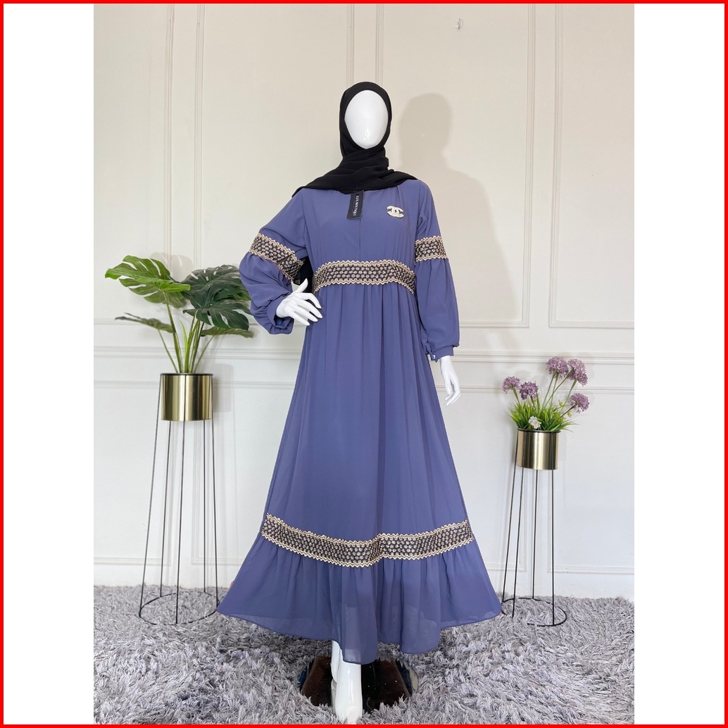 Gamis Ceruty Babydoll Polos Terbaru Full Furing Gamis Muslim Wanita Danik Maxy Dress