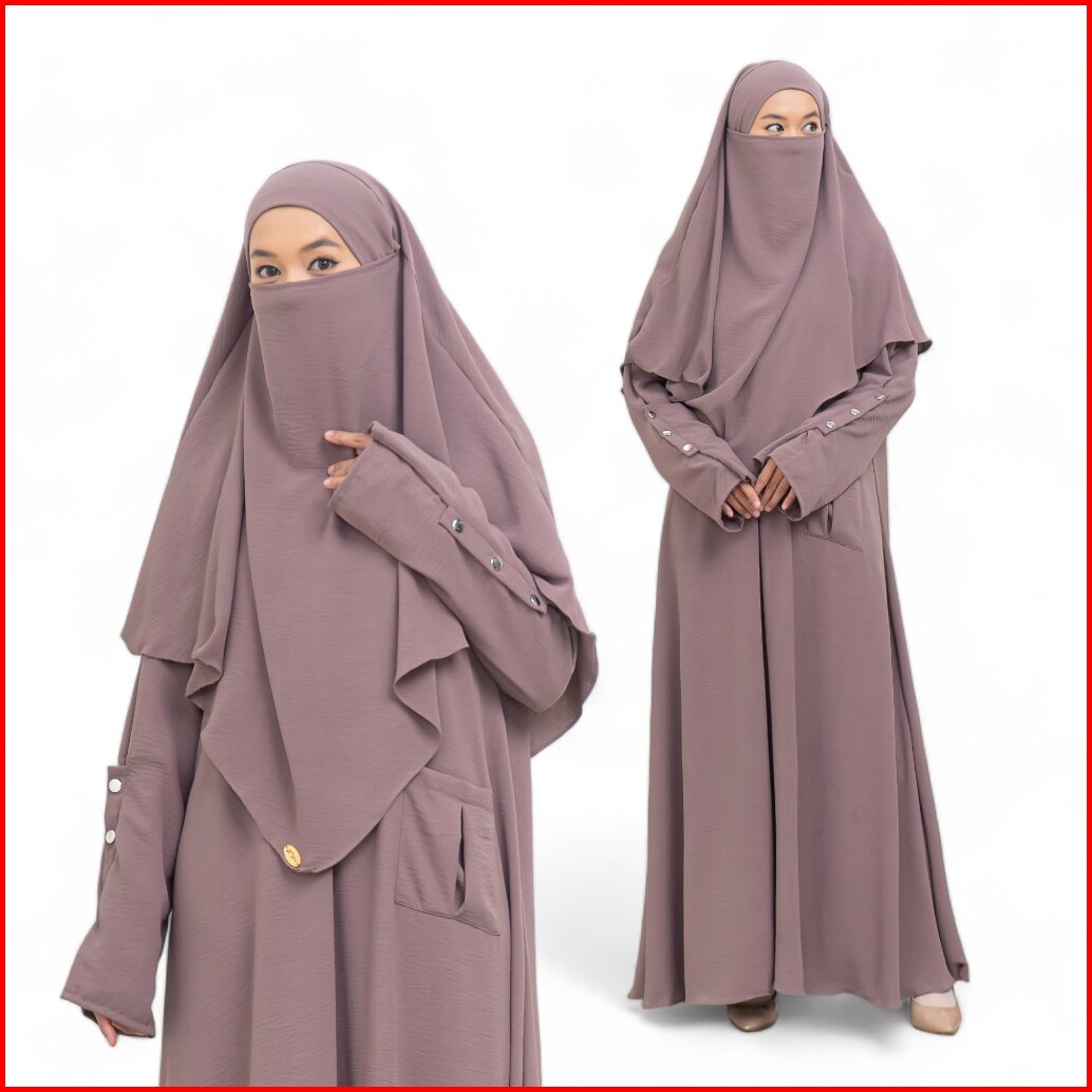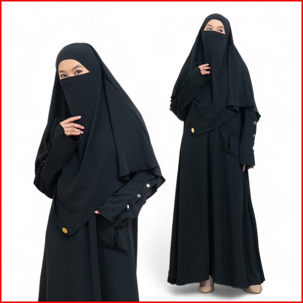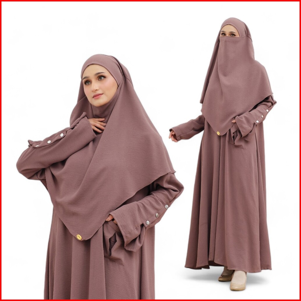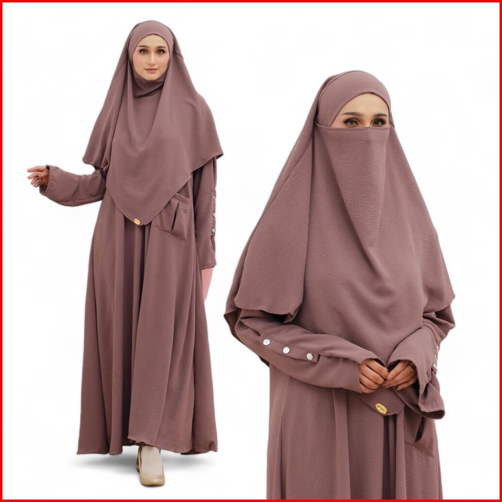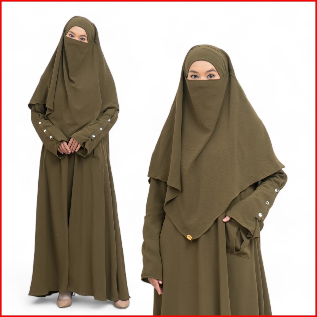 Amie Shop Hafsah Abaya Set Baju Gamis Polos Setelan Kerudung Khimar Ukuran Size Jumbo