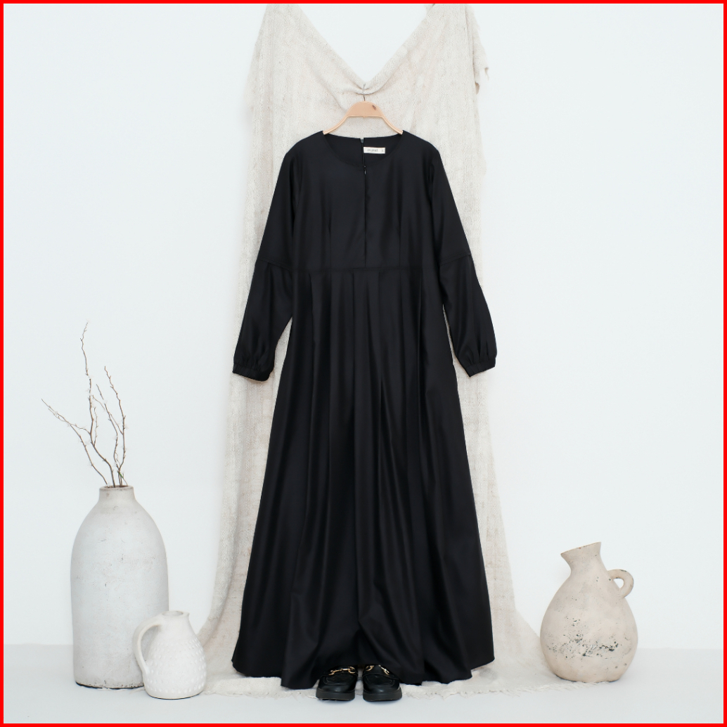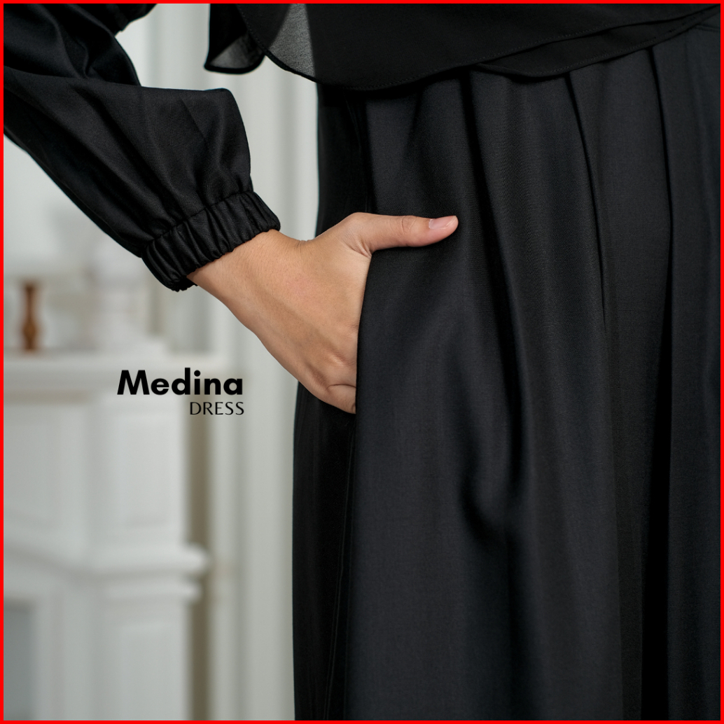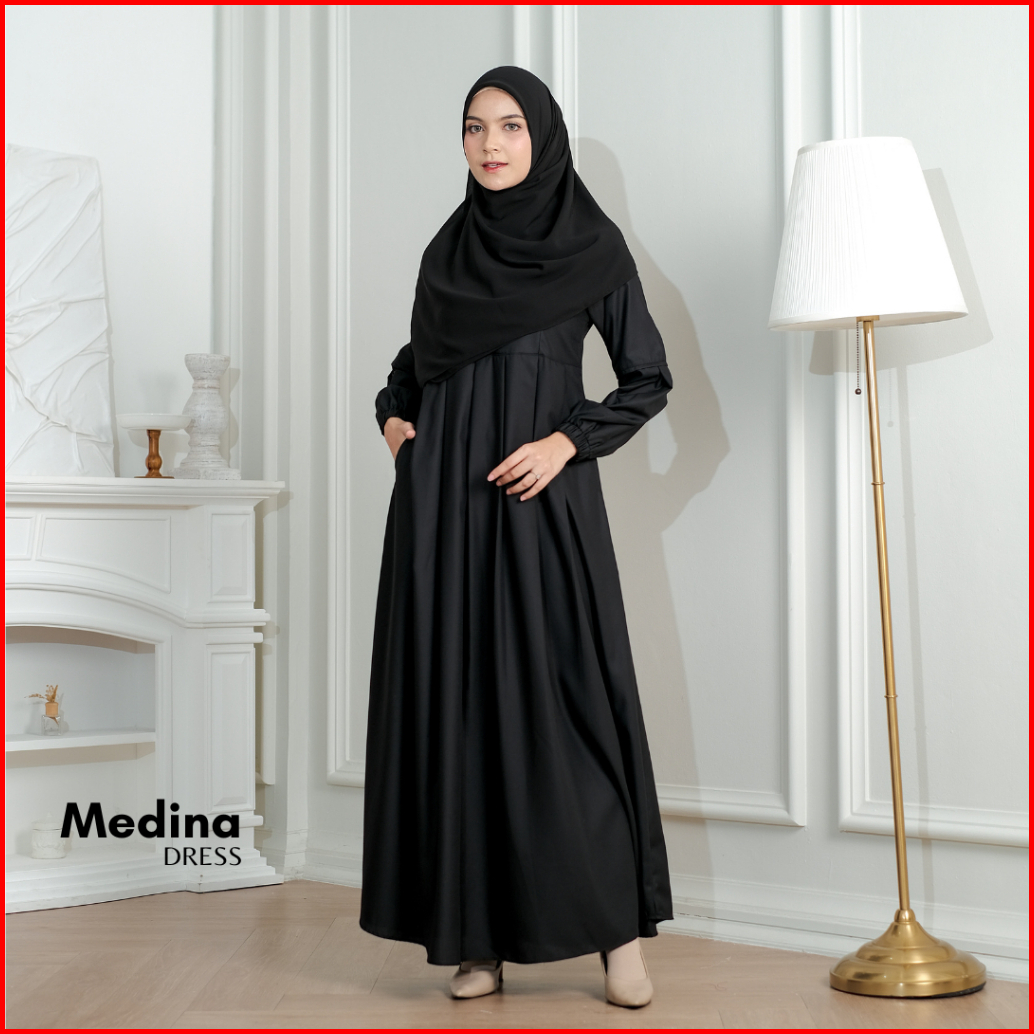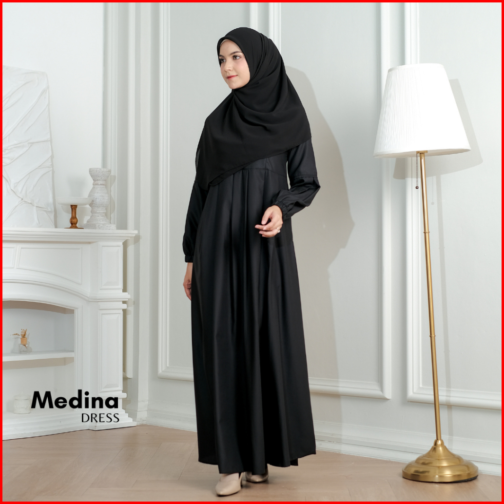 Kupnad Gamis Wanita Daily Muslimah Syari Busui Friendly Adem Modern Nyaman Medina Dress Black
