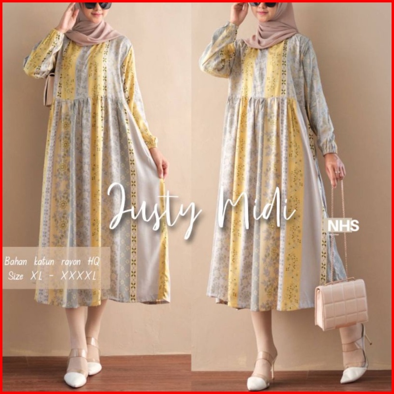 Gamis Midi Dress L Xl Xxl Xxxl Xxxxl Ld 100 110 120 130 140 Kekinian Viral 2022 Model Ussy