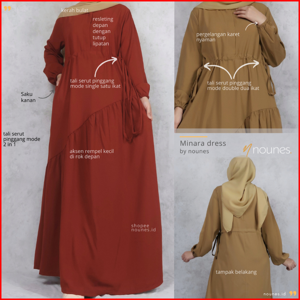 Gamis Nounes Minara Polos Wanita Saku Kanan Matt Woolpeach