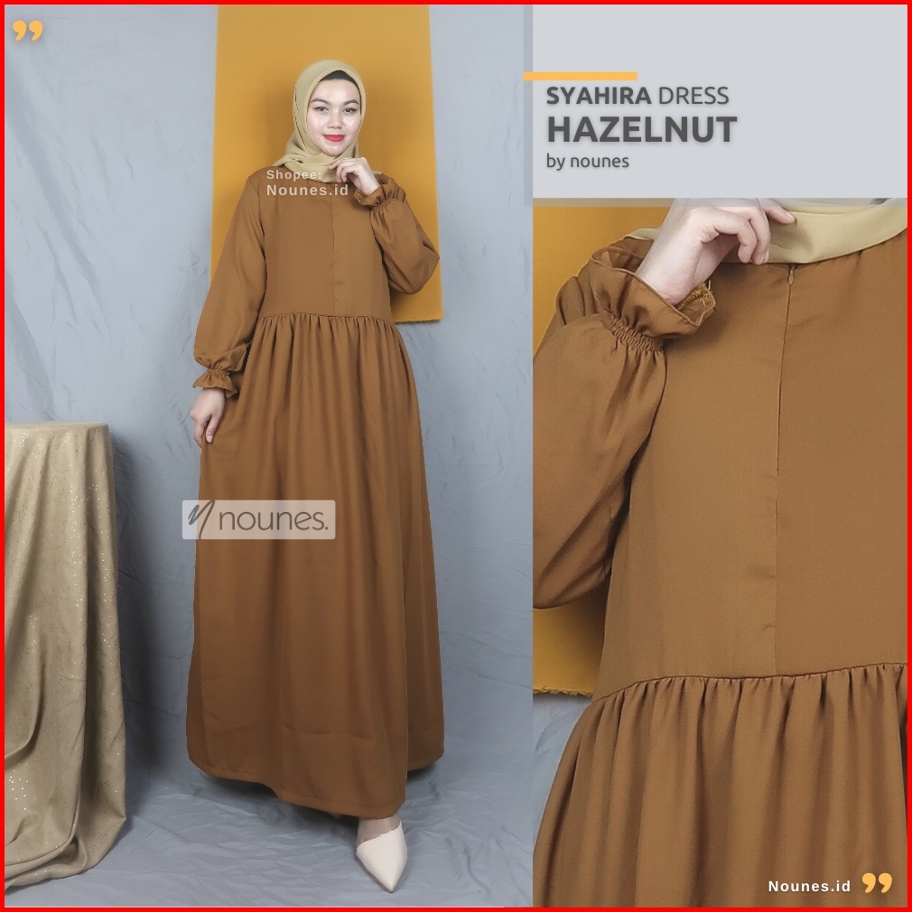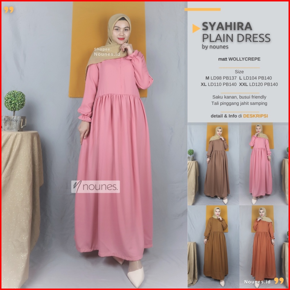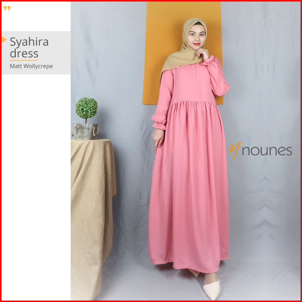 Nounes Syahira Plain Dress Gamis Wanita Matt Wollycrepe Premium