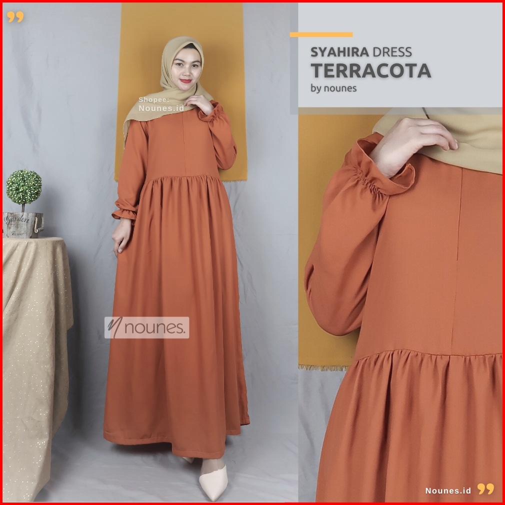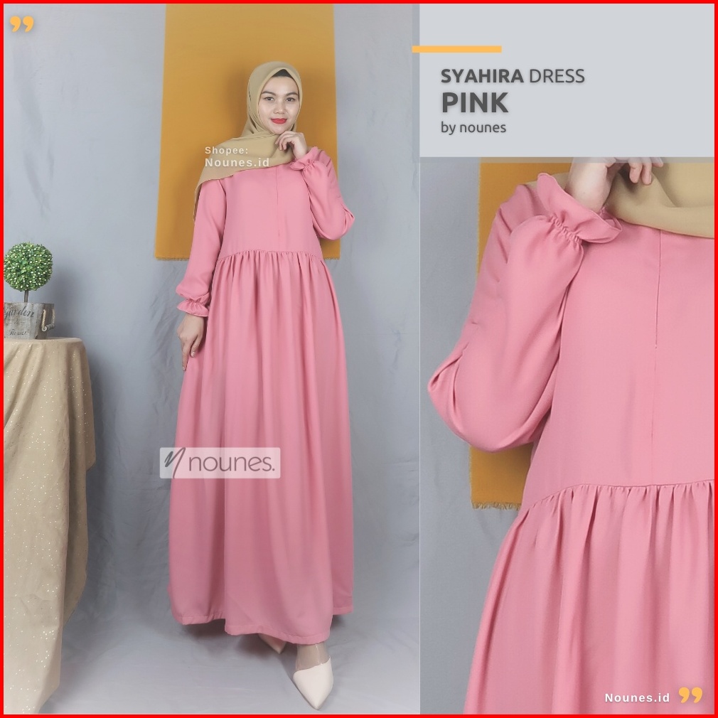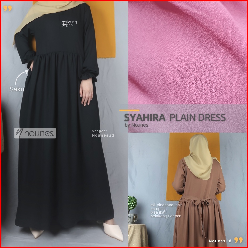 Nounes Syahira Plain Dress Gamis Wanita Matt Wollycrepe Premium