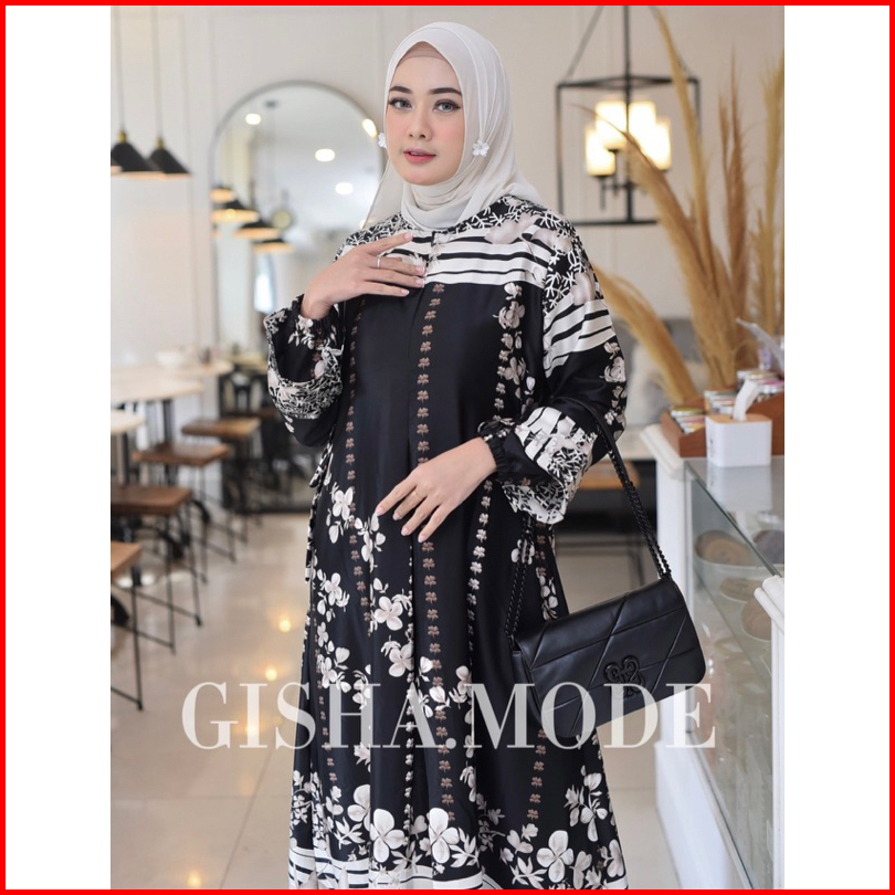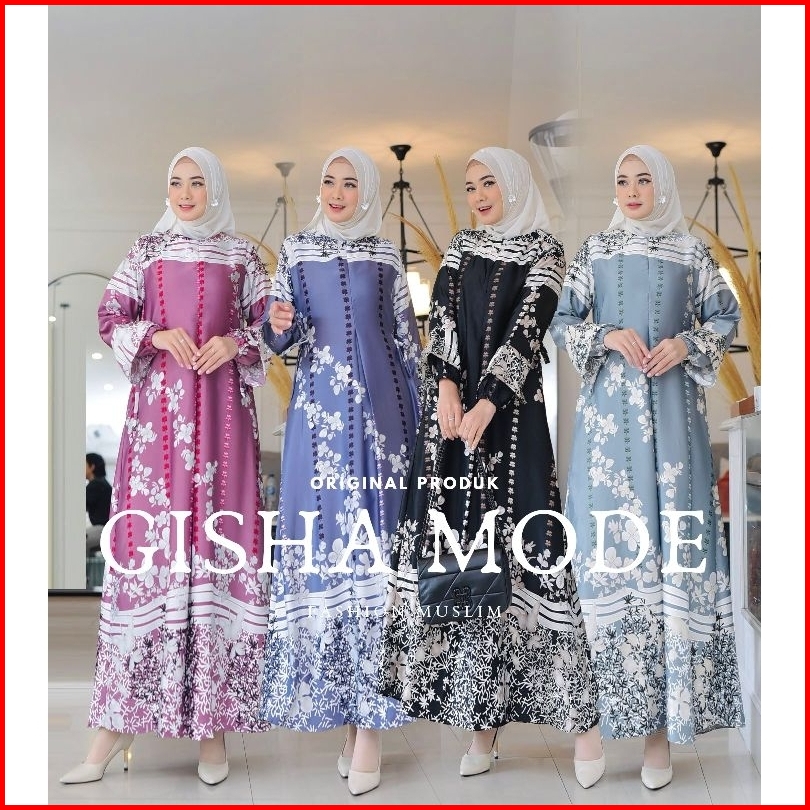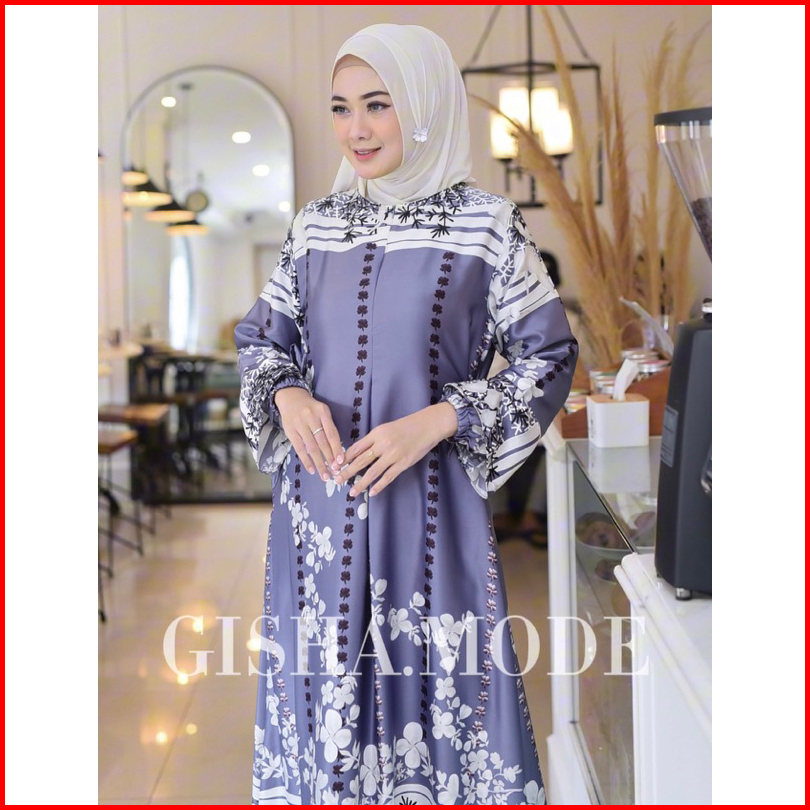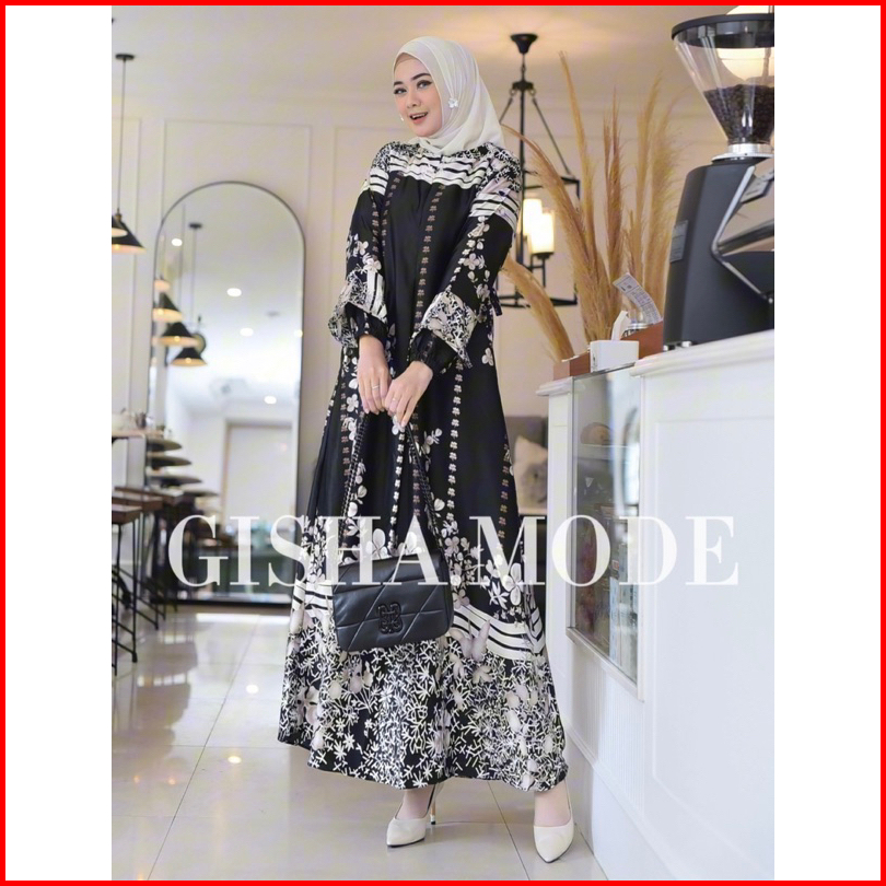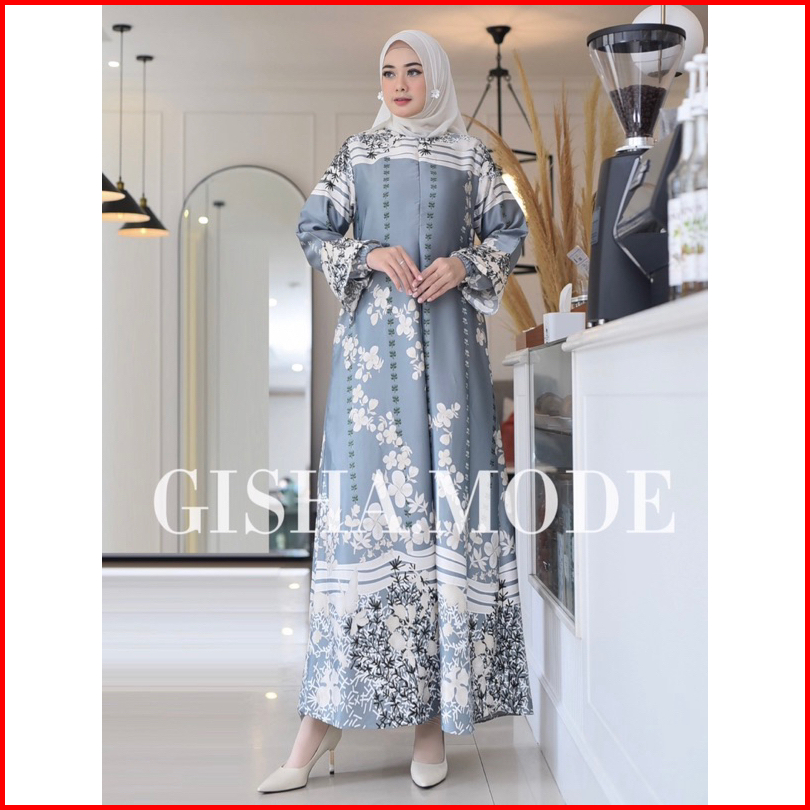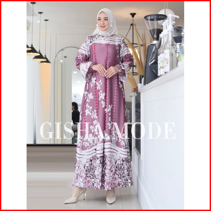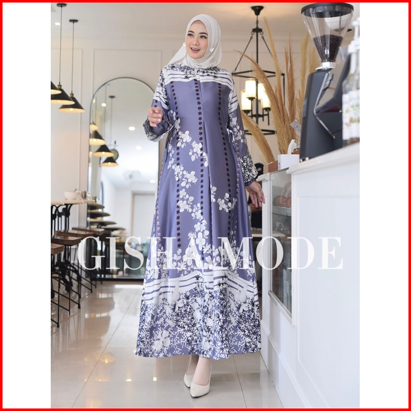 Gamis Teratai Lengan Balon Silk Premium Motif Ready Jumbo Ld 110 Ld 120 Sampai Ld 130cm Dress Muslim