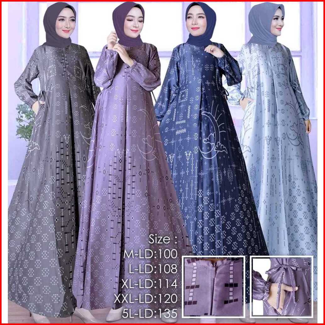 Gamis Sakura Bahan Silk Premium Motif Bulan Bintang Premium Terbaru Kekinian Murah Bisa Jumbo Ld 110 Ld 120 Sampai Ld 13