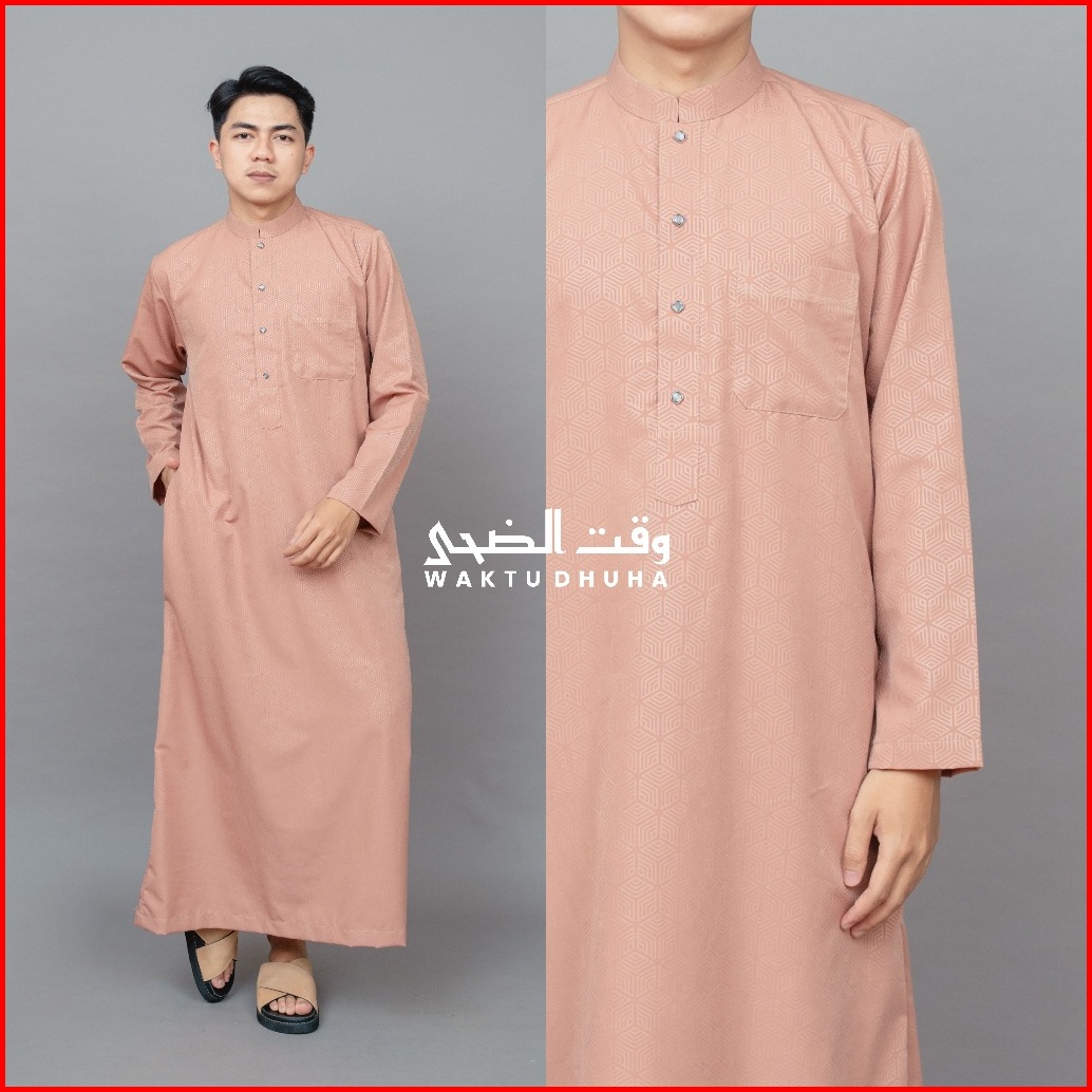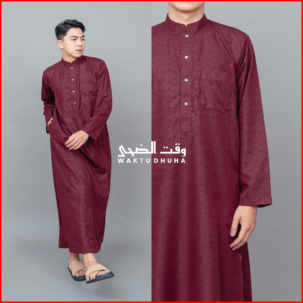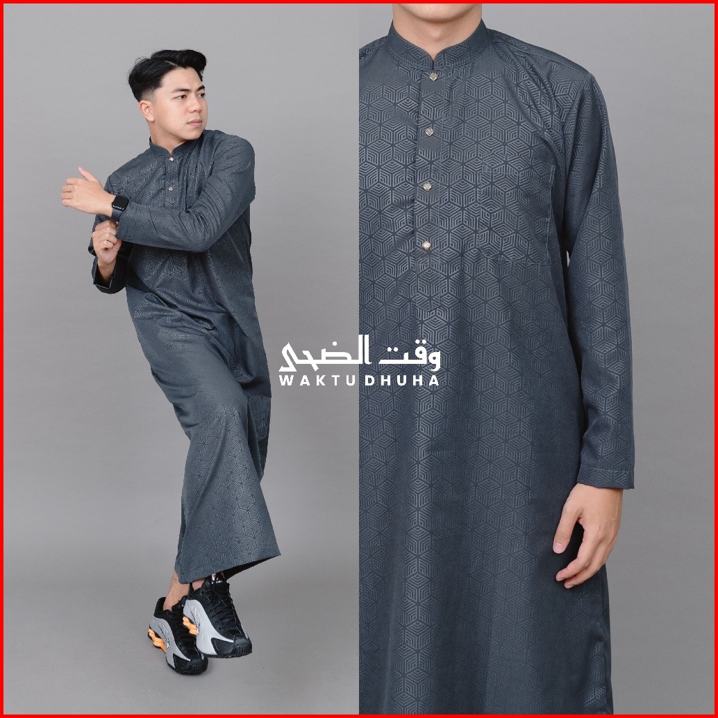 Waktu Dhuha - Jubah Malik Gamis Slimfit Pria Lengan Panjang Motif Emboss Fashion Muslim Terbaru