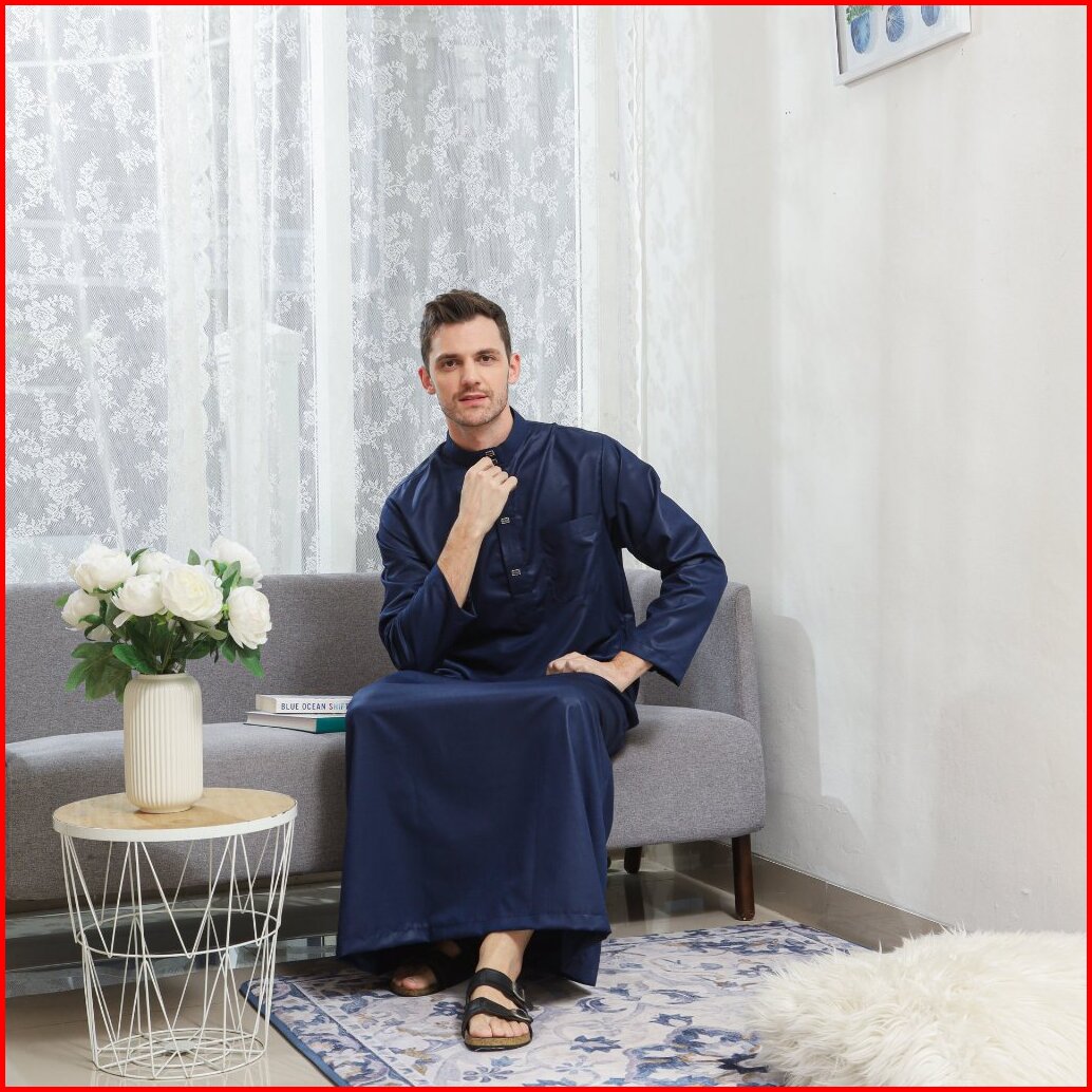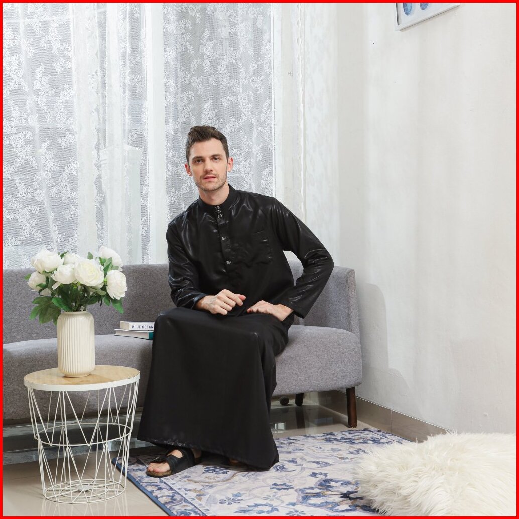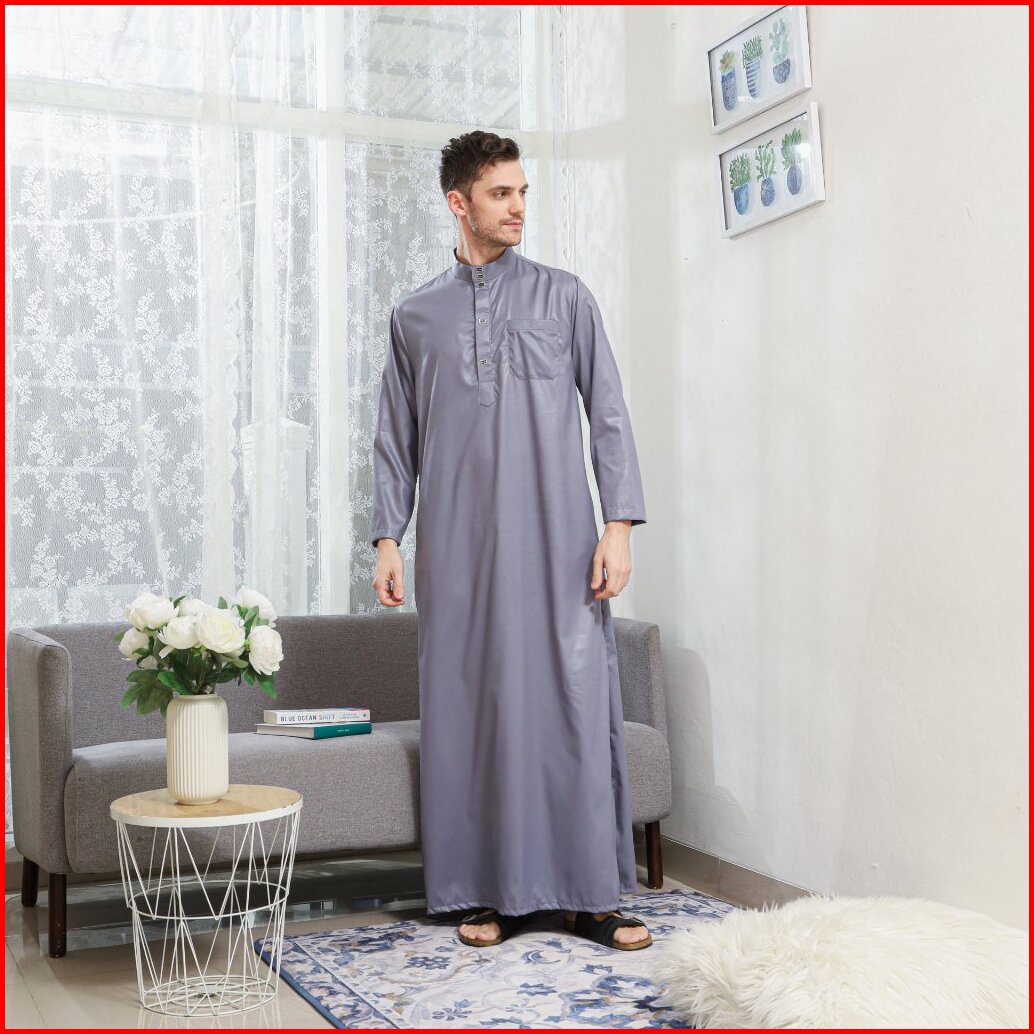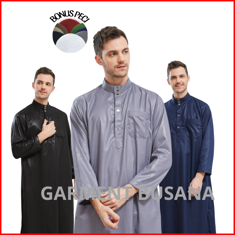 Gamis Jubah Polos Pria Lengan Panjang Pakaian Muslim Laki-laki Terbaru Jubah Dubai Elegant Mewah New