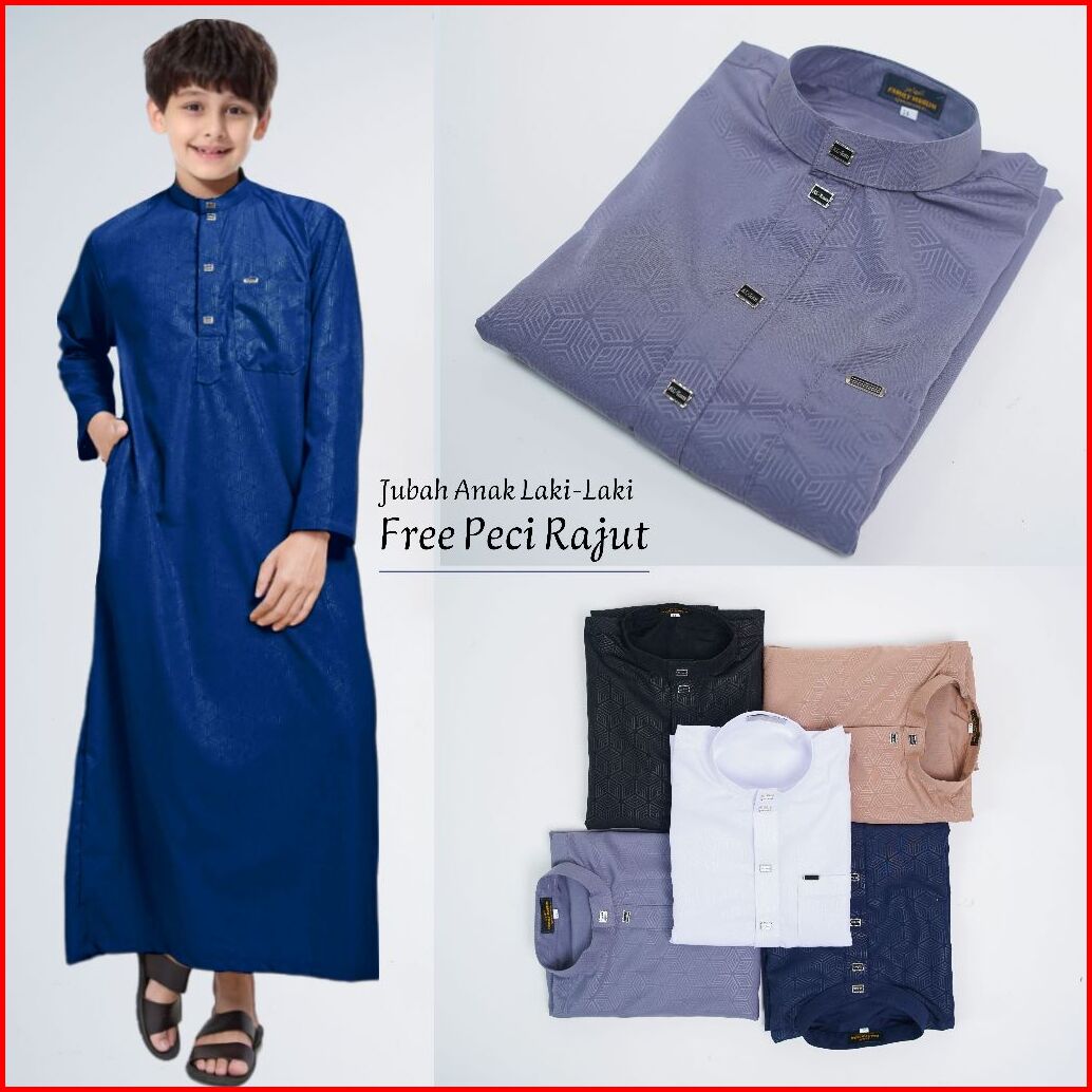 Jubah Al Qutub Gamis Anak Laki Laki Kain Embos Super Adem Jubah Anak Lengan Panjang Motif Terbaru Fashion Muslim Style M