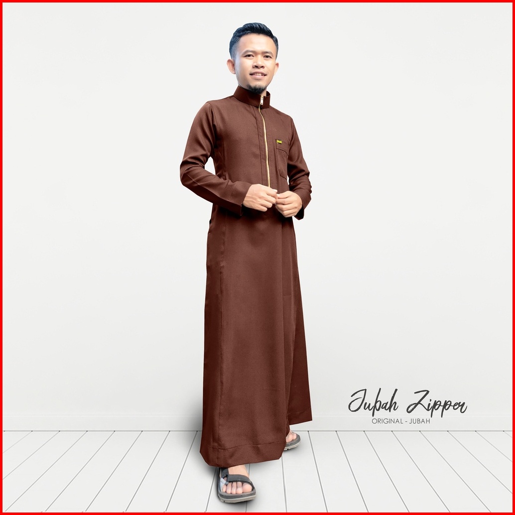 Dejubah - Jubah Pria Dewasa Slim Fit Model Zipper - Resleting Lengan Panjang