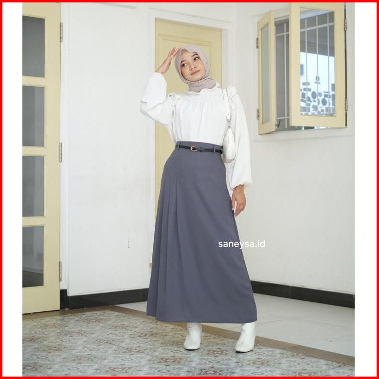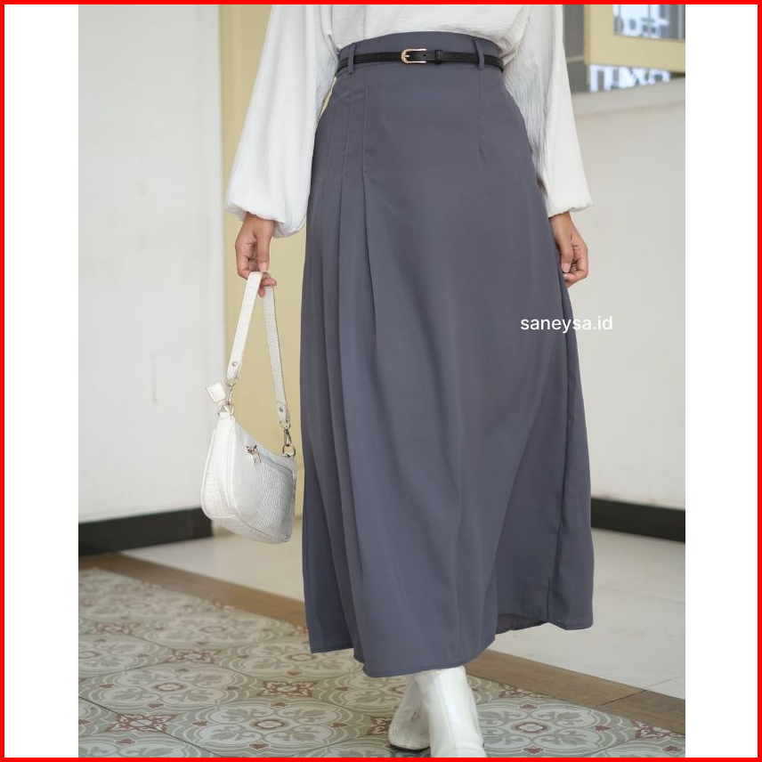 Yoora Skirt Rok Wanita - Midi Maxi Korean Loose Skirt - Rok A Line Kuliah Kerja - Polyester Skirt Anti Kusut - Rok Polos
