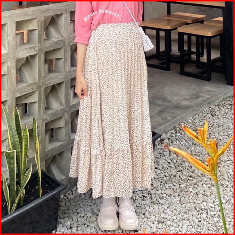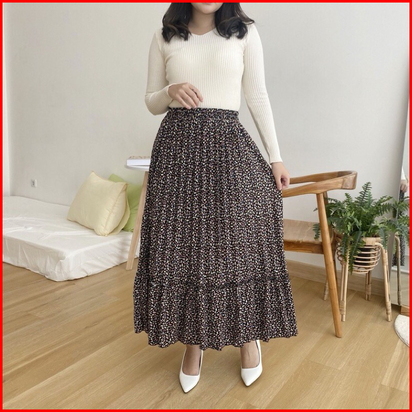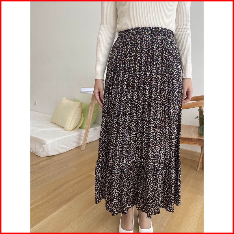 Kabira Rok Plisket Remple Motif Aster - Pleated Skirt Premium