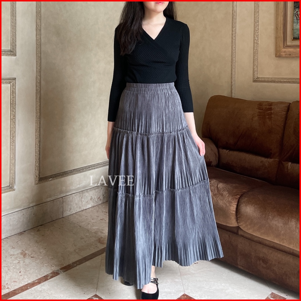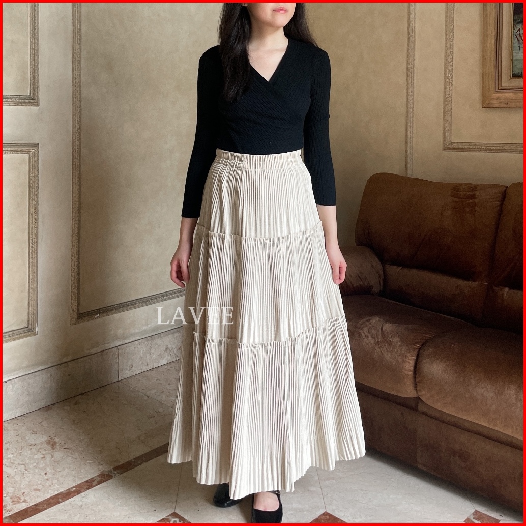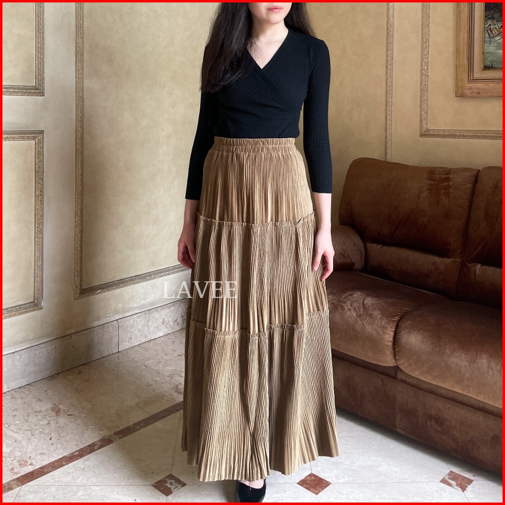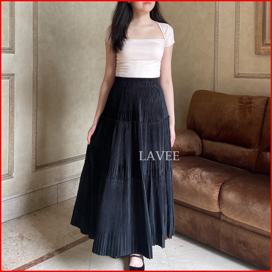 Lavee - Lucia Skirt Rok Plisket Suede Panjang - Rok Wanita Ruffle 3 Susun - Long Pleated Maxi Skirt