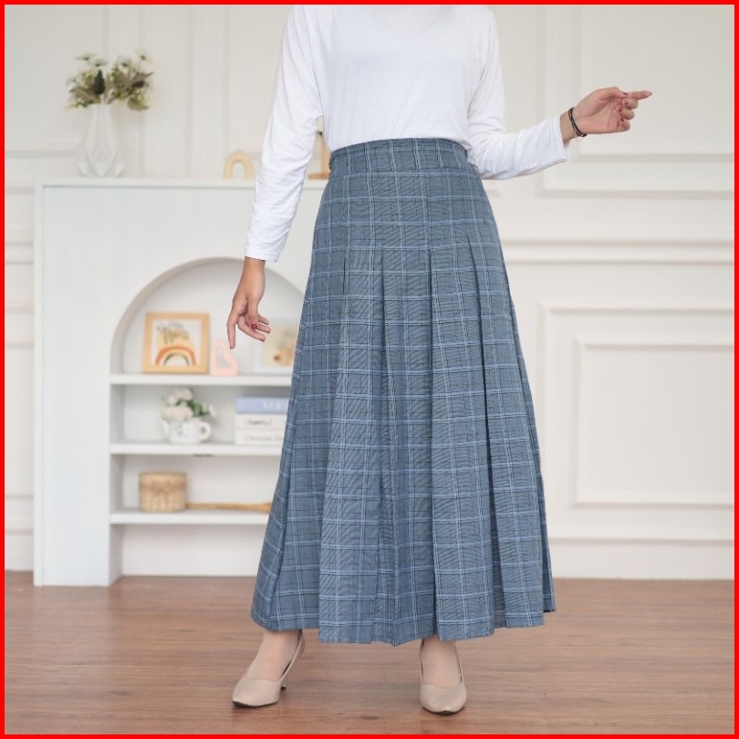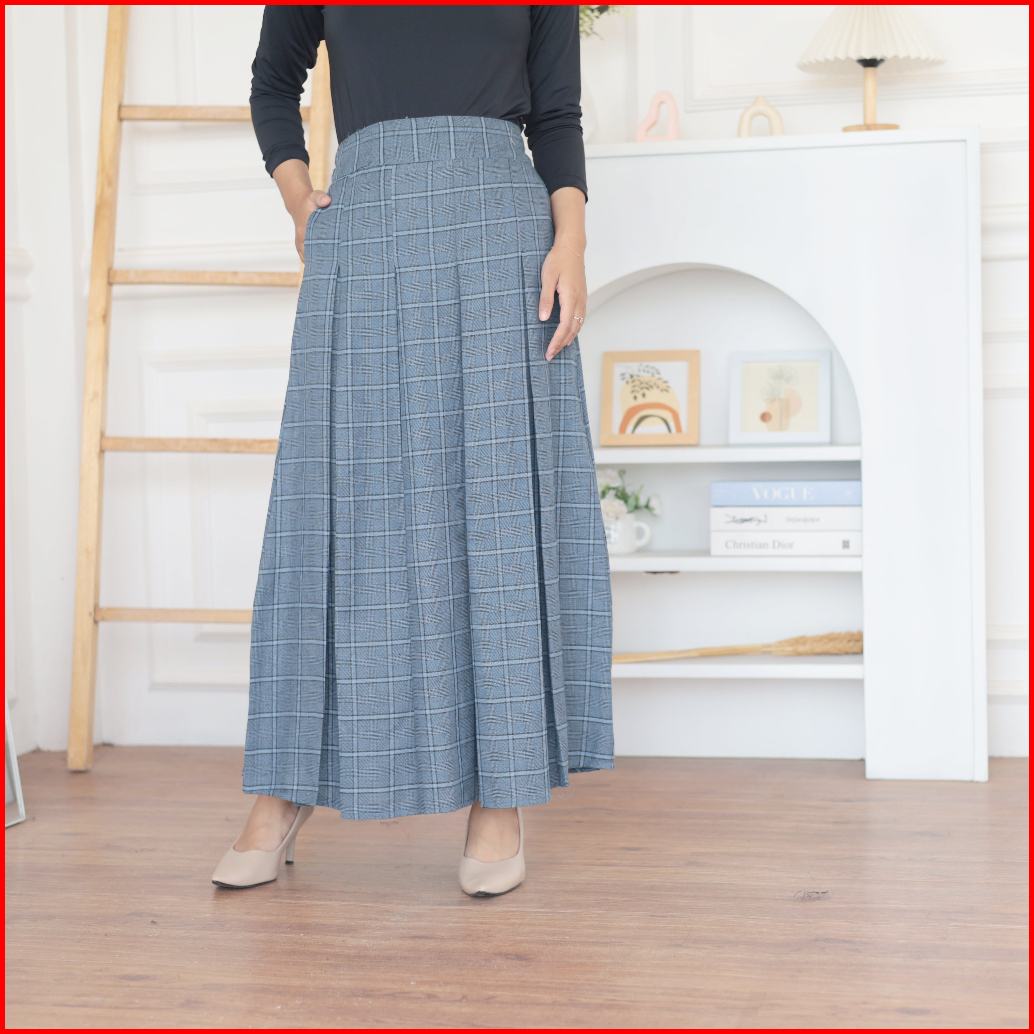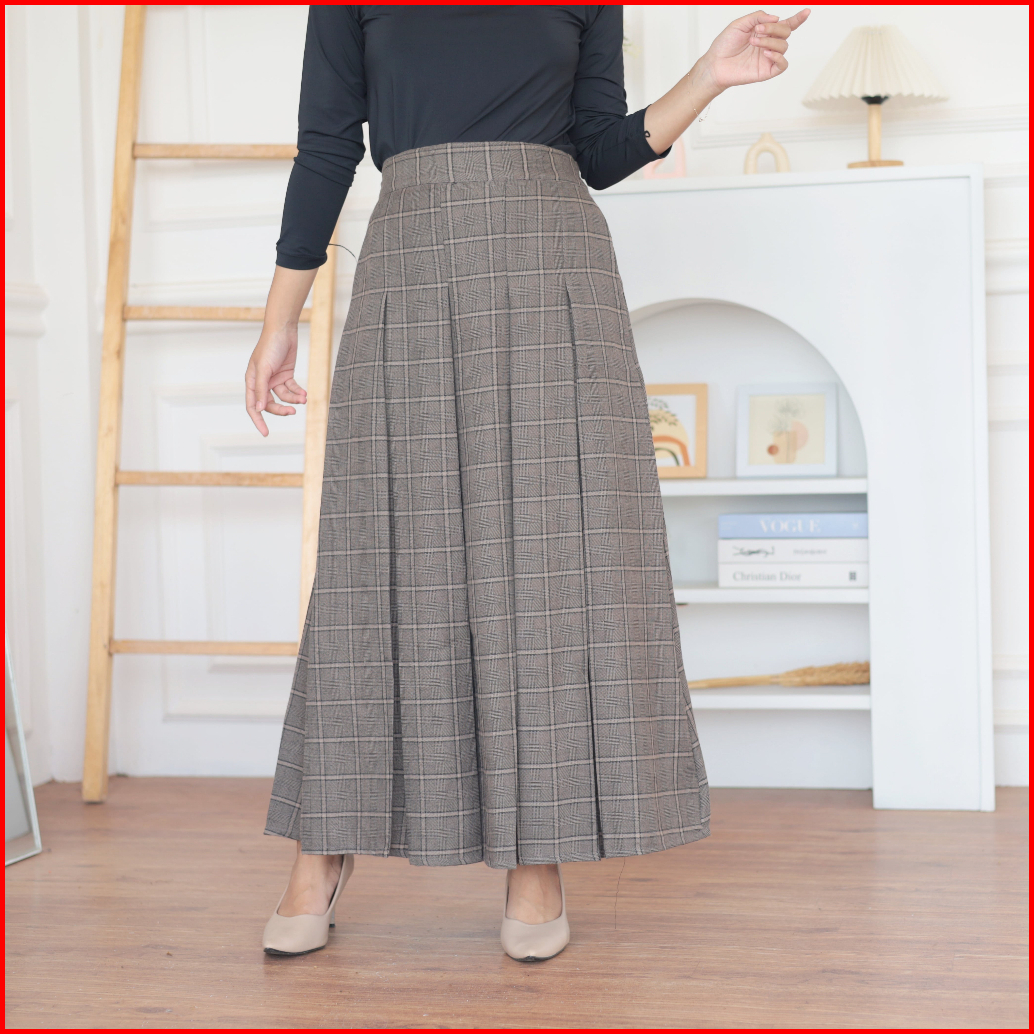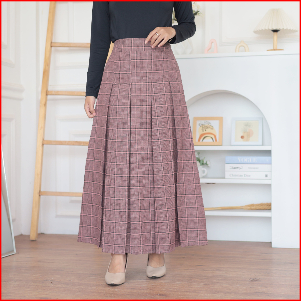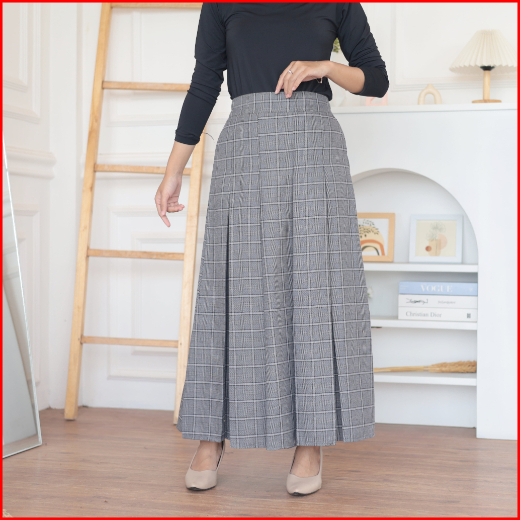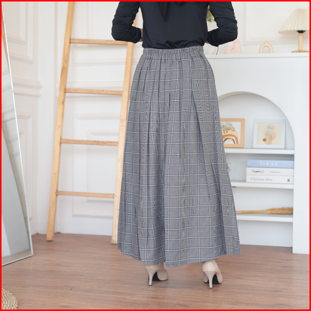 Rok Panjang Rempel Depan Belakang Motif Kotak Rok Kotak Kotak