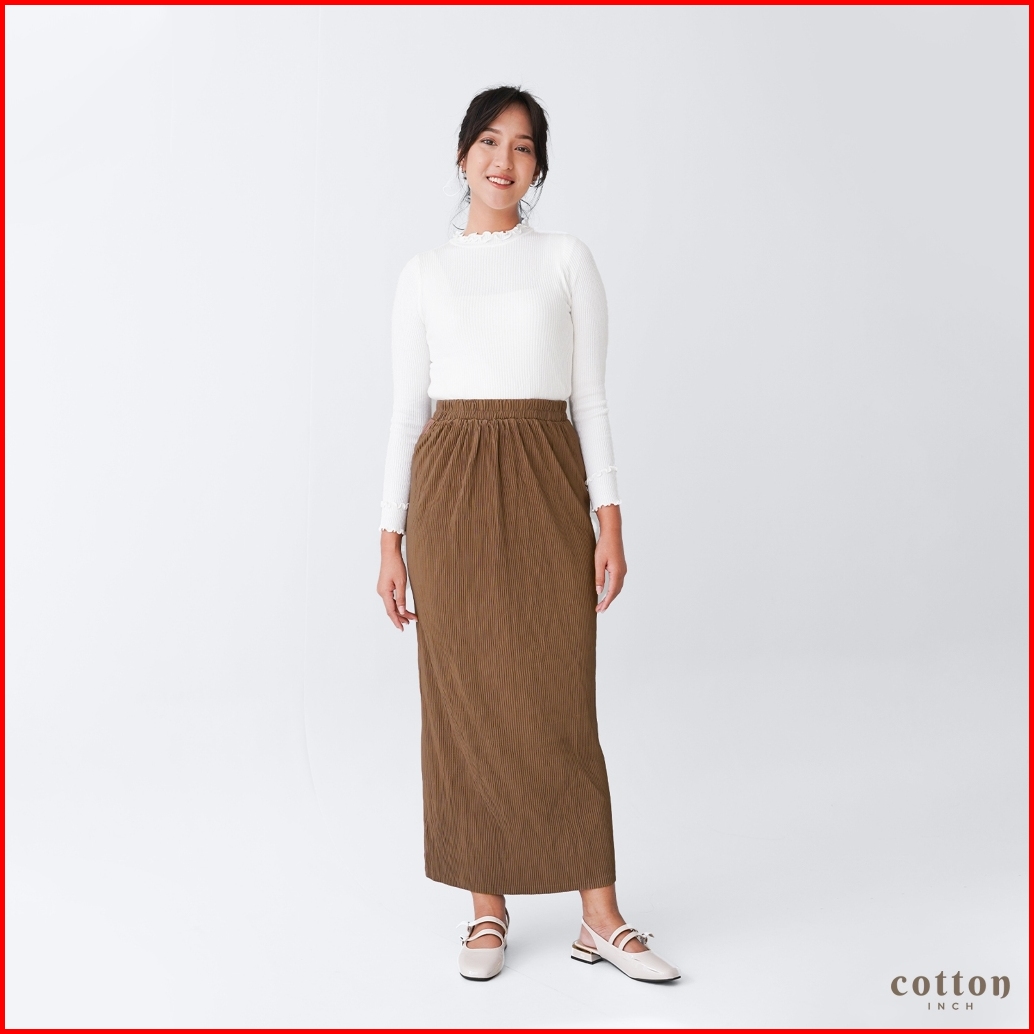 Cotton Inch - Khloe Rok Span Plisket Lidi Wanita Premium