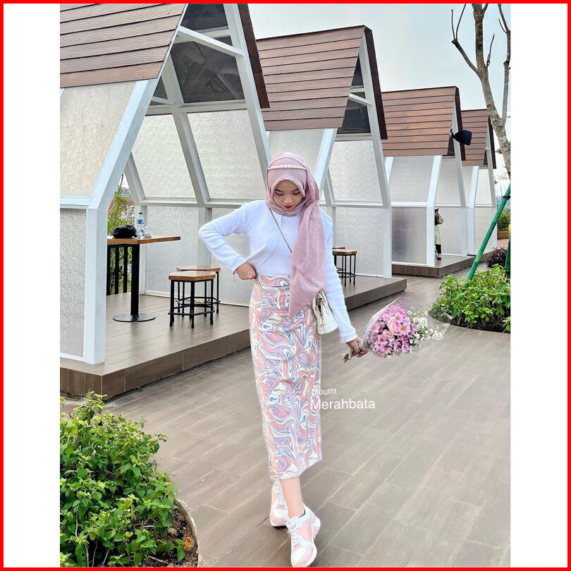 Hl Rok Marble Span- Marble Skirt Babyterry Korean Style Realpict