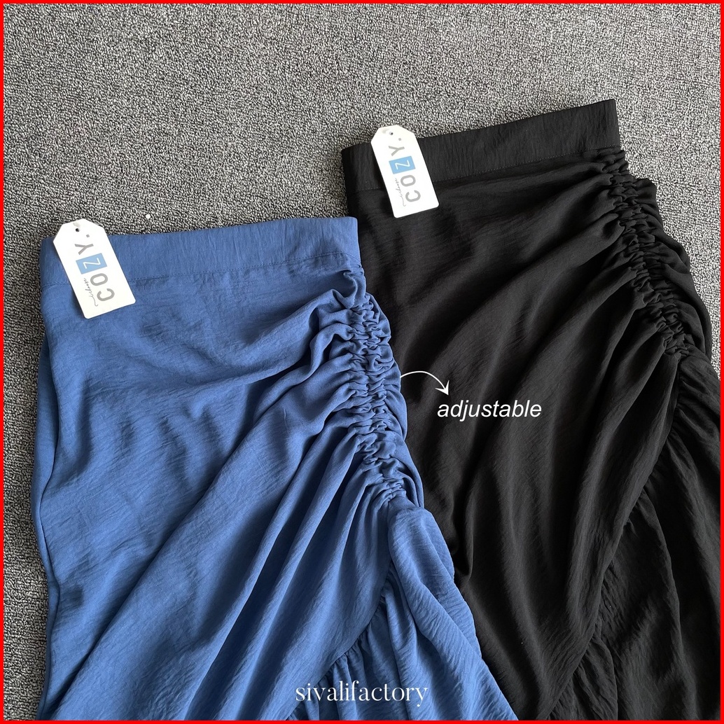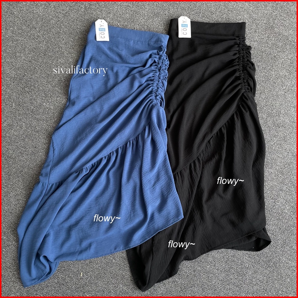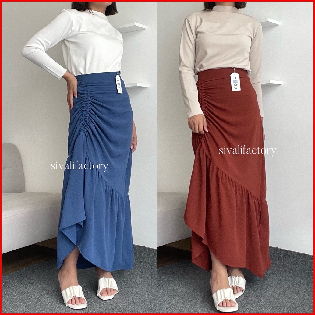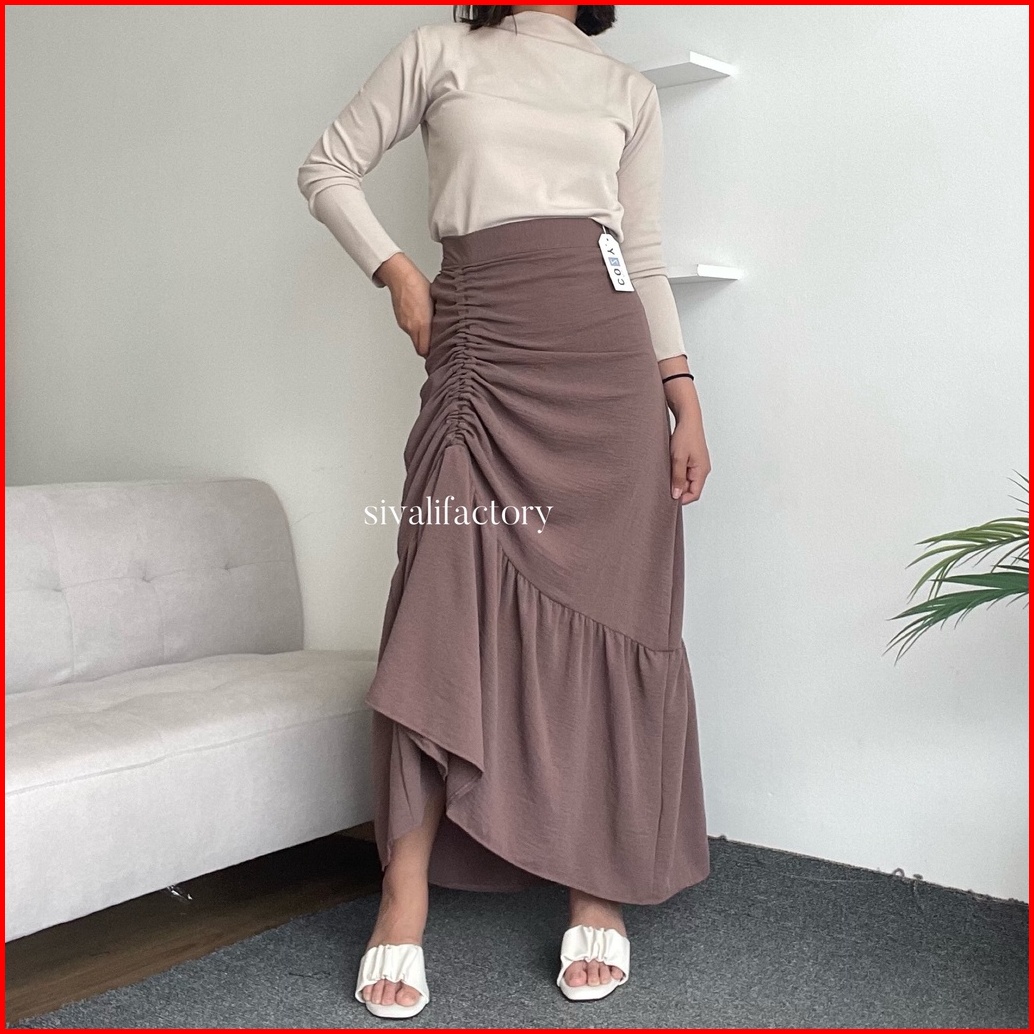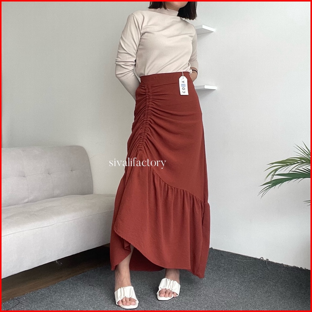 Sivali Abigail Skirt - Rok Serut Casual Flowy - Rok Wanita Korean Look - Midi Maxi Ruched Skirt 531