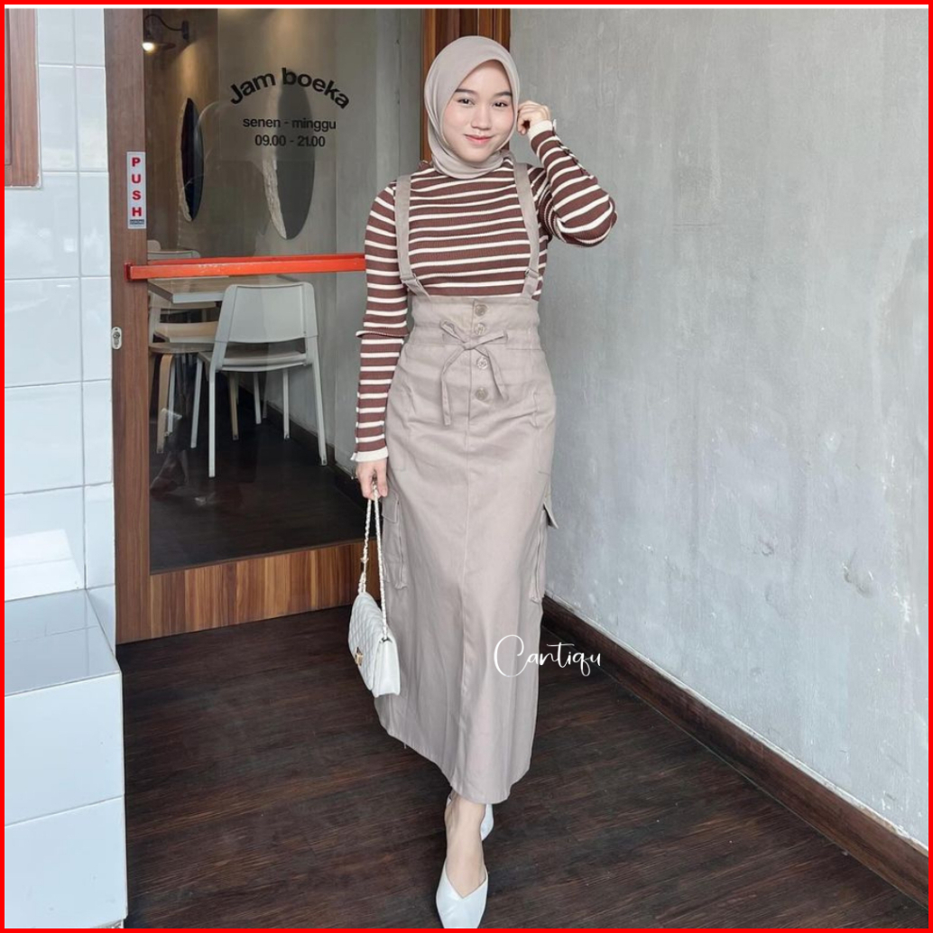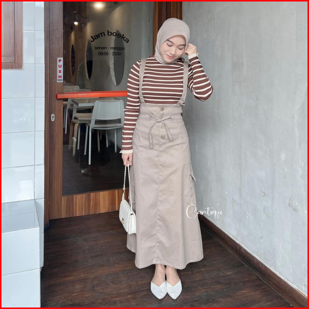 Cantiqu - Overall Katun Twill Najma Jumpsuit Wanita Rok Cargo