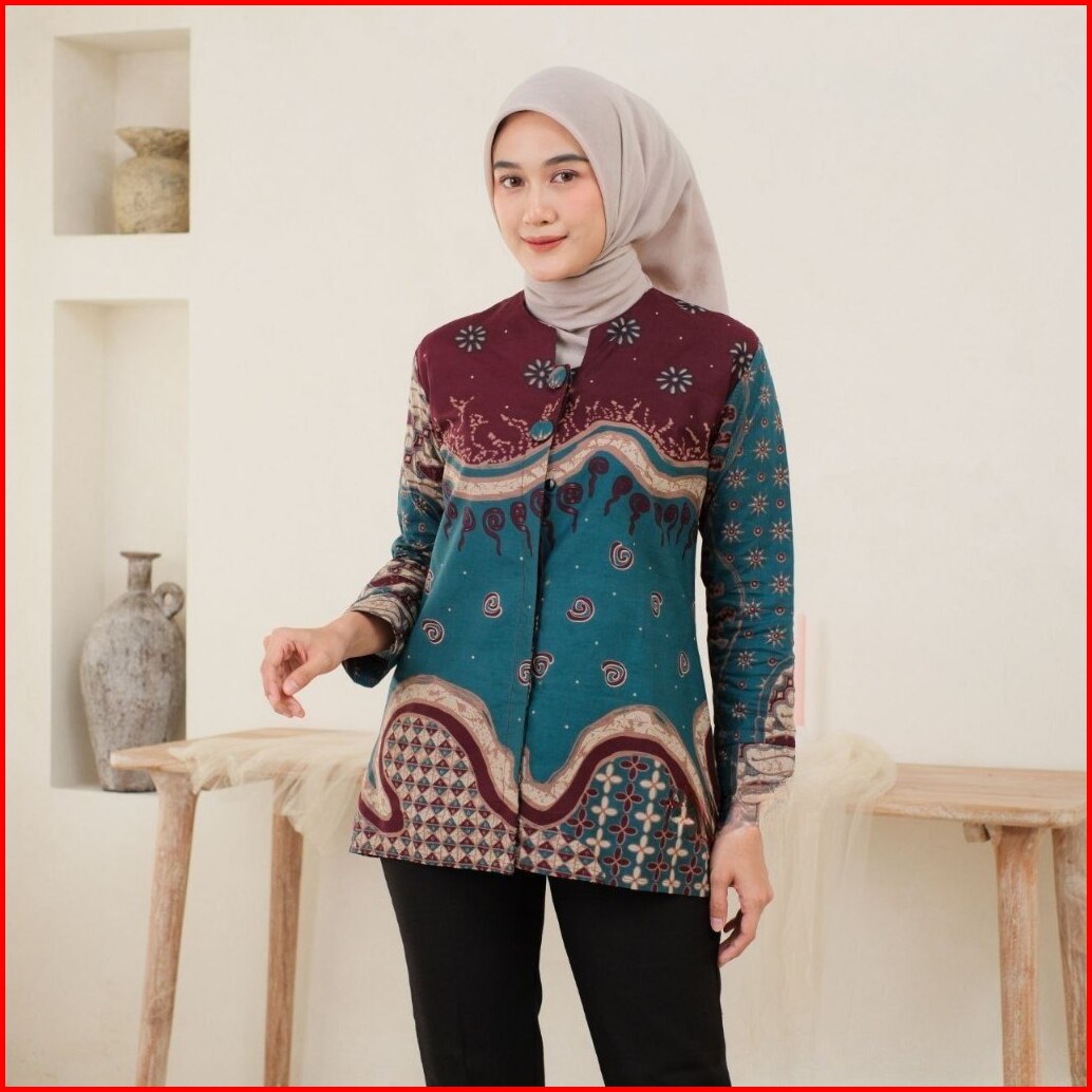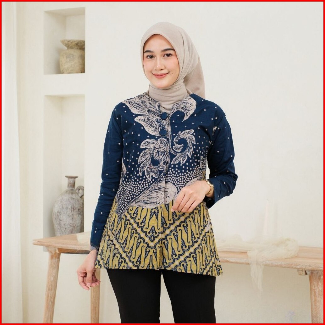 Atasan Batik Wanita Blouse Batik Baju Kerja Wanita Modern Ukuran M L Xl Xxl
