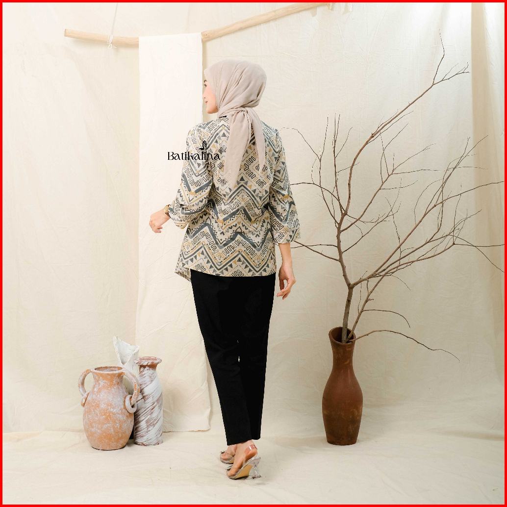 Baju Batik Wanita Modern Atasan Blouse Batik Kerja Kantor Wanita