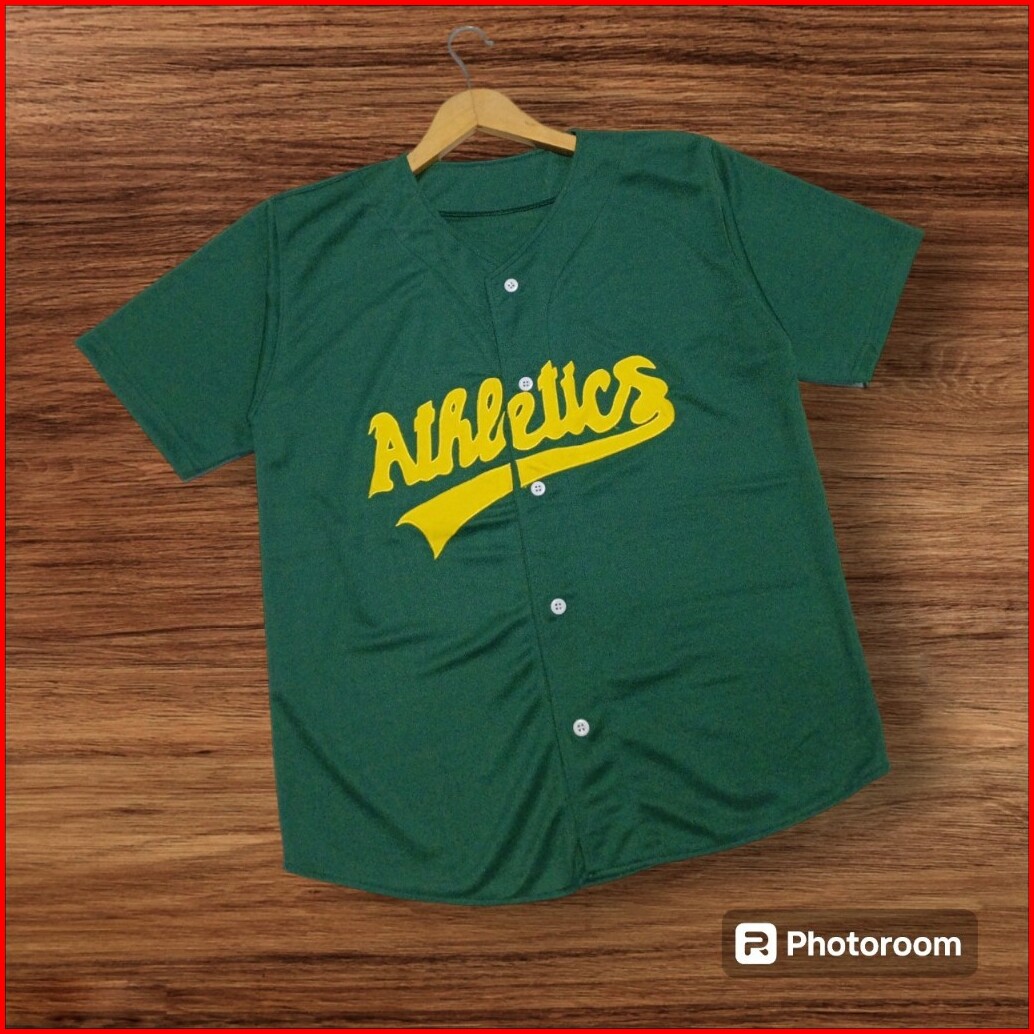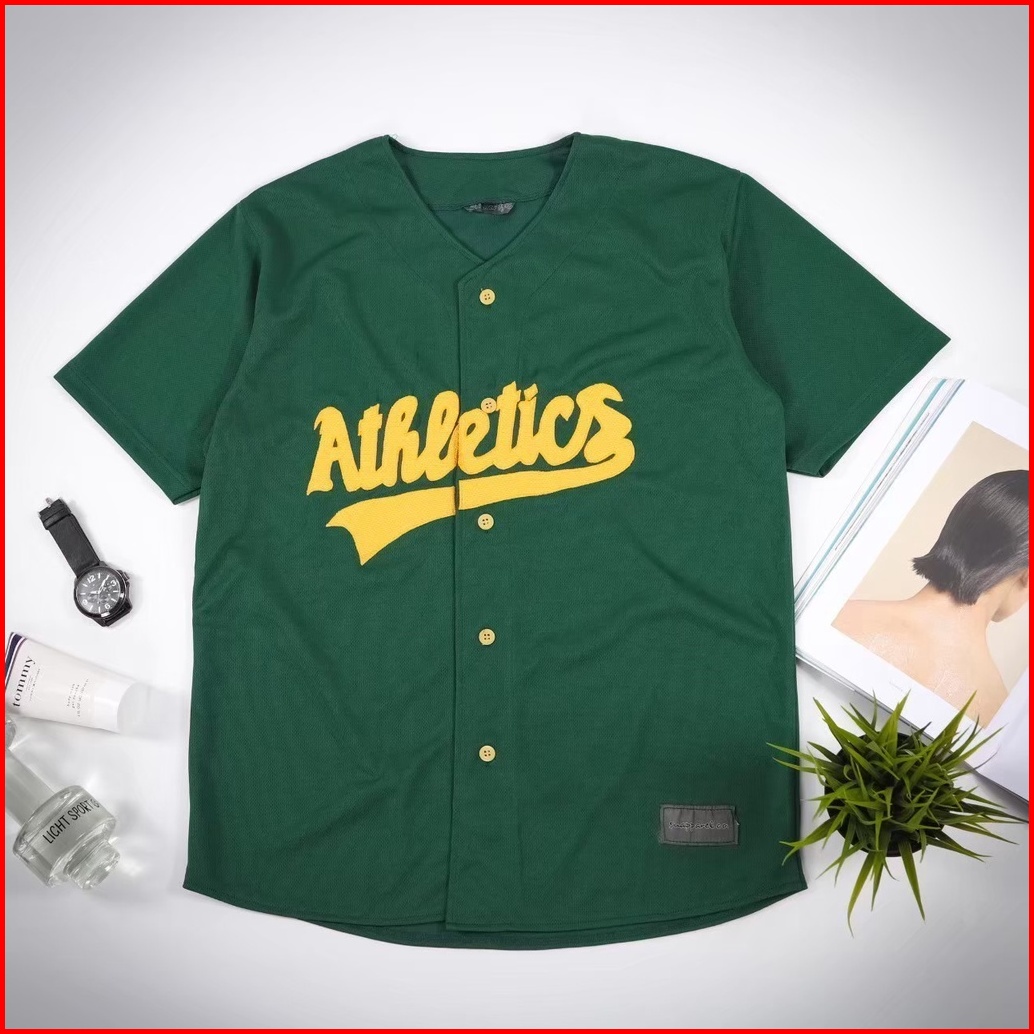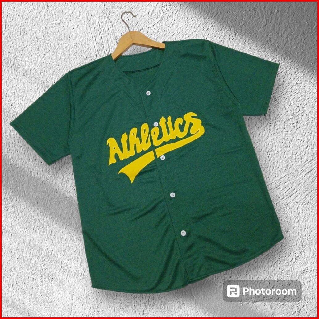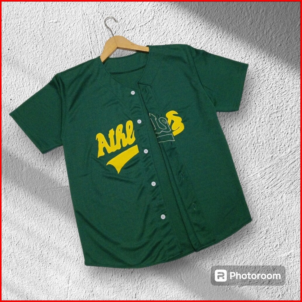 Kaos Jersey Baseball Athletics Ijo Botol Baju Baseball Unisex Jersey Premium