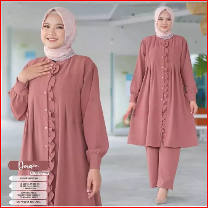 Dera Set Tunik Premium Setelan Tunik Crinkle Airflow