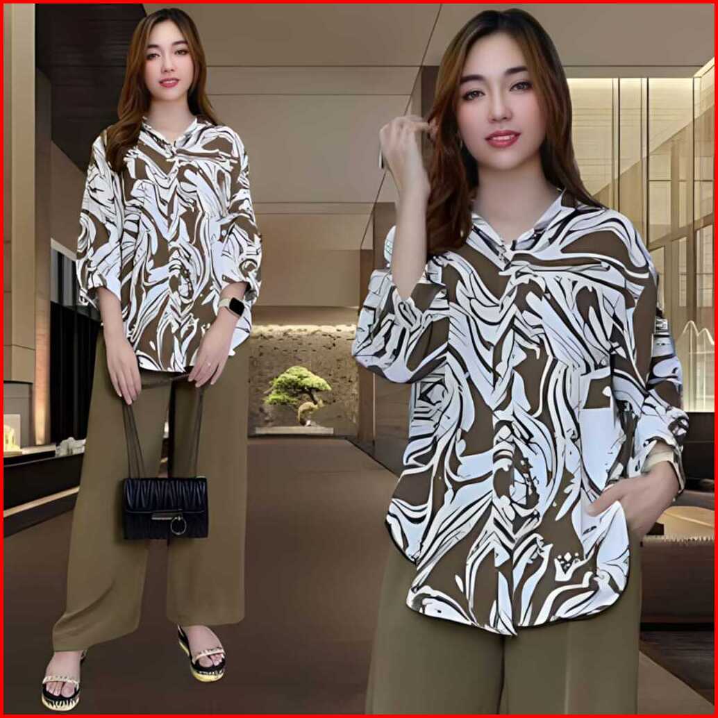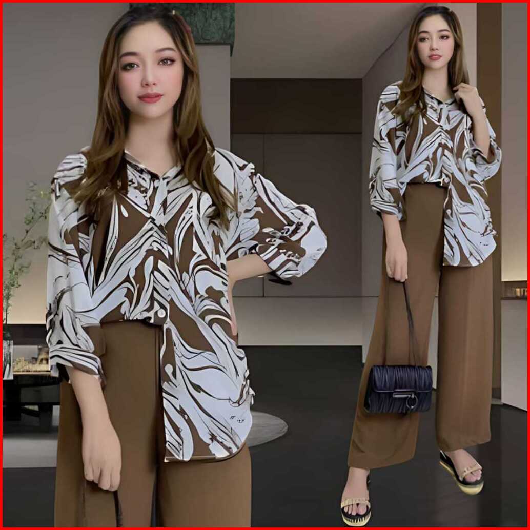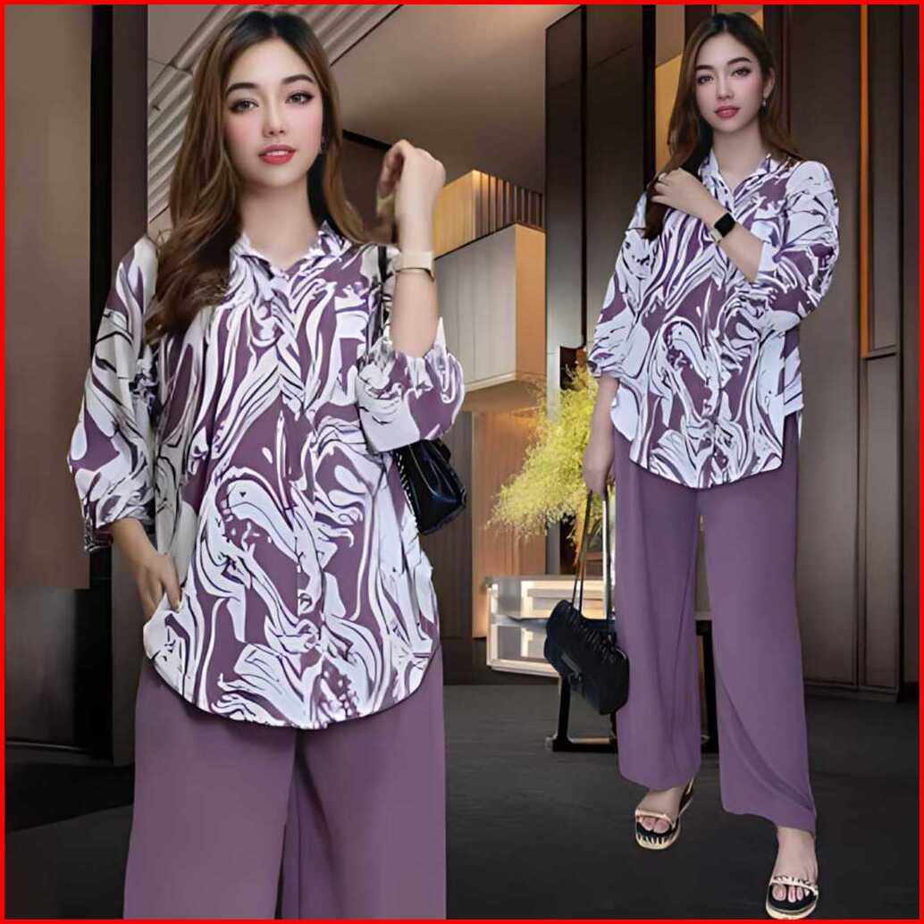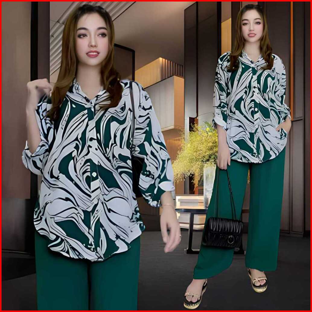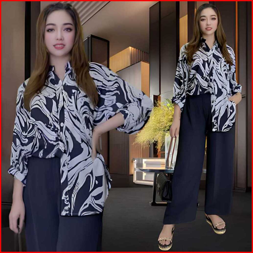 Bakhita Setelan Crincle Wanita Kekinian Ld 120 Atasan Kemeja Oval Celana Lurus Bahan Crincle Airflow