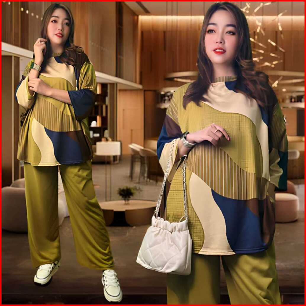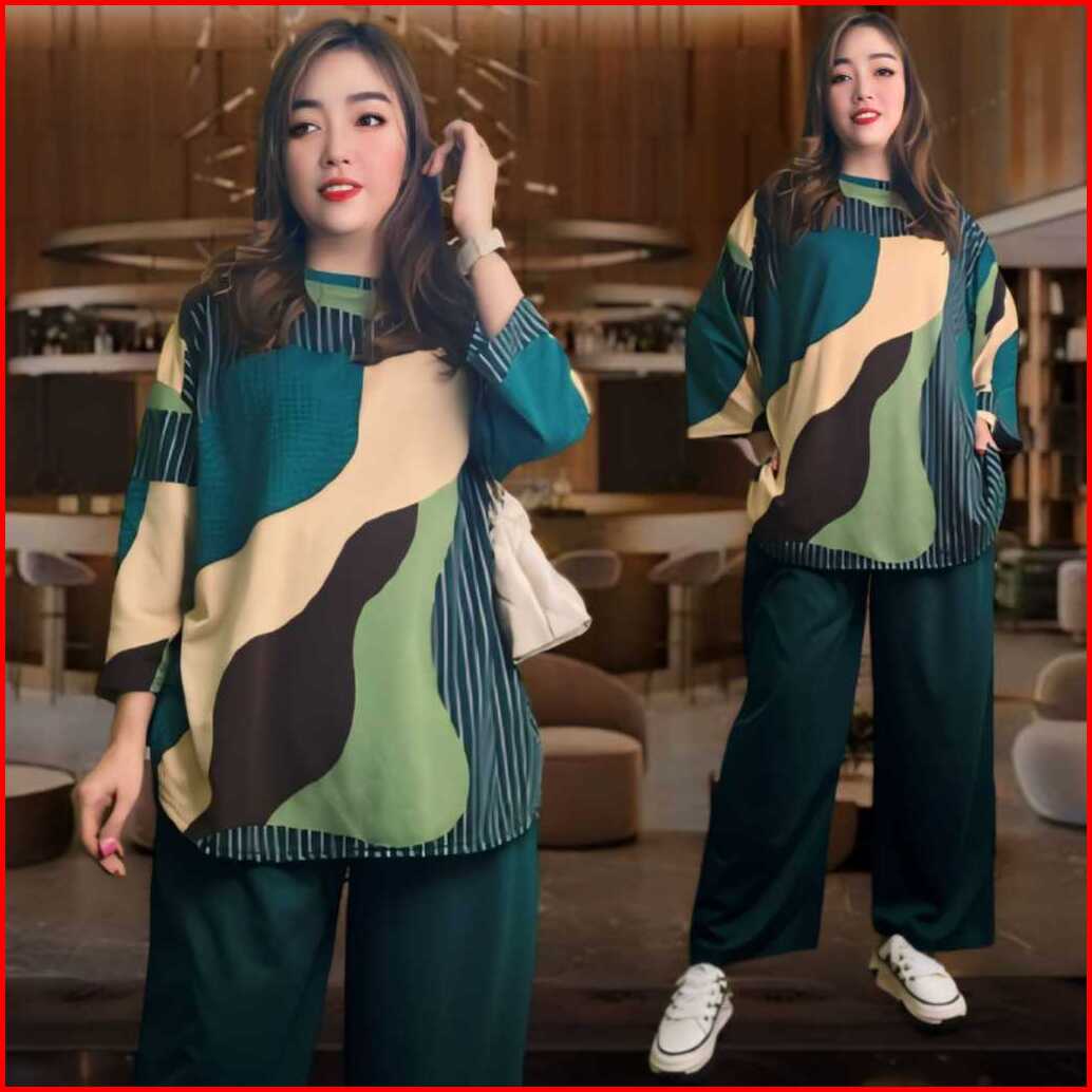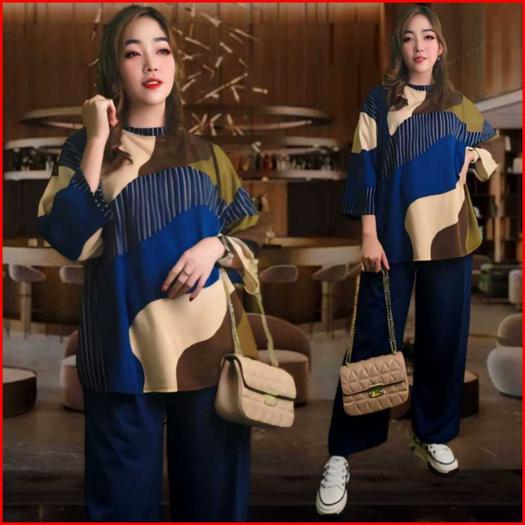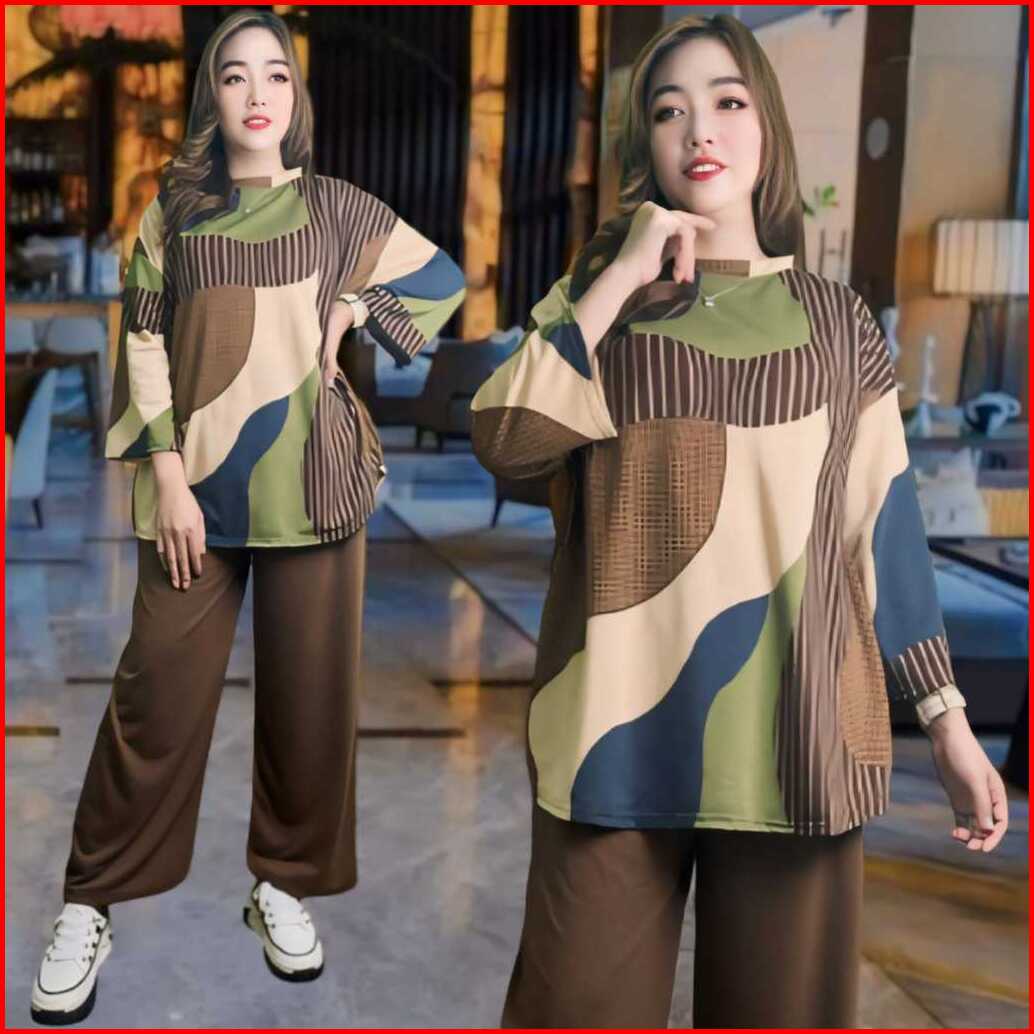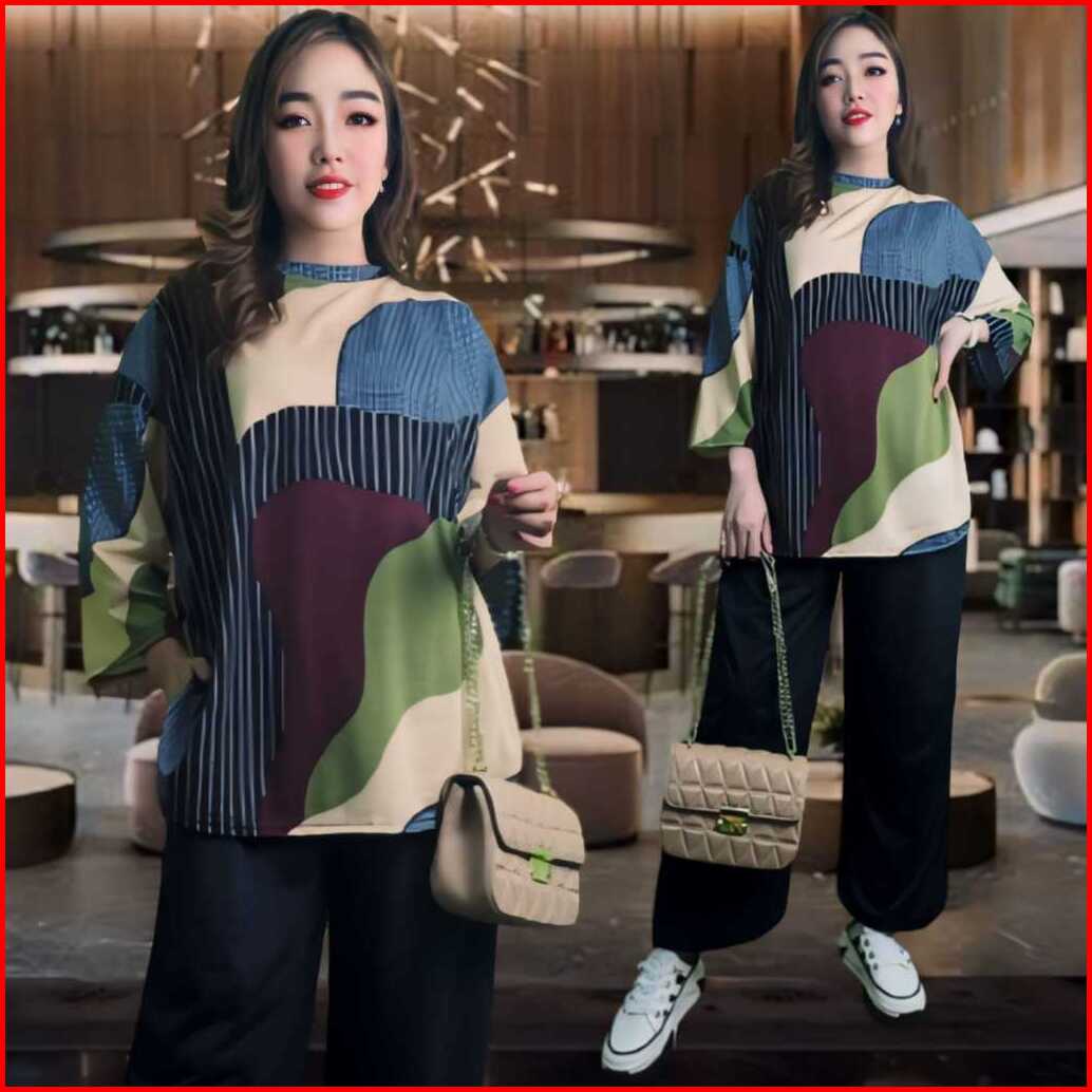 Dalia Setelan Wanita Jumbo Ld 140 Atasan Oval Wanita Dan Celana Lurus Wanita Baju Oversize Dewasa Motif Celana Panjang K