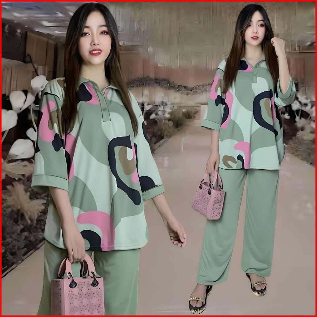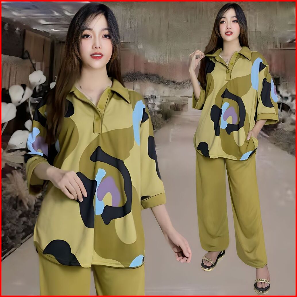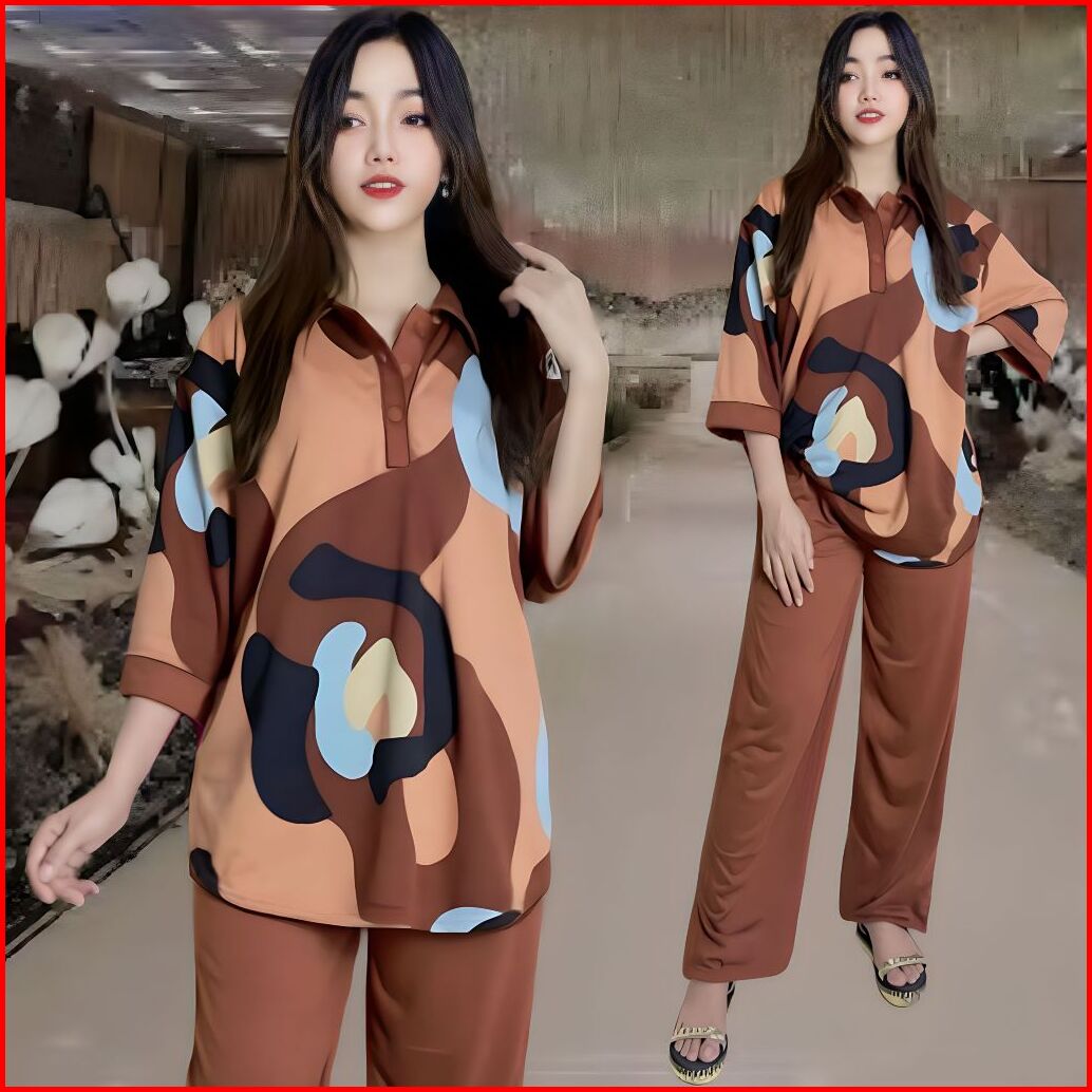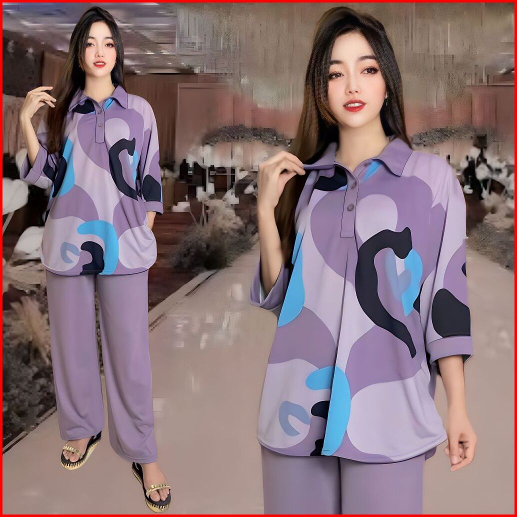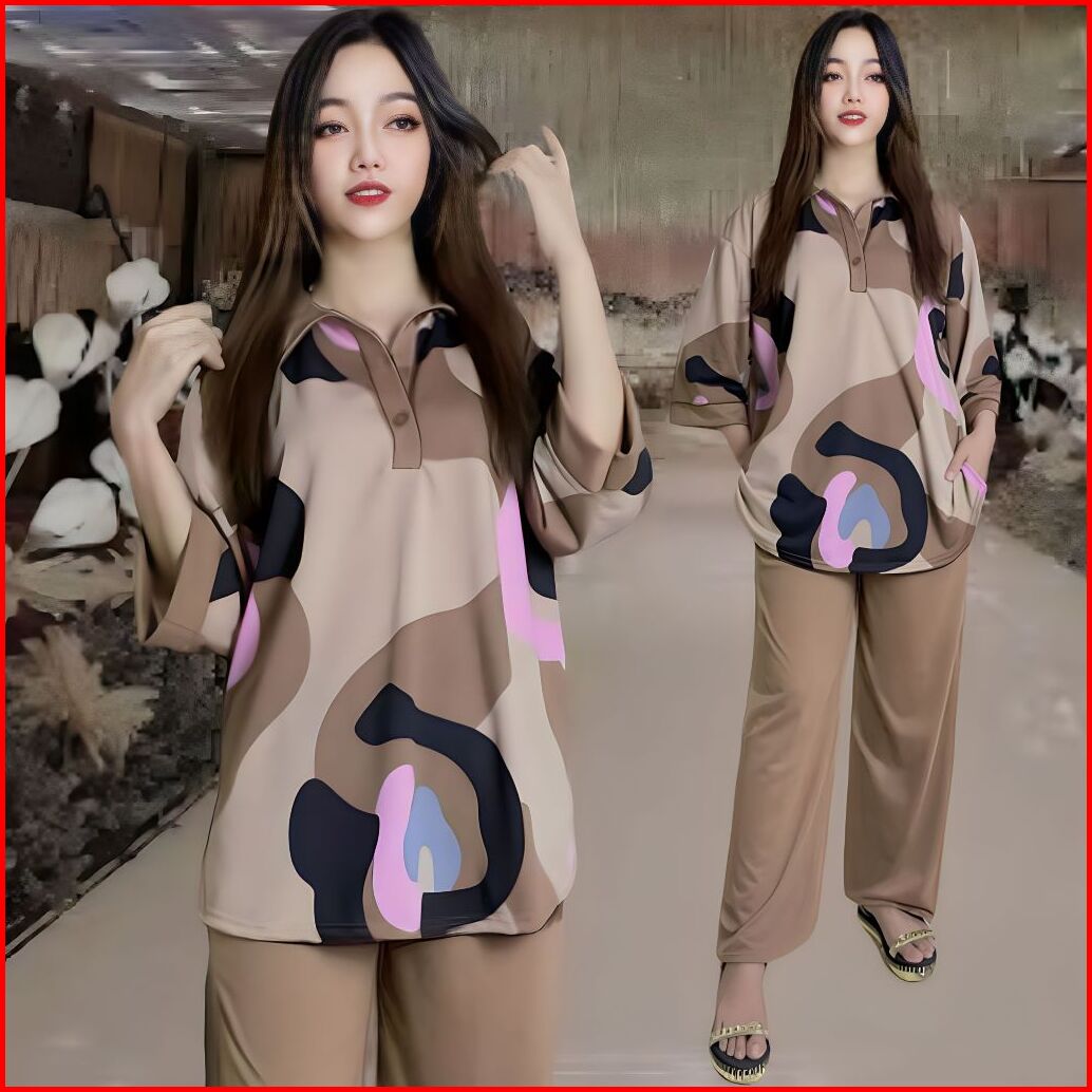 Mafaza Setelan Wanita Ld 120 Oval Setelan Kekinian Kancing Busui Leher Kerah Vistaterry Atasan Oversize Wanita