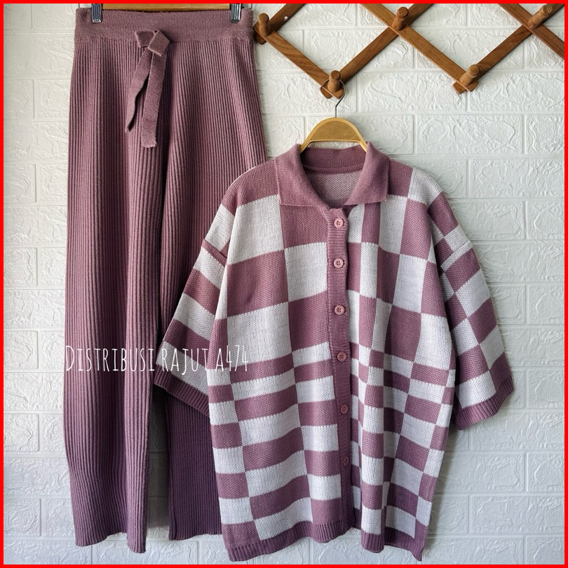 Oneset Knitweat Outfit Fuji Setelan Celana Kulot Rajut Wanita